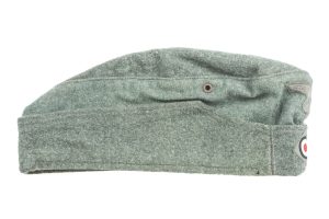 €450.00Textbook Heer EM/NCO sidecap in untouched condition. Nice example maker marked and dated in size 57. The cap is a untouched example with factory sewn insignia. Very nice and textbook example!