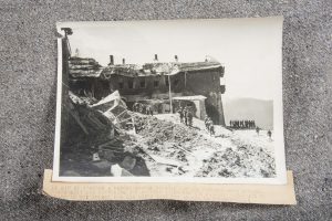 NewAmerican and French soldiers visited Hitler’s mountain retreat in Berchtesgaden and roamed all over the ruins caused by the aerial bombardment. So complete is the devastation that ‘souvenirs’ were hard to find.