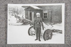New€400.00Rare Press Photo; Gerardus Mooyman in the size 4x5cm depicting Mooyman leaning on his 7,5 cm PAK gun. The photo is nice since this depicts the gun before he wrote the name Ria in the shield which is the best known photograph. The size is 6×8 cm and this is otherwise a unknown photograph.