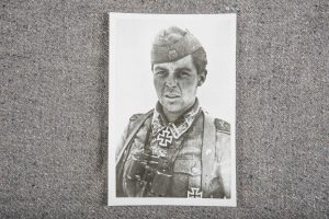 New€500.00Rare Press Photo; Gerardus Mooyman with his knights cross. Hard to find photograph without headdress. Large photo approximately 18×24 cm.
