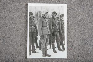 New€350.00Press Photo; French Heer volunteers. The Legion Des Volontaires Francais contre le Bolchevisme was drafted as Infanterie Regiment 638 and suffered heavy losses for the battle of Moscow. Rare original large 18×24 cm sized photograph taken at Versailles.