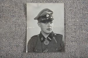 New€500.00Rare Portrait Photo; Gerardus Mooyman with visor and knights cross. The photo is size 8×11 cm. Hard to find original portrait!