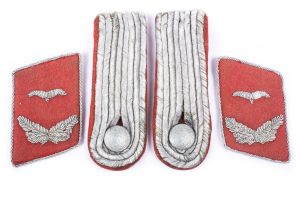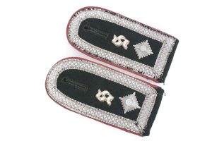 Spectacular uniform grouping named to Leutnant Seebold serving with Grenadier Regiment 44, 11 Infanterie Division, killed in action 26.3.1944 in Sirgalla, west of Narwa. He is buried in Jöhvi, Block 1 Row 21 Grave 1055. The grouping consists of the modified enlisted men M36 field blouse dated 1937, manufactured in Danzig. The garment is modified by a skilled tailor by means of adding a bottle green, pointed officer’s collar and insignia for a Leutnant. The breast is adorned with a Infanterie Sturmabzeichen by SchuCo and a unmarked Verwundetenabzeichen in Schwarz. There are a number of minor repairs to the tunic I have tried to photograph them as best as possible. The visor is a semi-crusher; a mix between a regular officer’s visor and a crusher which has a great look on a mannequin. The crusher has beautiful hand embroidered insignia which like all the other insignia in the grouping are period applied.