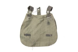 Typical short M38 canister dated 1937. It was first issued in the typical pre war green colour and was repainted with a brush applied dark green colour when the war progressed. It retains its pre war straps with leather reinforcements. The mask is a nice A1B variant with 1937 dated filter. The mask and the canister retain the same number. Nice used set!