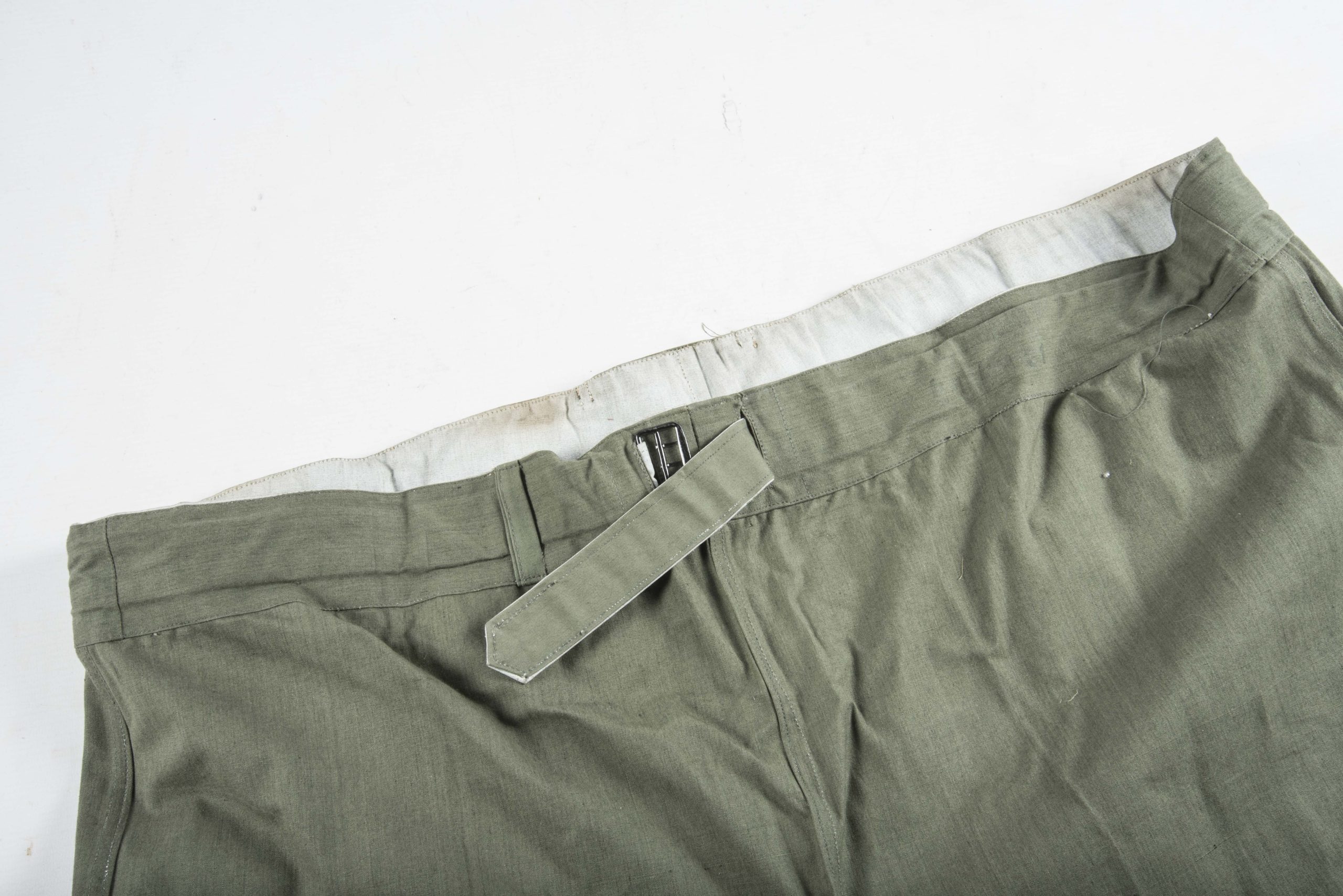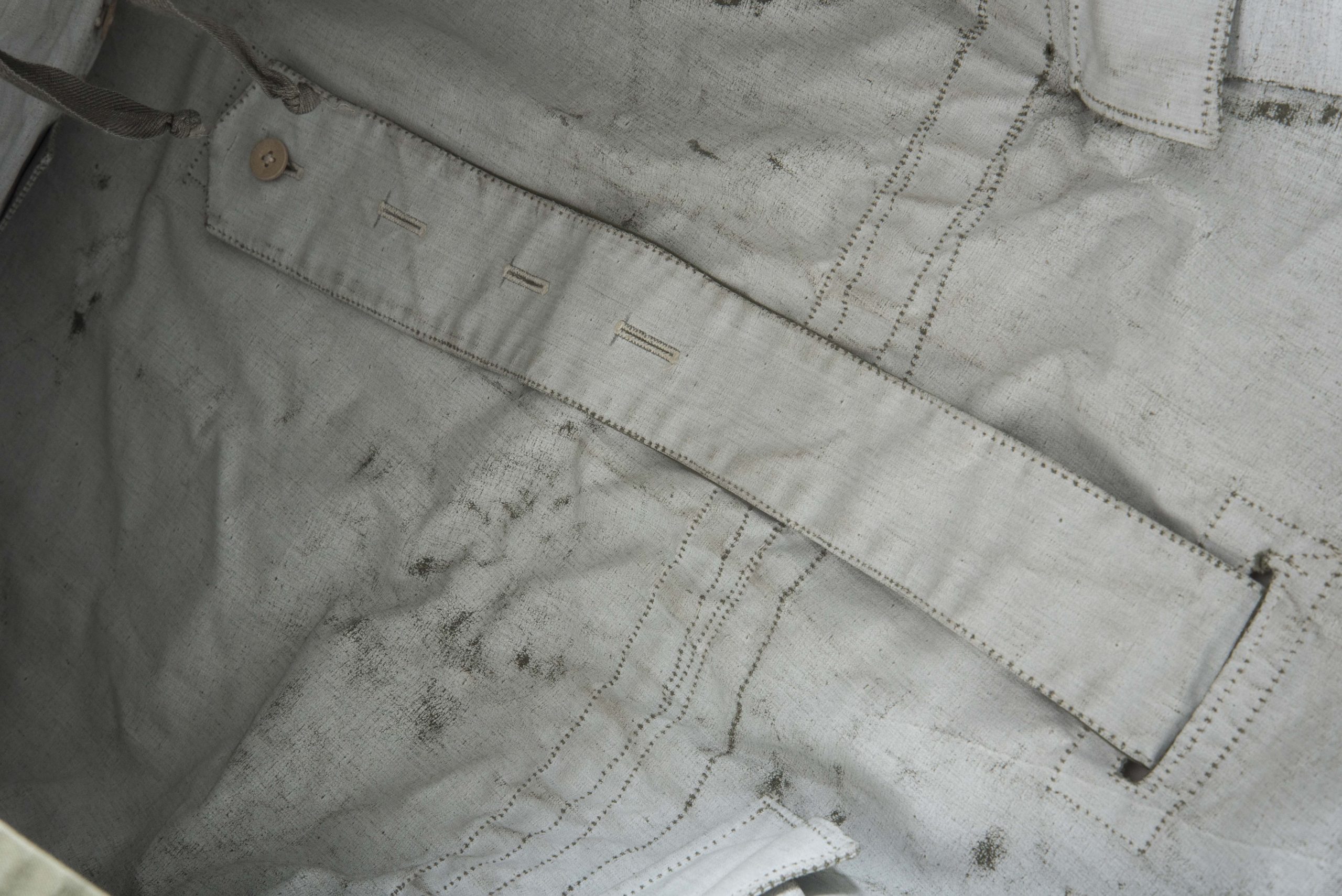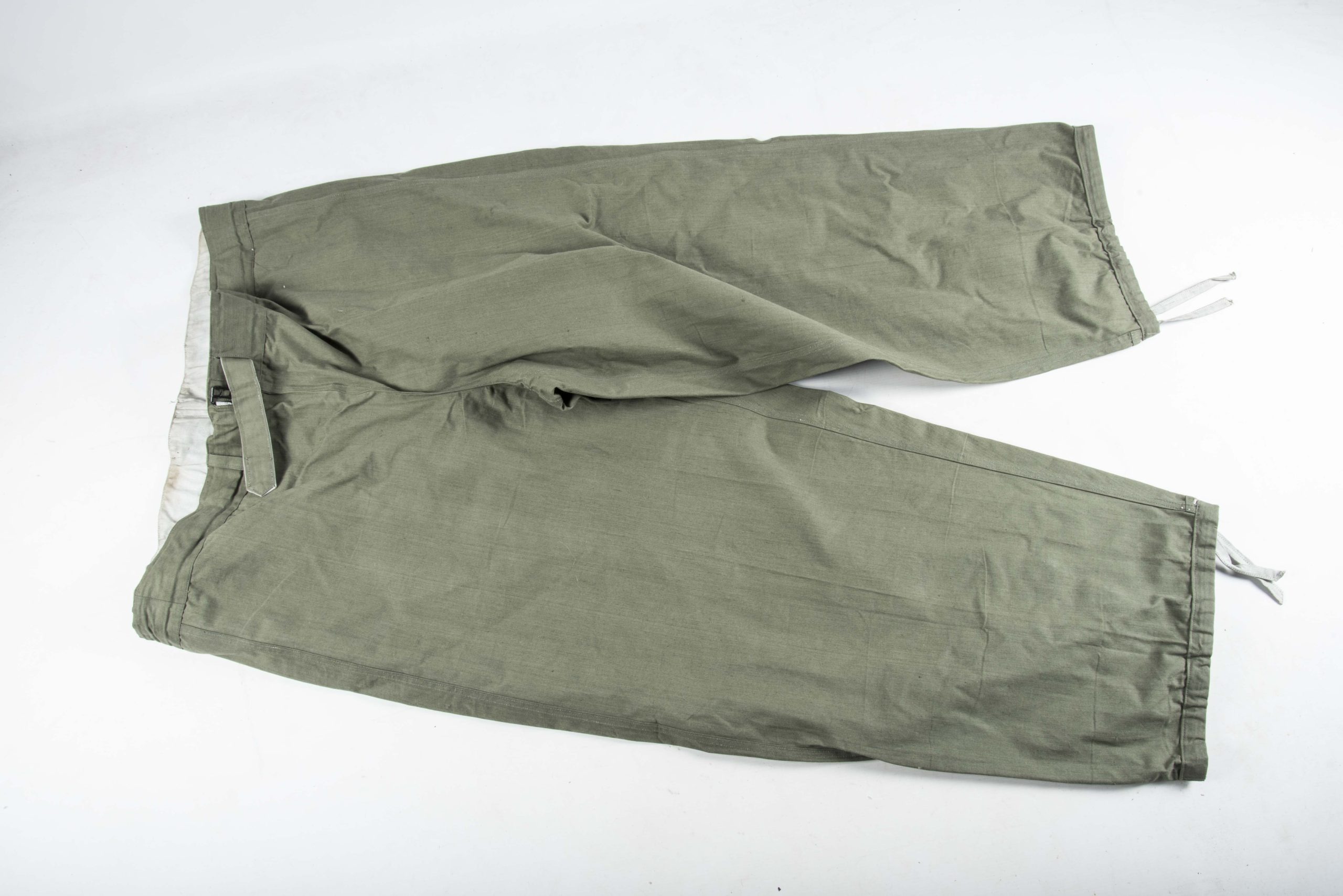 A very nice and minty late war Gebirgsjäger anorak set consisting of a Windbluse and Windhose. These reversible camouflage garments are waterproofed and meant for the Ski- und Gebirgsjäger. These garments are hard to find in good condition, especially the trousers. The jacket has has a few neatly and period done reinforcements on some seams but is otherwise in unissued condition. The garment is in a very nice and large size fitting all mannequins. A nice complete uniform in a nice mannequin size that would instantly dress a combat display!