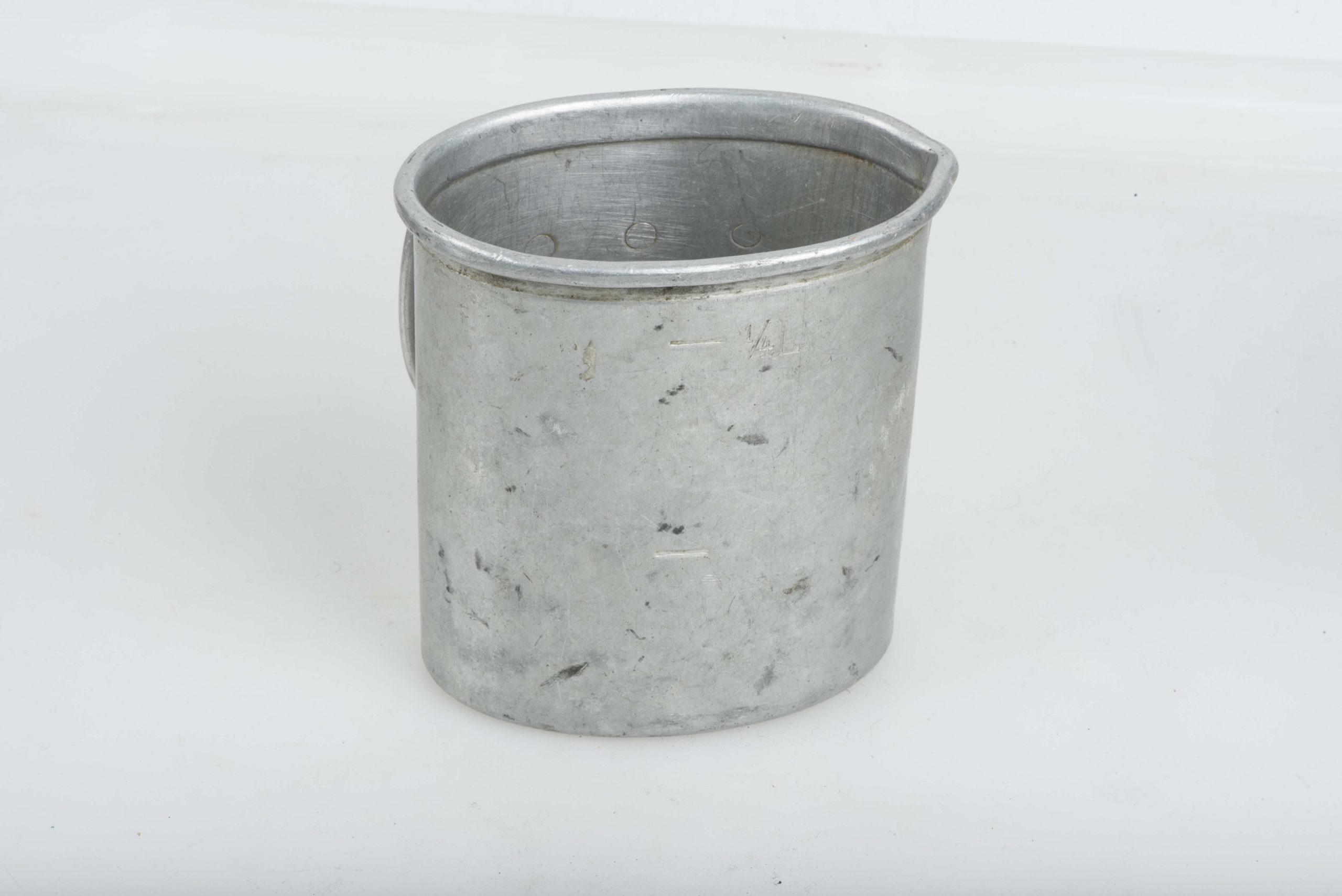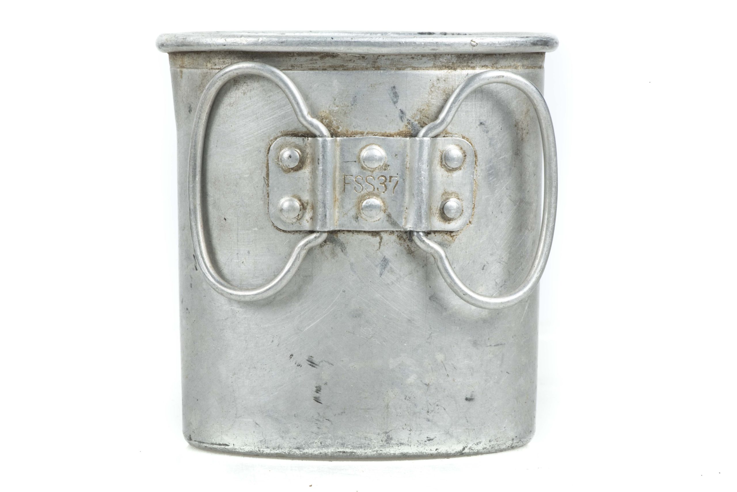 Aluminium canteen cup marked fss 37 indicating production by Frenzel & Sachs, Schneeberg.