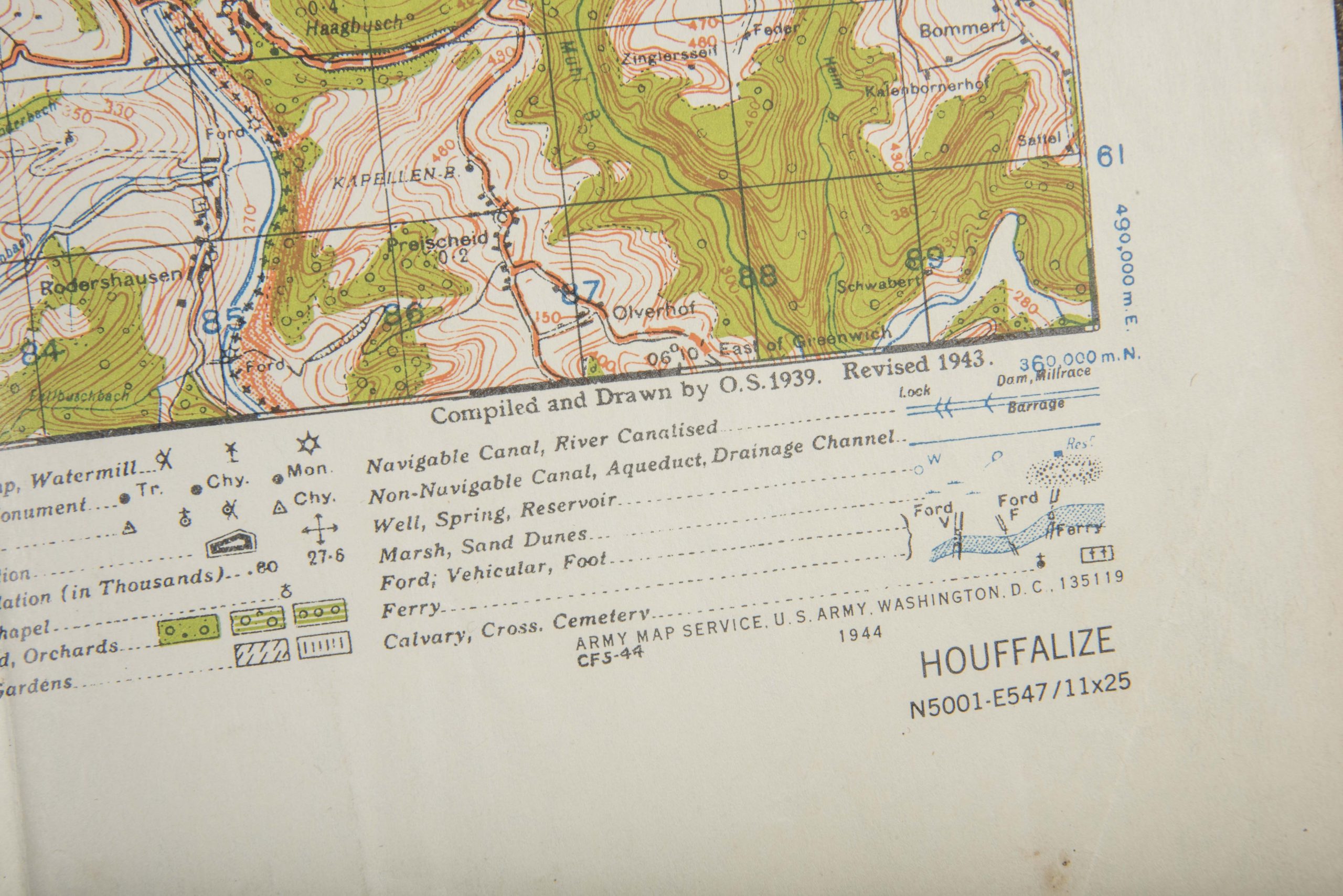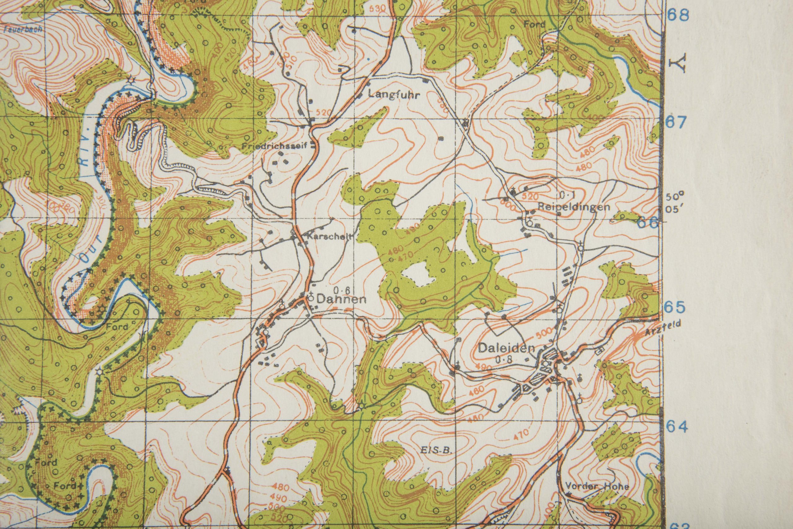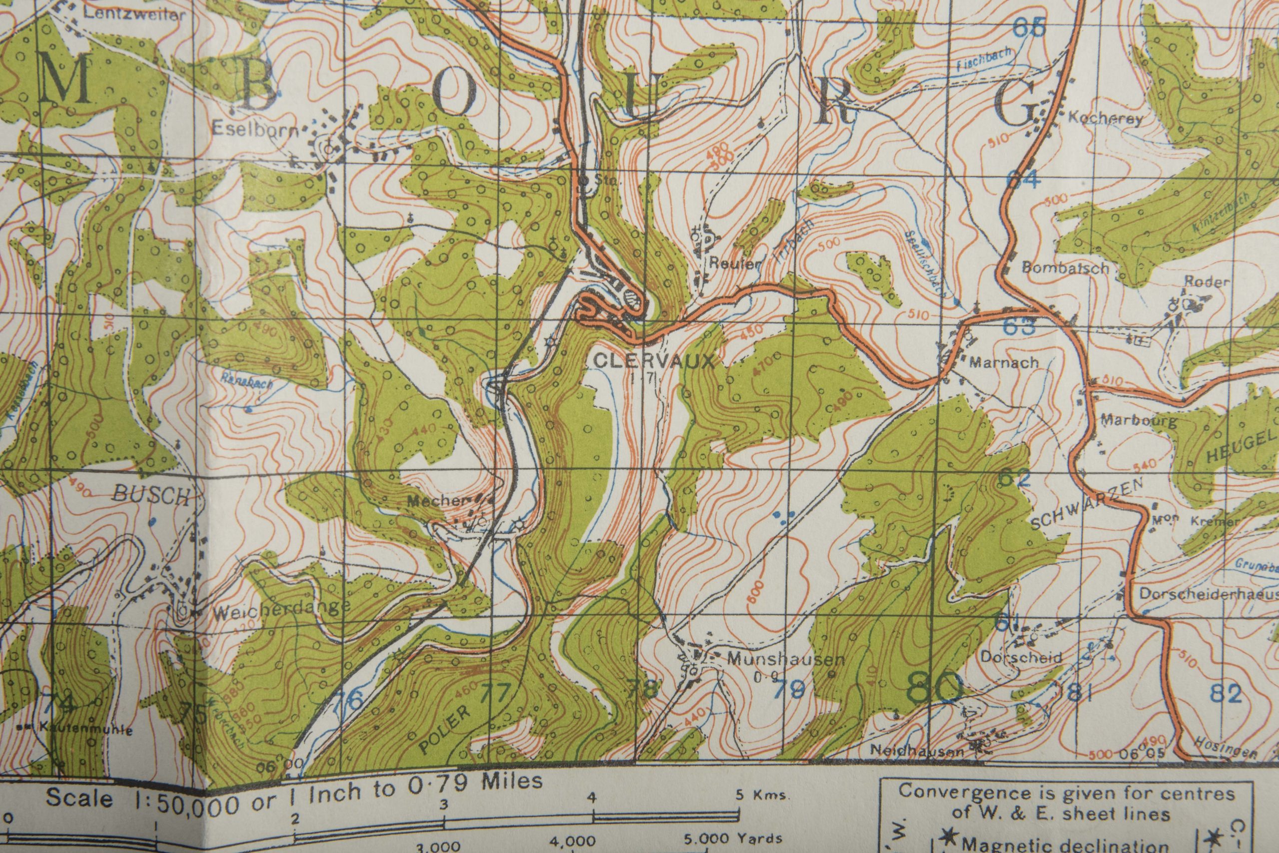 Ardennes map 1:50.000 1943 – Houffalize, Clervaux, Daleiden in good condition. Hard to find Ardennes map!