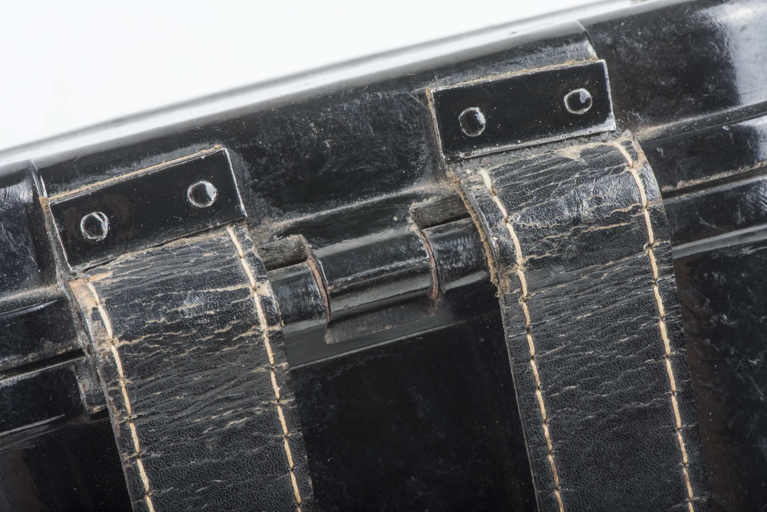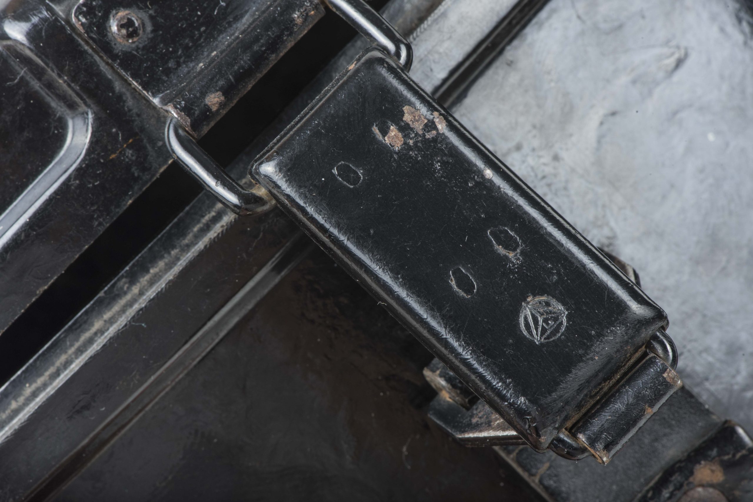Black bakelite 6×30 Dienstglas case in excellent condition. Textbook example with all functional straps, cushions and pull tab. Typical example in great condition!