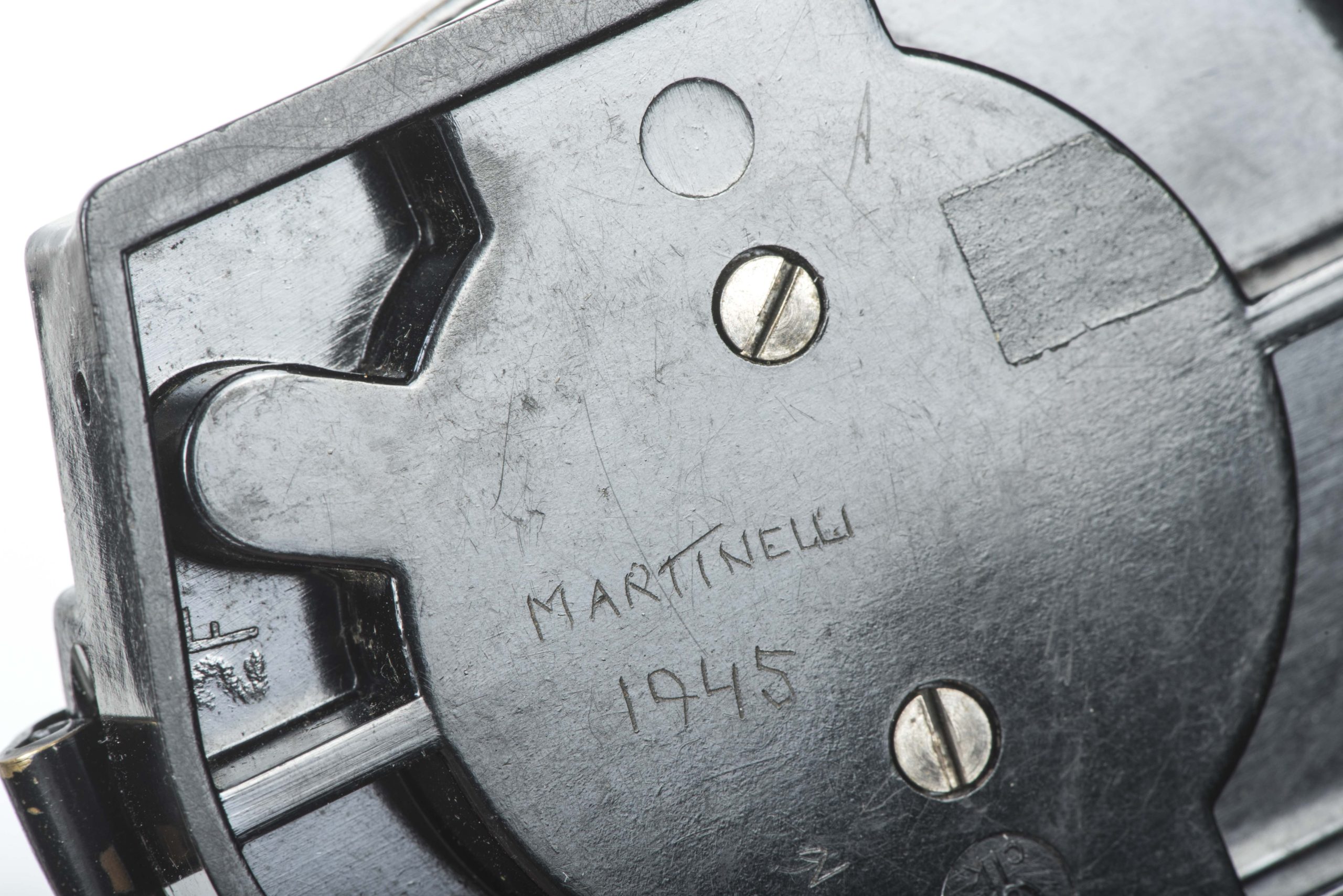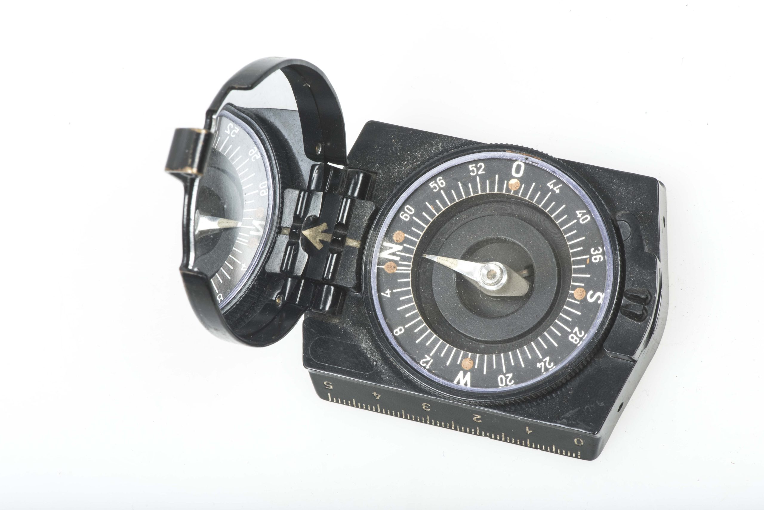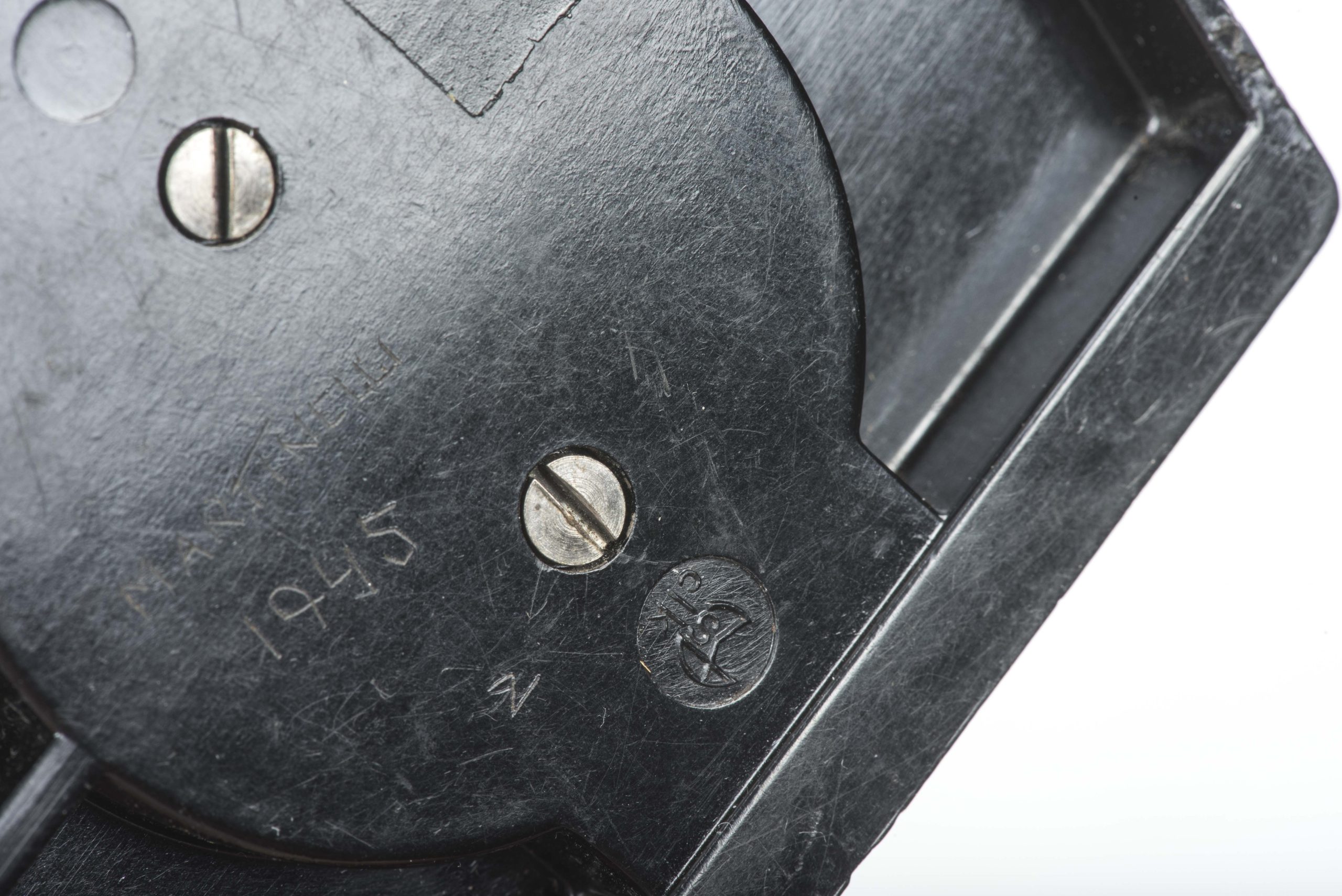 Bakelite marching compass marked clk indicating production by by F.W. Breithaupt & son Kassel. Nicely named Martinelli 1945 in the back, most probably a US veteran bringback.
