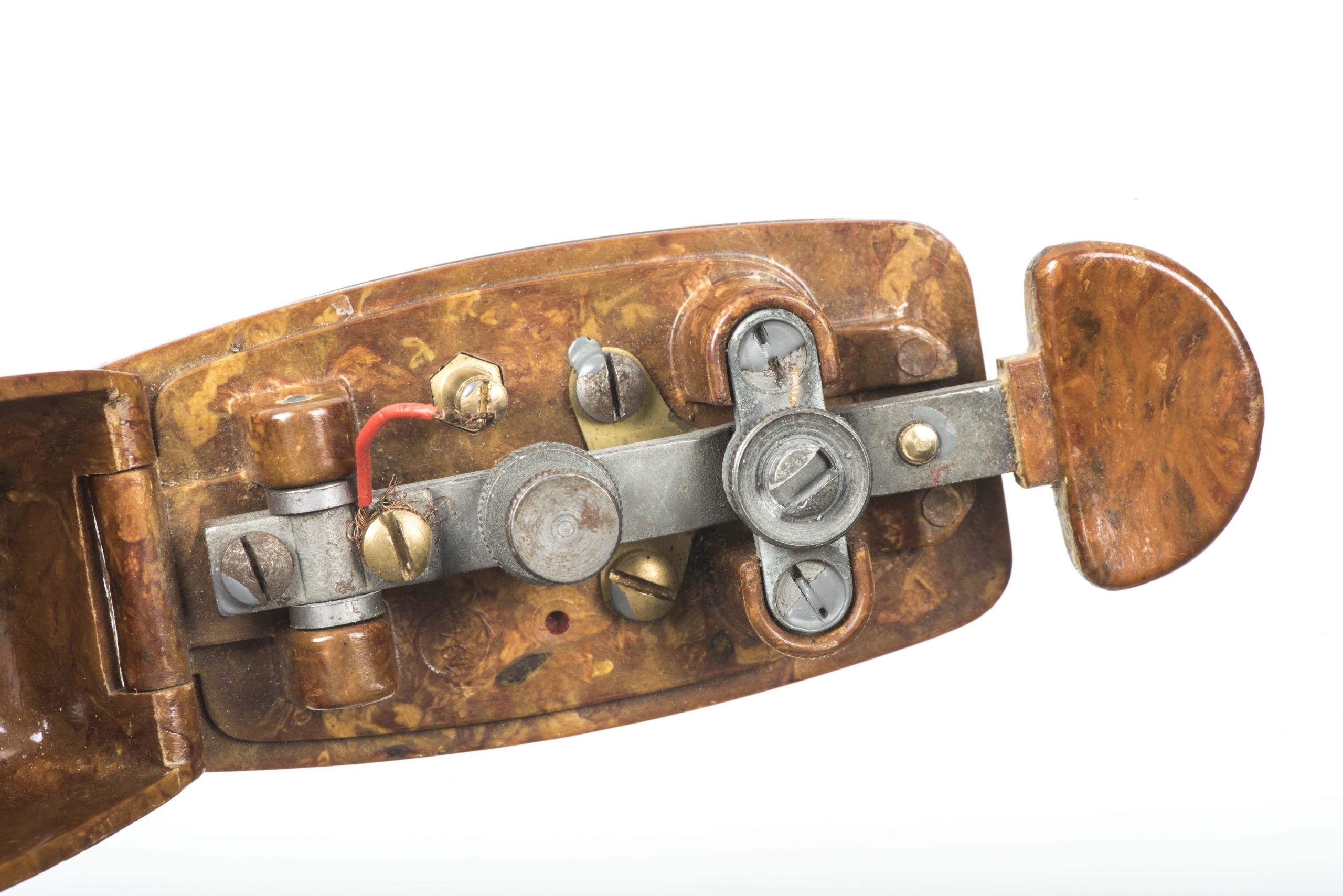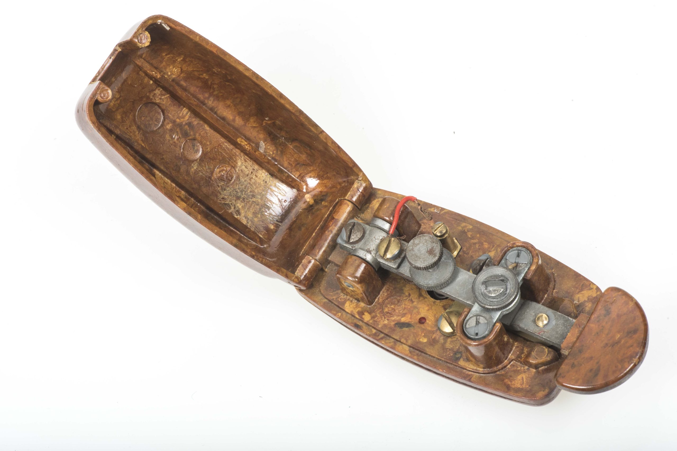 Textbook issue Ta.P. morse key as used with various Funk (communication) equipment in excellent condition! Manufactured out of very nice brown coloured Bakelite and dated 1944. Sadly the morse key is incomplete.