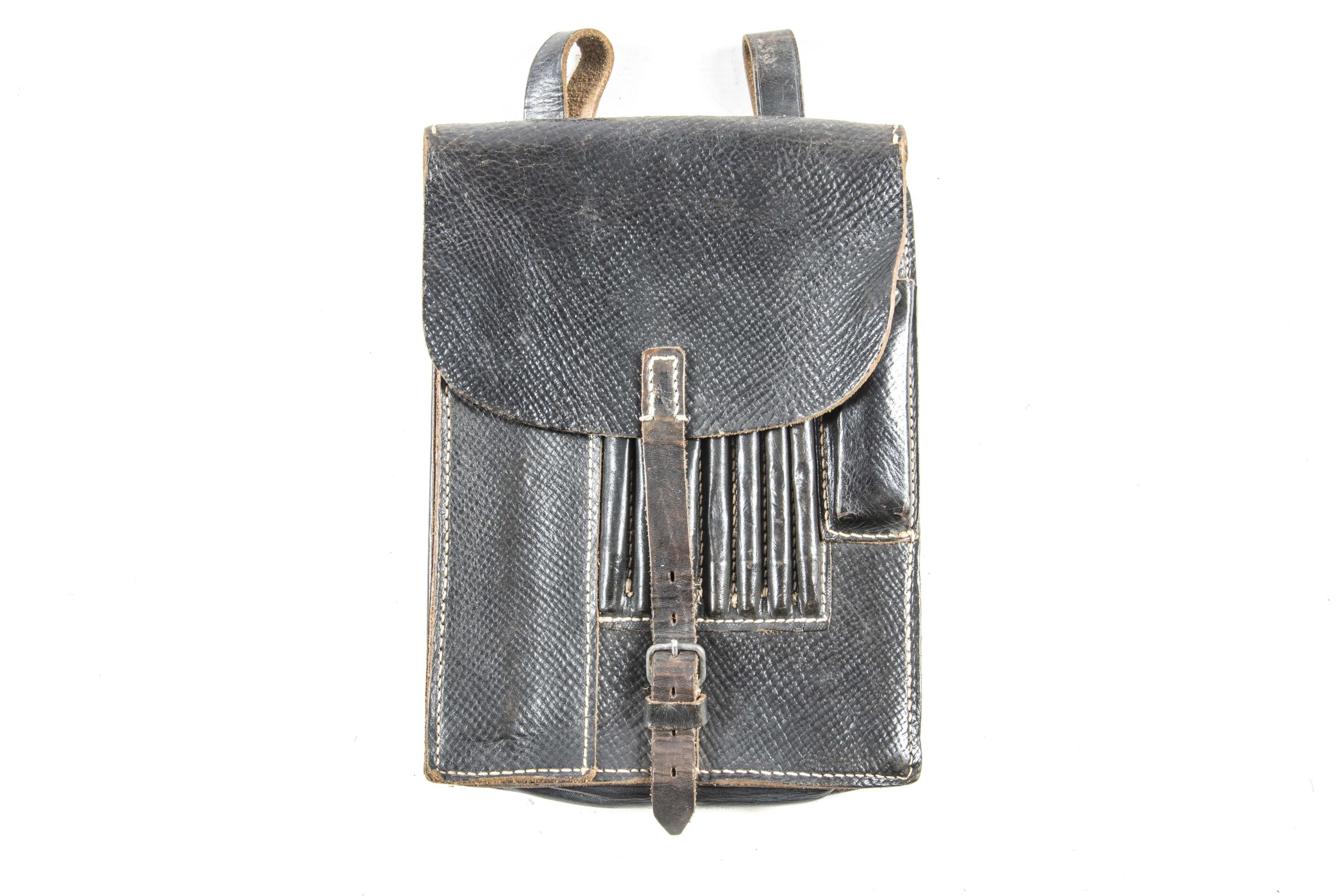 Black mapcase marked 0/0295/0105, named US Sgt 943 Field Artillery Batallion which was attatched to the first XX corps Artillery unit in the war to fire directly under Corps Artillery control. On the 12th of August 1944 it fired in support of the 3rd Cavalry group with the 80th infantry division toward Carrouges and Evron. More information here. The mapcase was taken as a souvenir to this unit. Several names inside give a number of research opportunities. Nice piece!