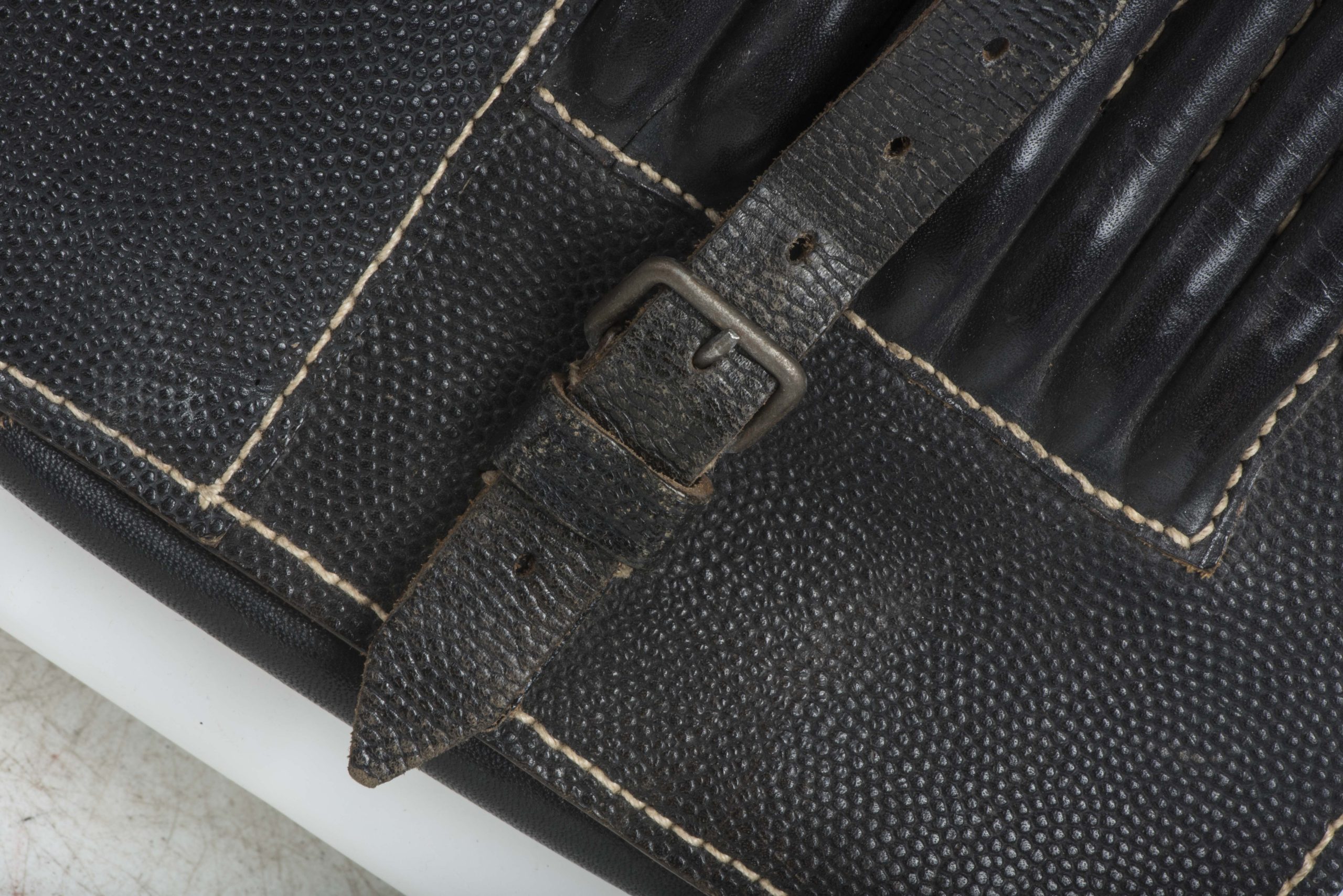 Black mapcase marked 0/0323/0003 named Morck in good condition. Textbook late war example in black pebbled leather with pencils inside.