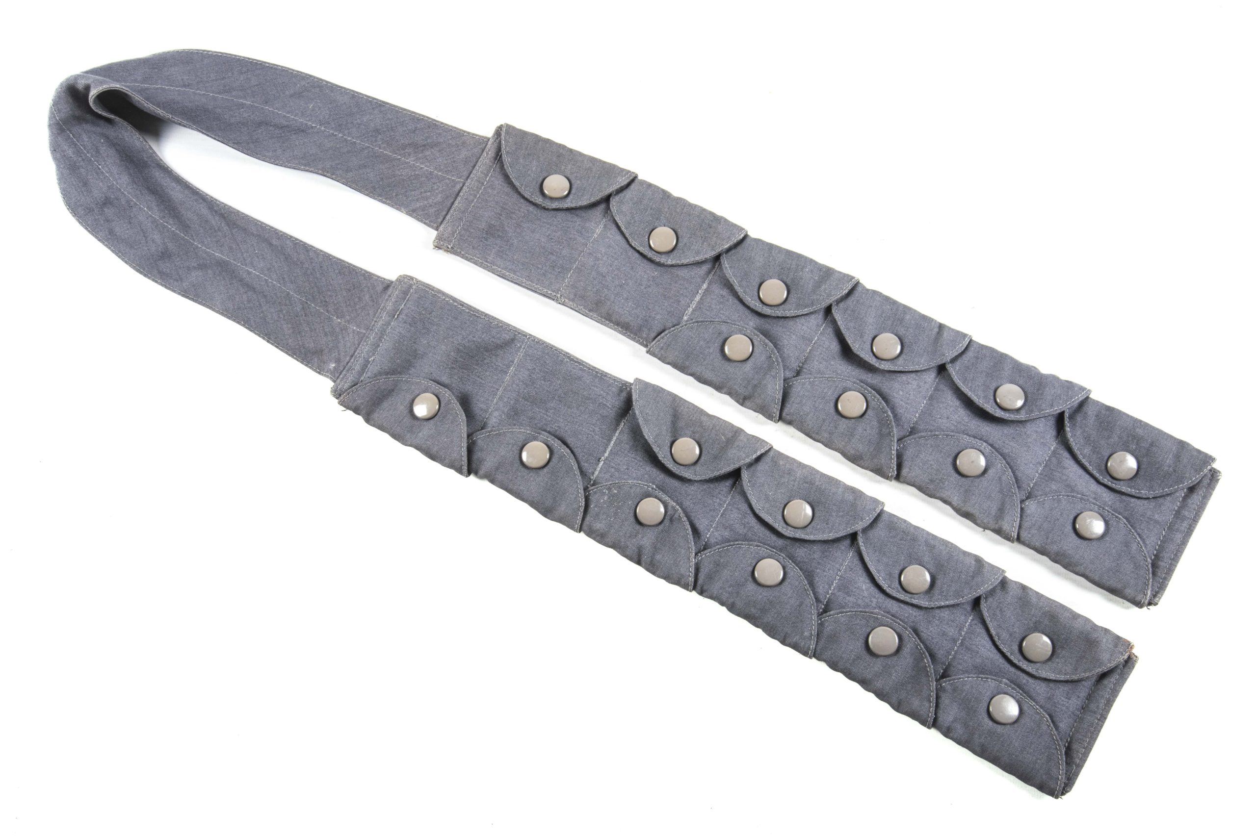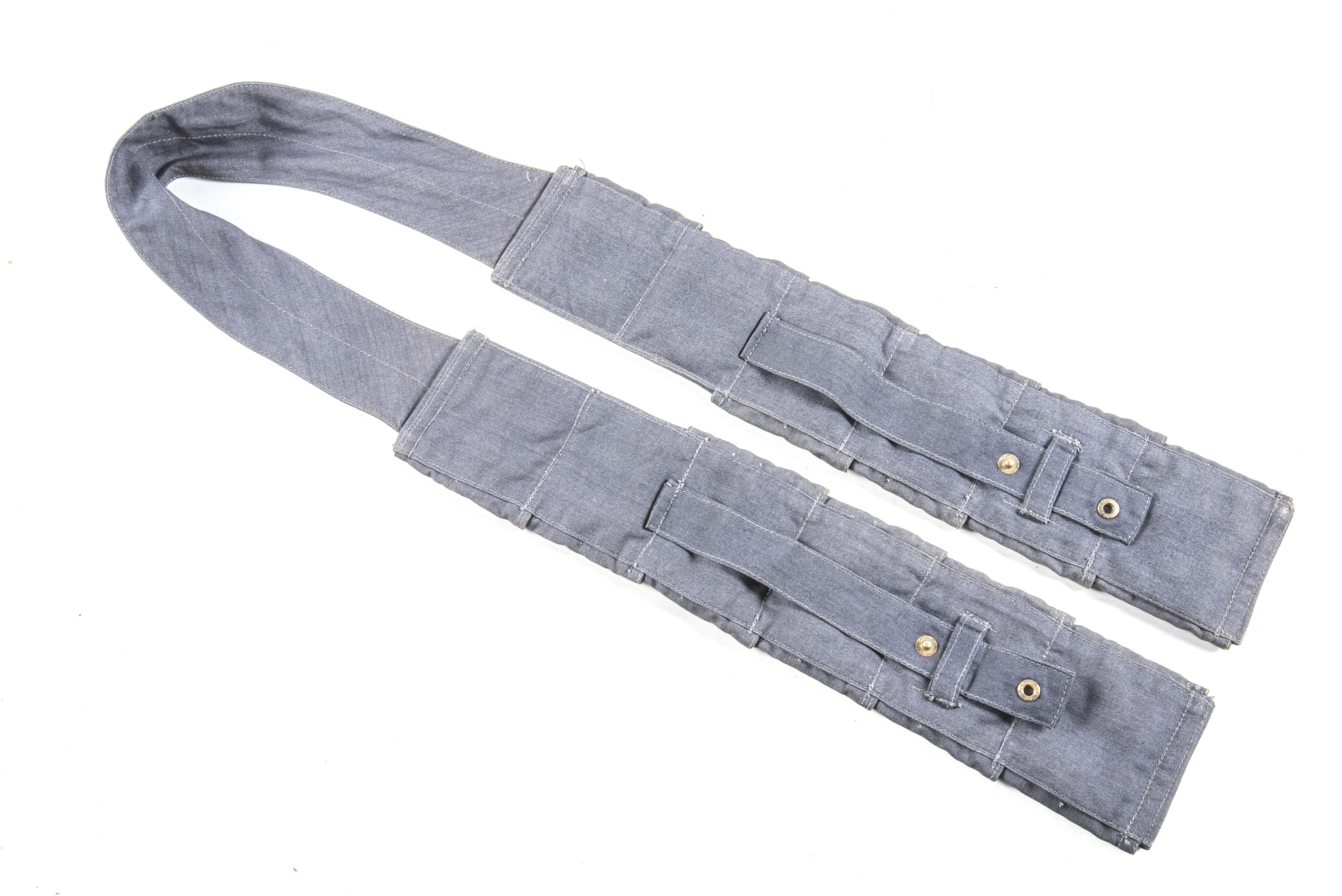 Textbook blue Fallschirmjäger bandoleer in excellent condition. The bandoleer retains all of its working press studs. Hard to find!
