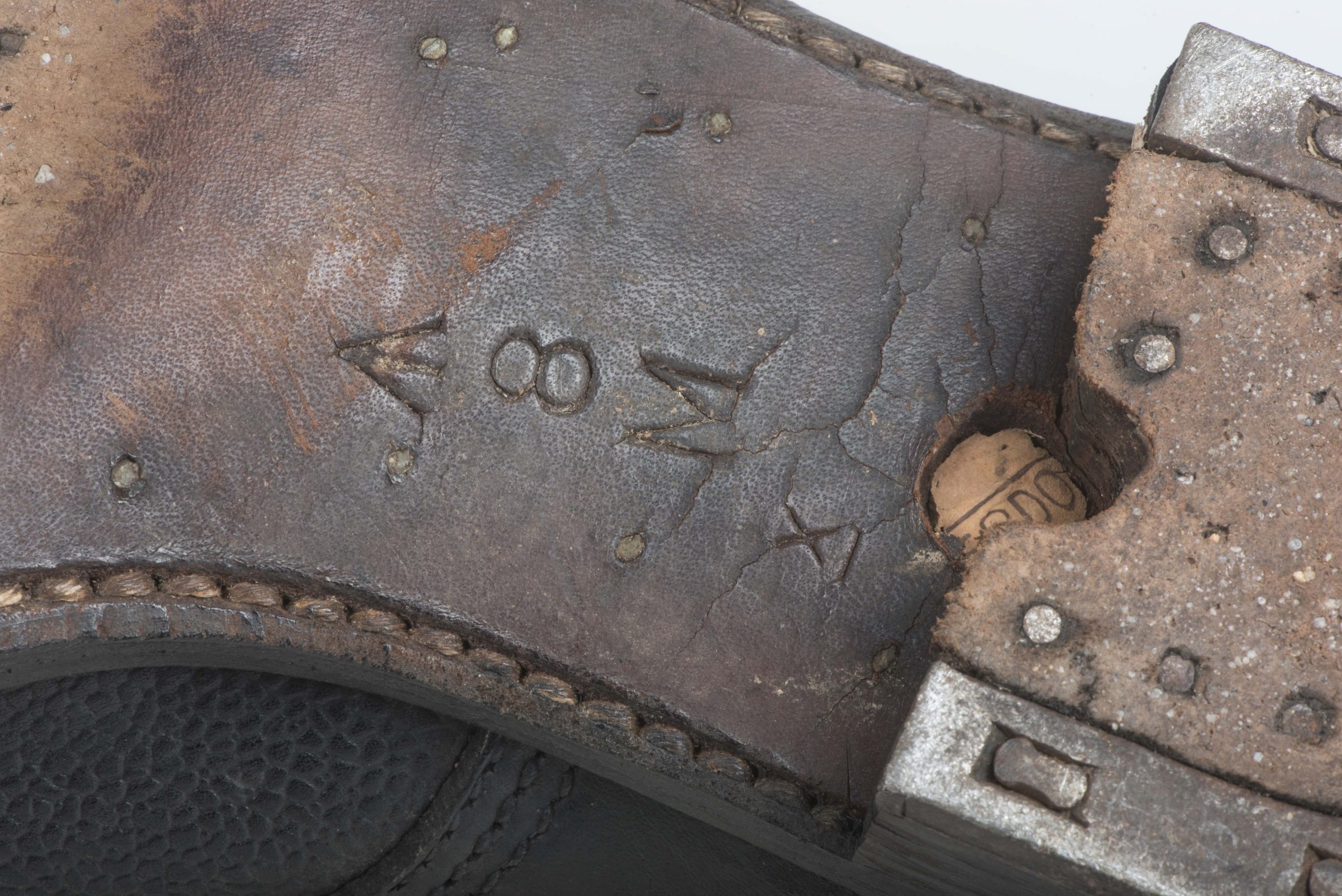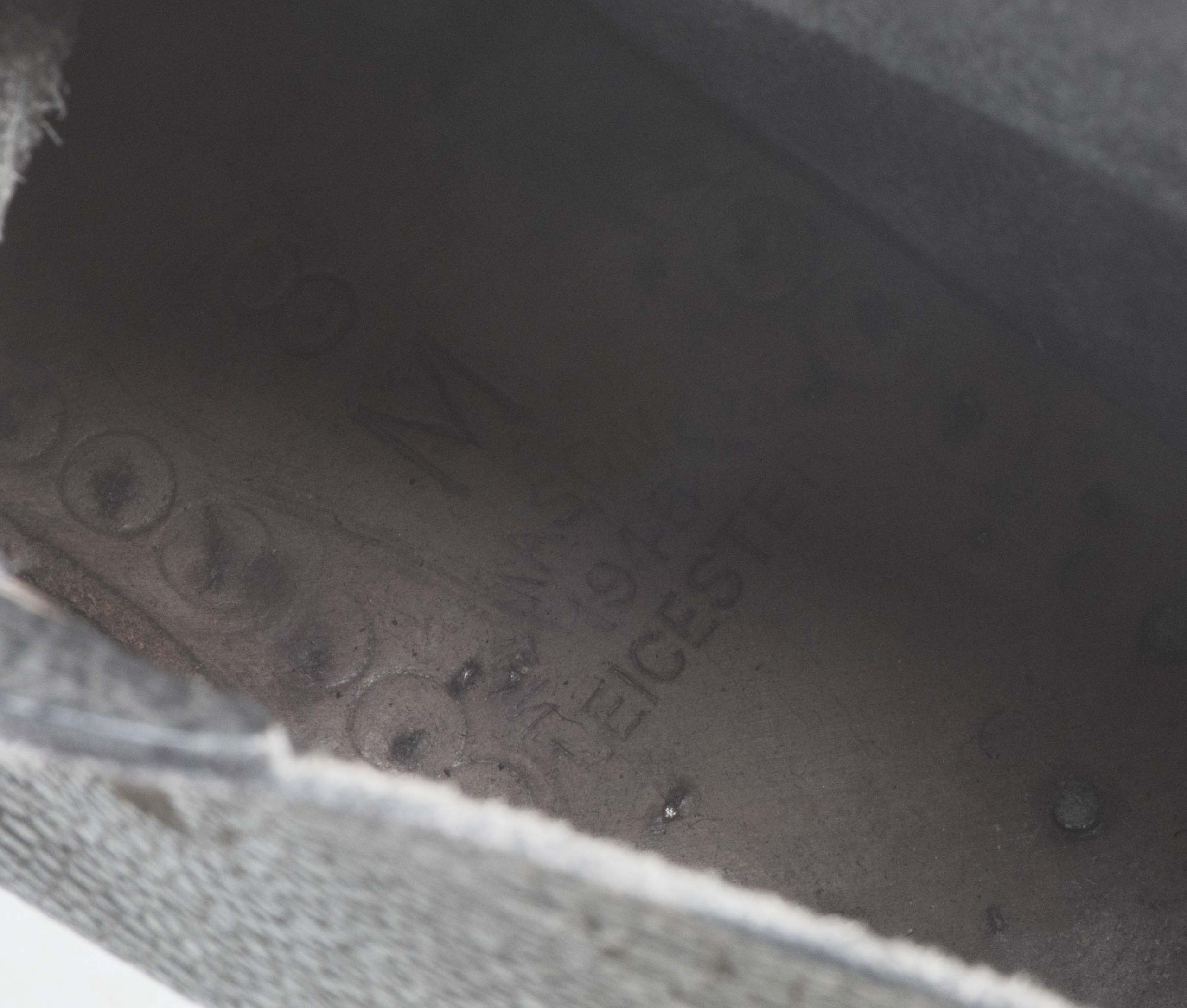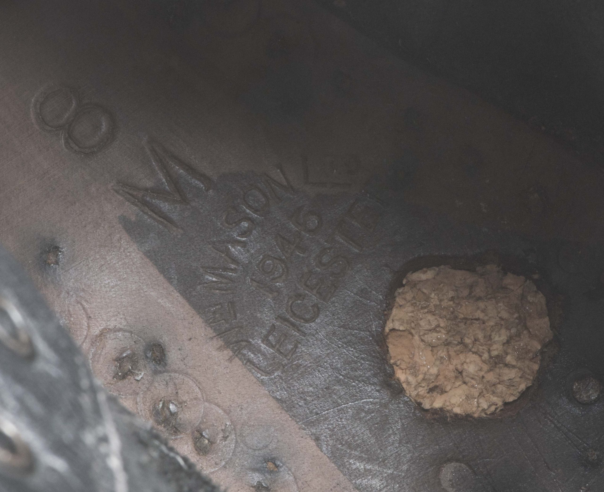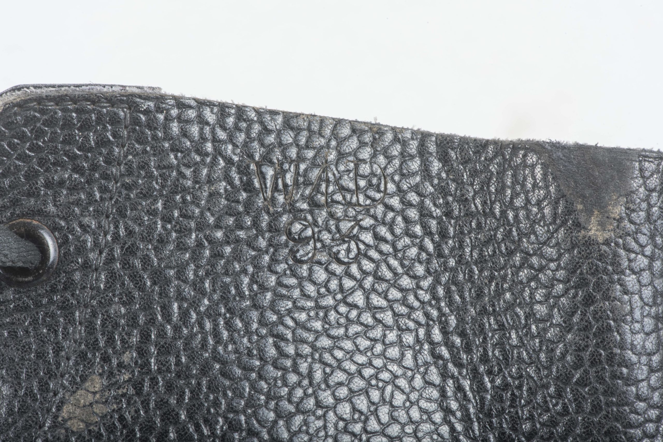 British ammo boots marked W Mason 1945 8M 1945 in good condition. One hole has been drilled in the sole for a mannequin.