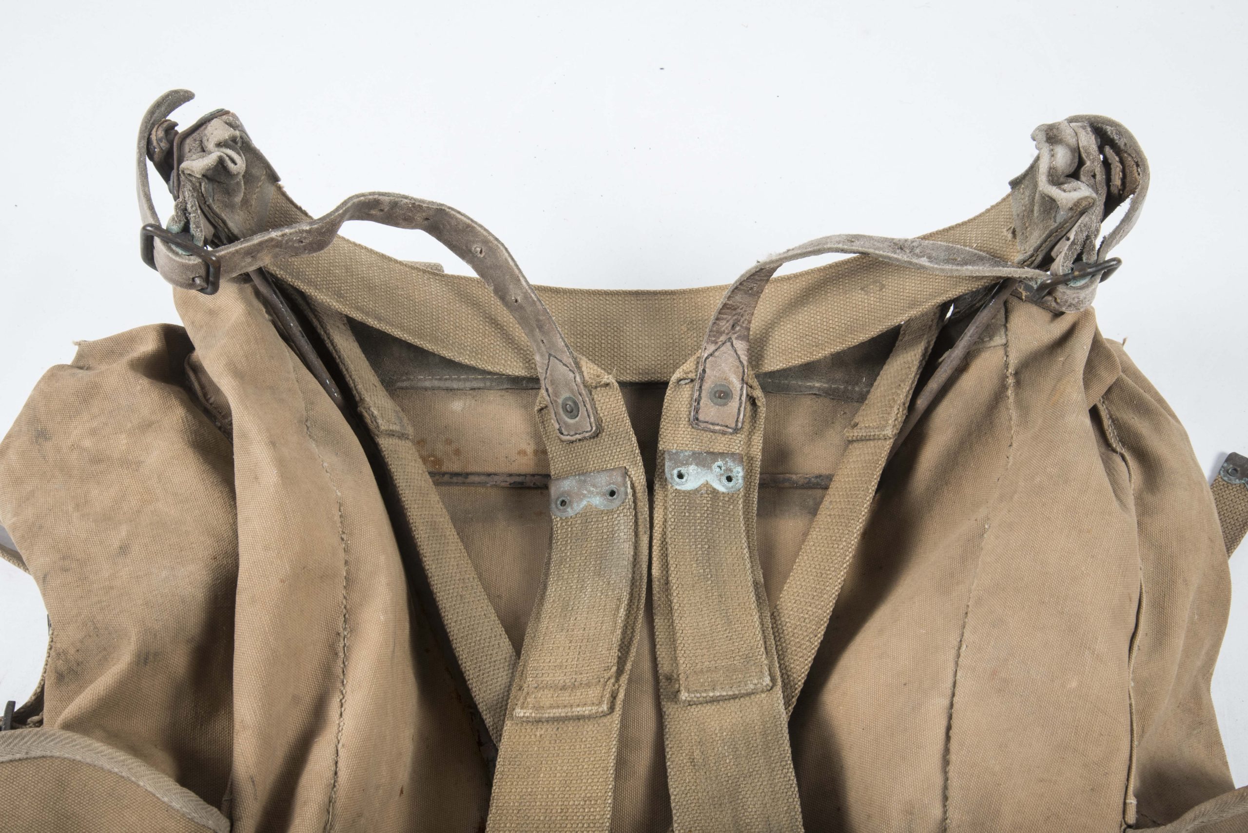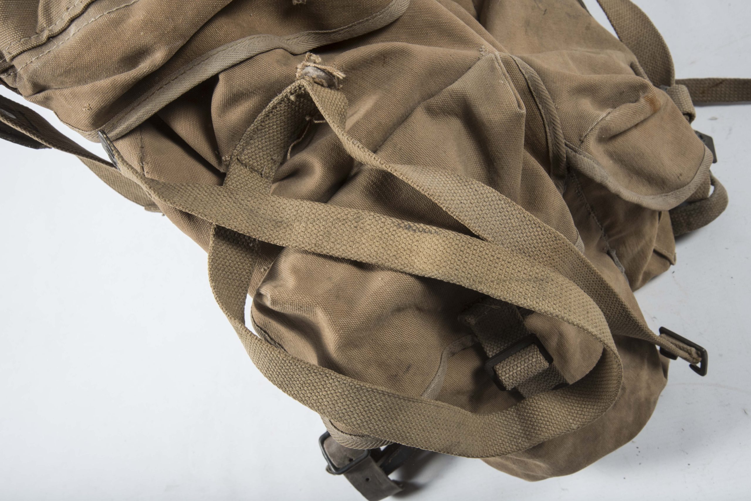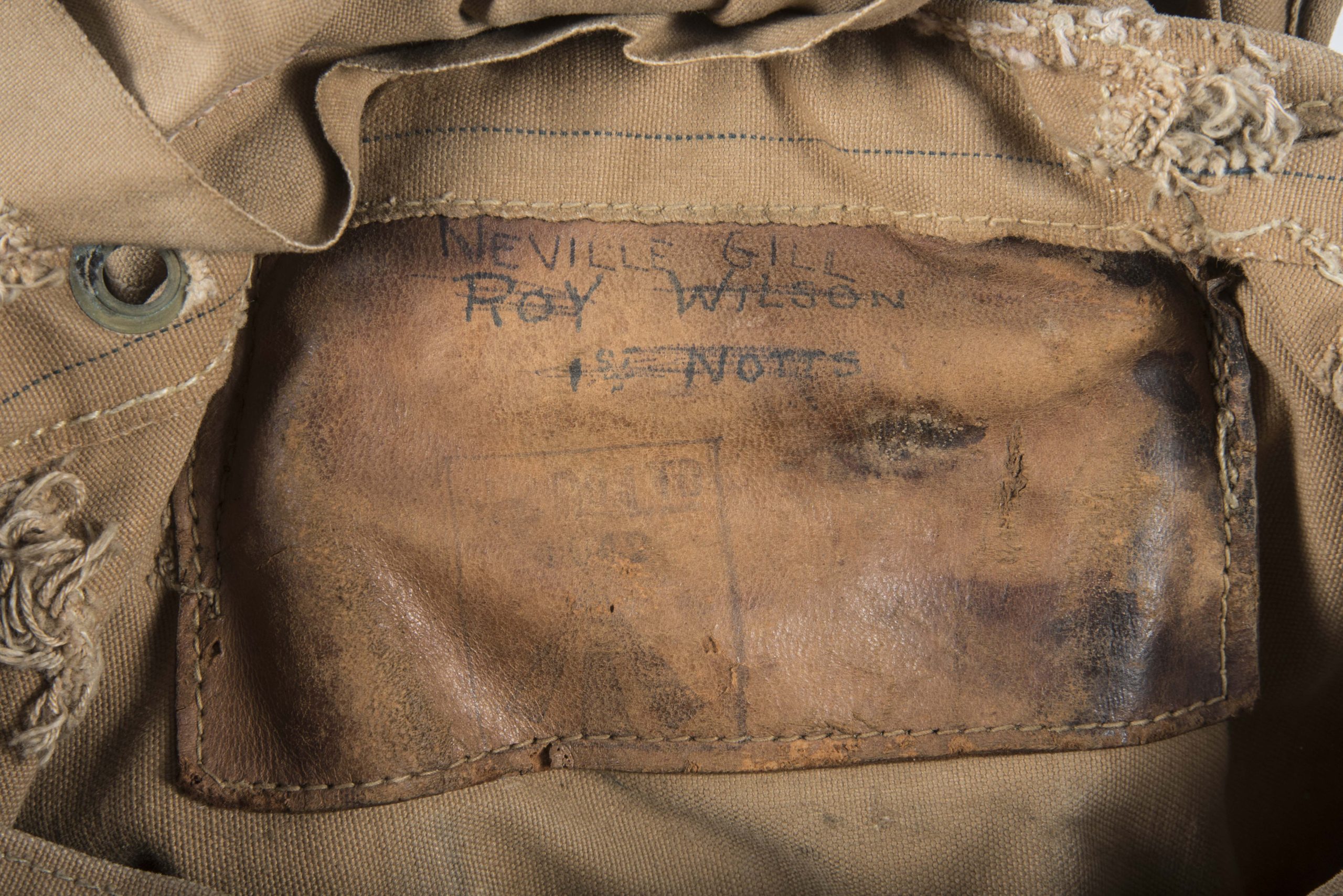 British Bergen rucksack dated 1942, named Neville Gill, Roy Wilson and 1st. Notts. Hard to find early example in good used condition!