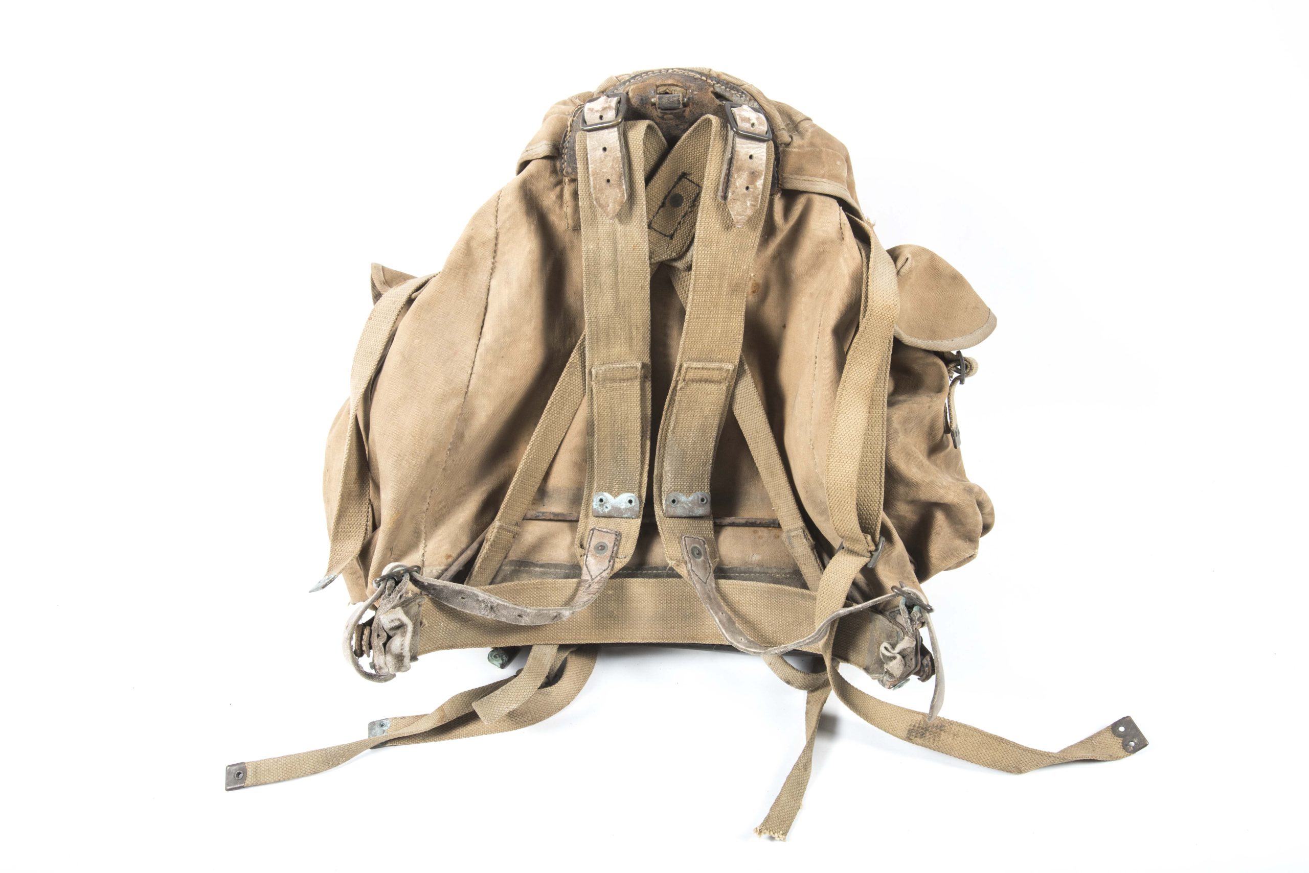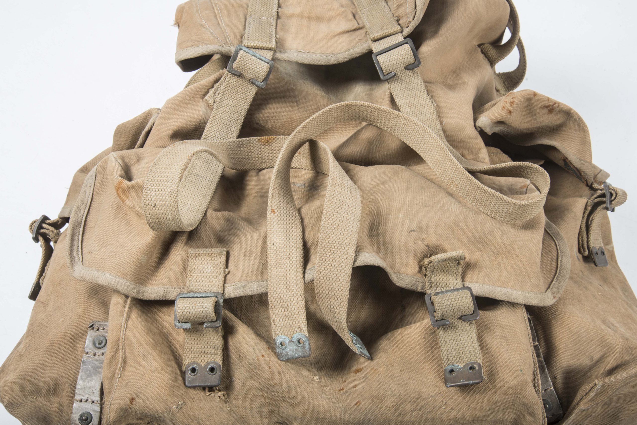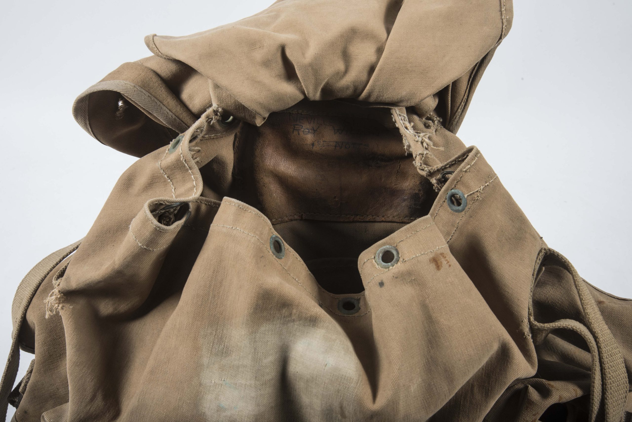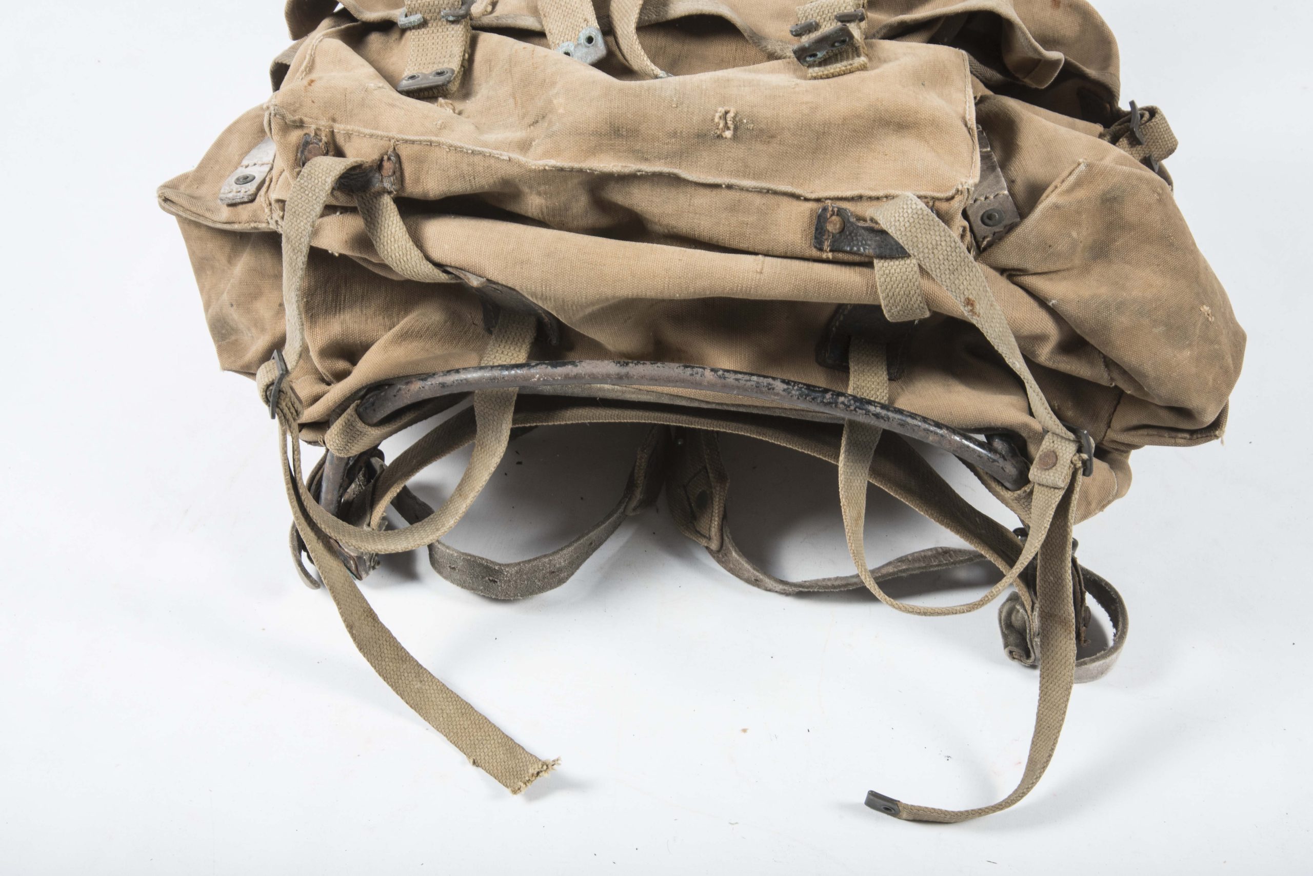 British Bergen rucksack dated 1942, named Neville Gill, Roy Wilson and 1st. Notts. Hard to find early example in good used condition!