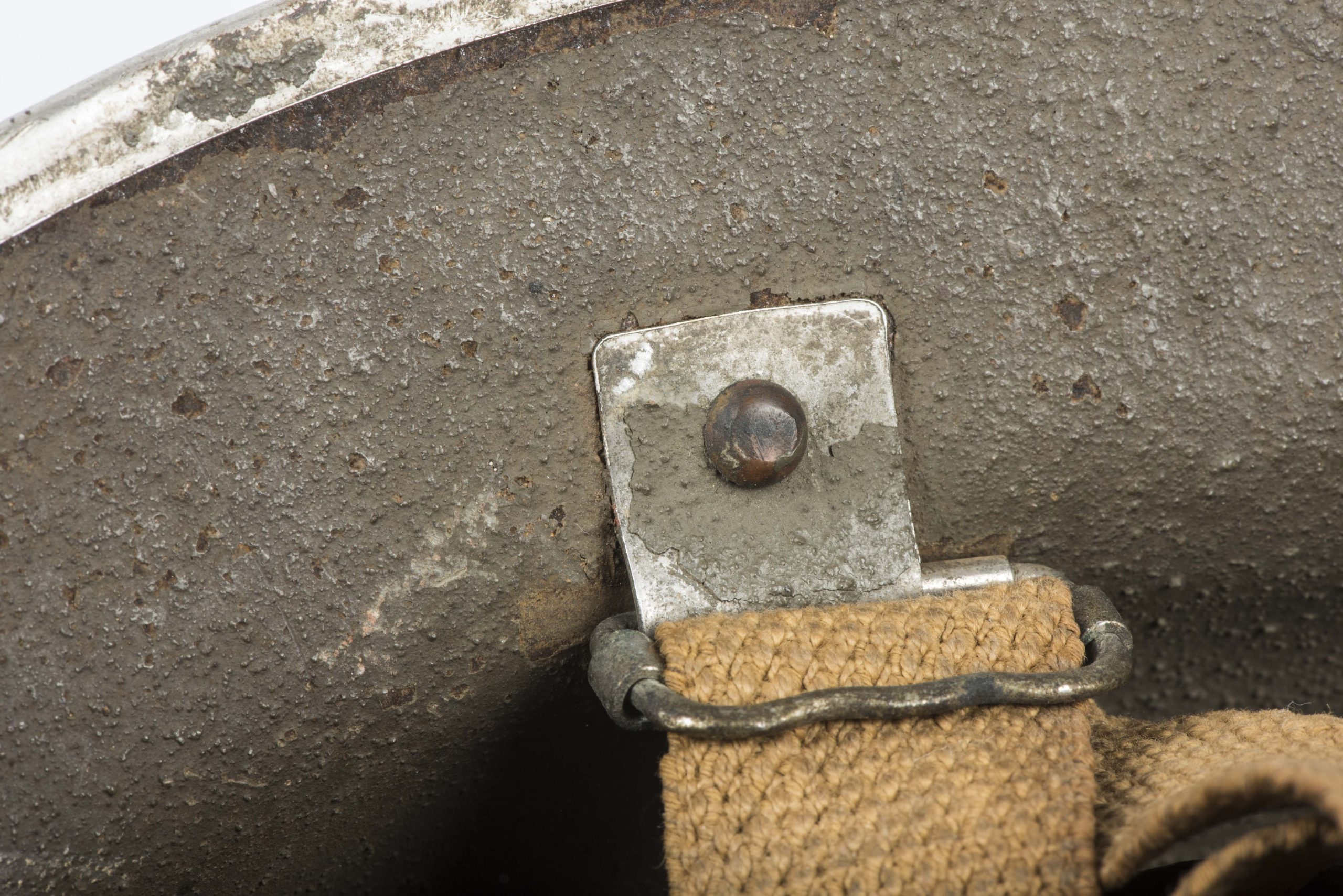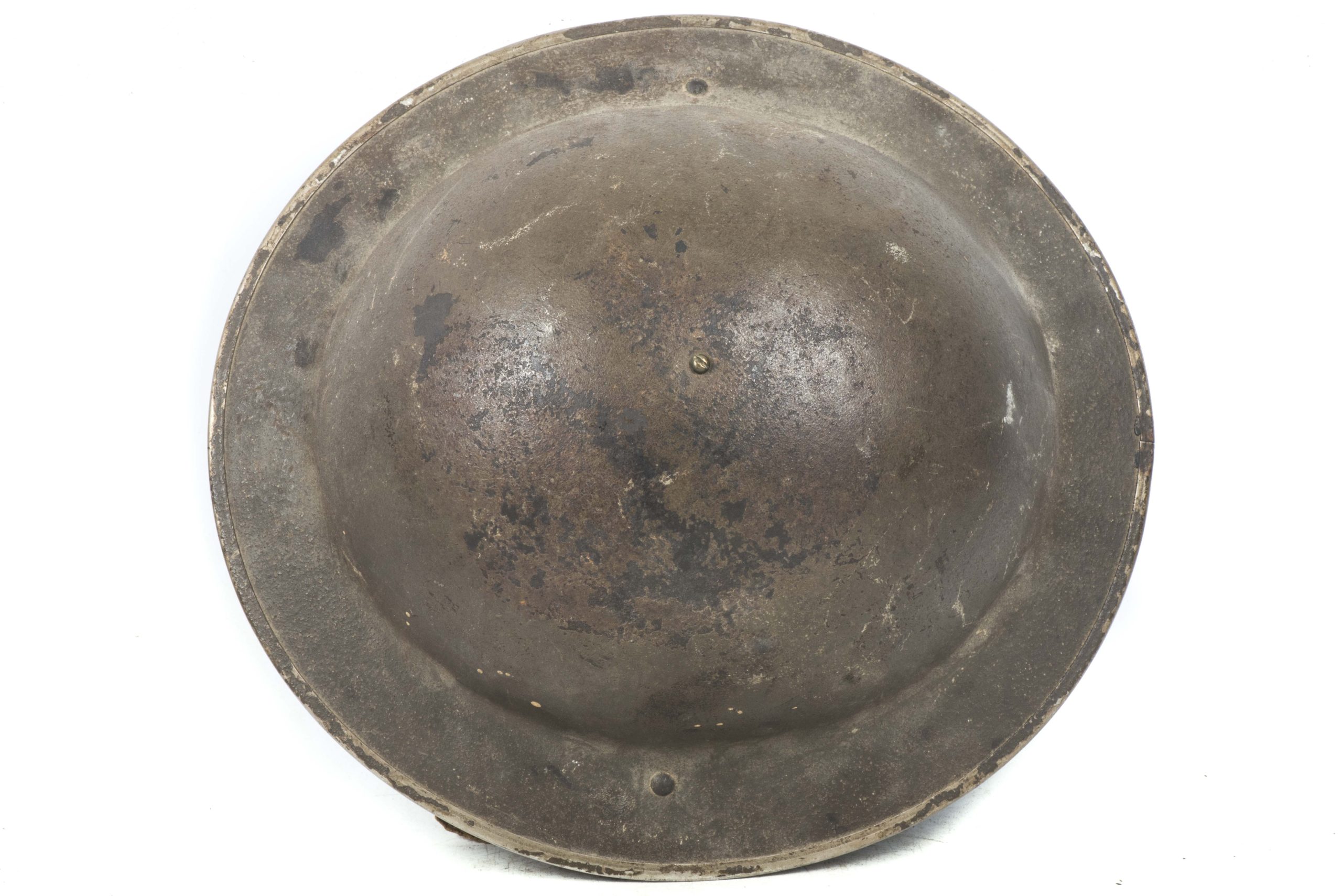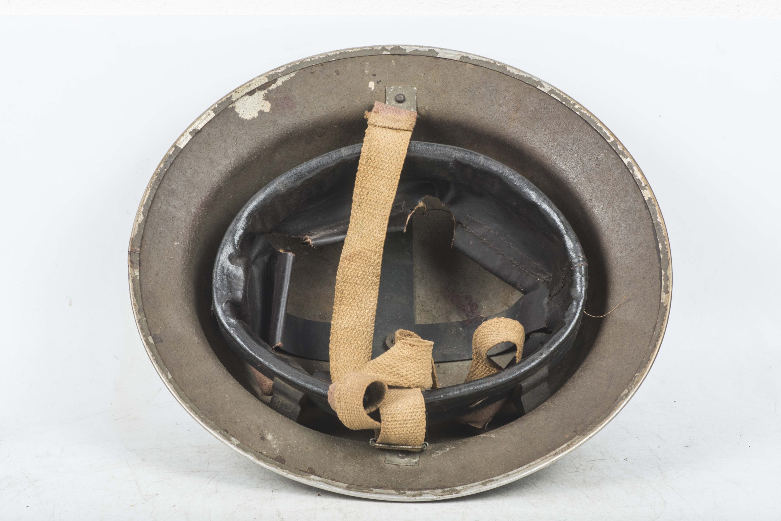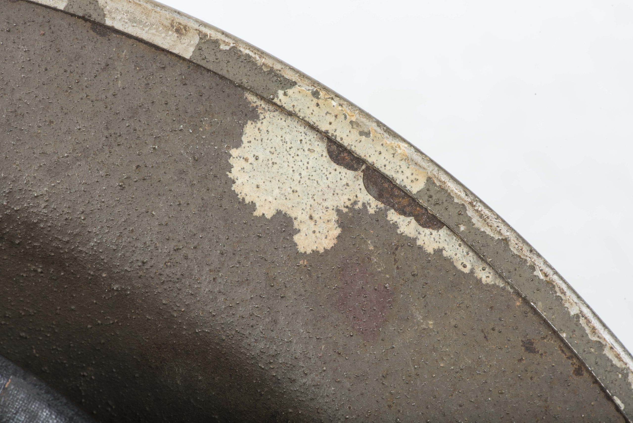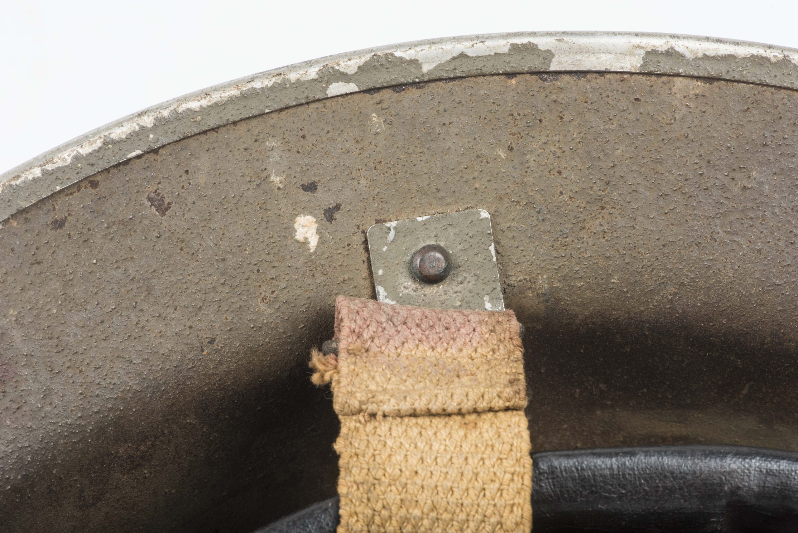 Textbook British MKII helmet in good used condition. Still retaining its original 1942 dated liner and textured camouflage paint finish.