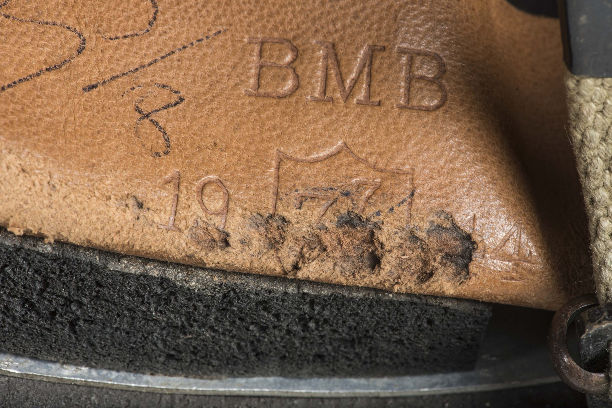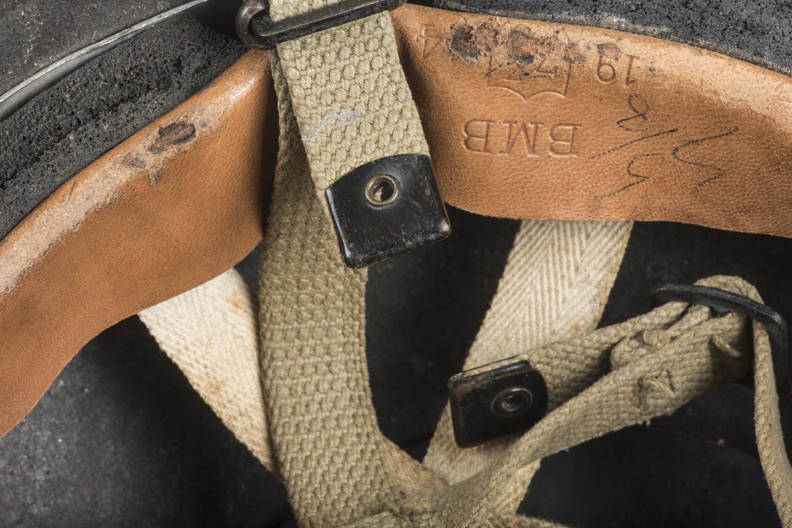 British MKII Paratrooper helmet maked BMB 1944 size 7 7/8 in good condition. The helmet retains its factory installed large sized 7 7/8 liner. The helmet retains its external factory paint up to 95%. This is a textbook example in perfect condition!