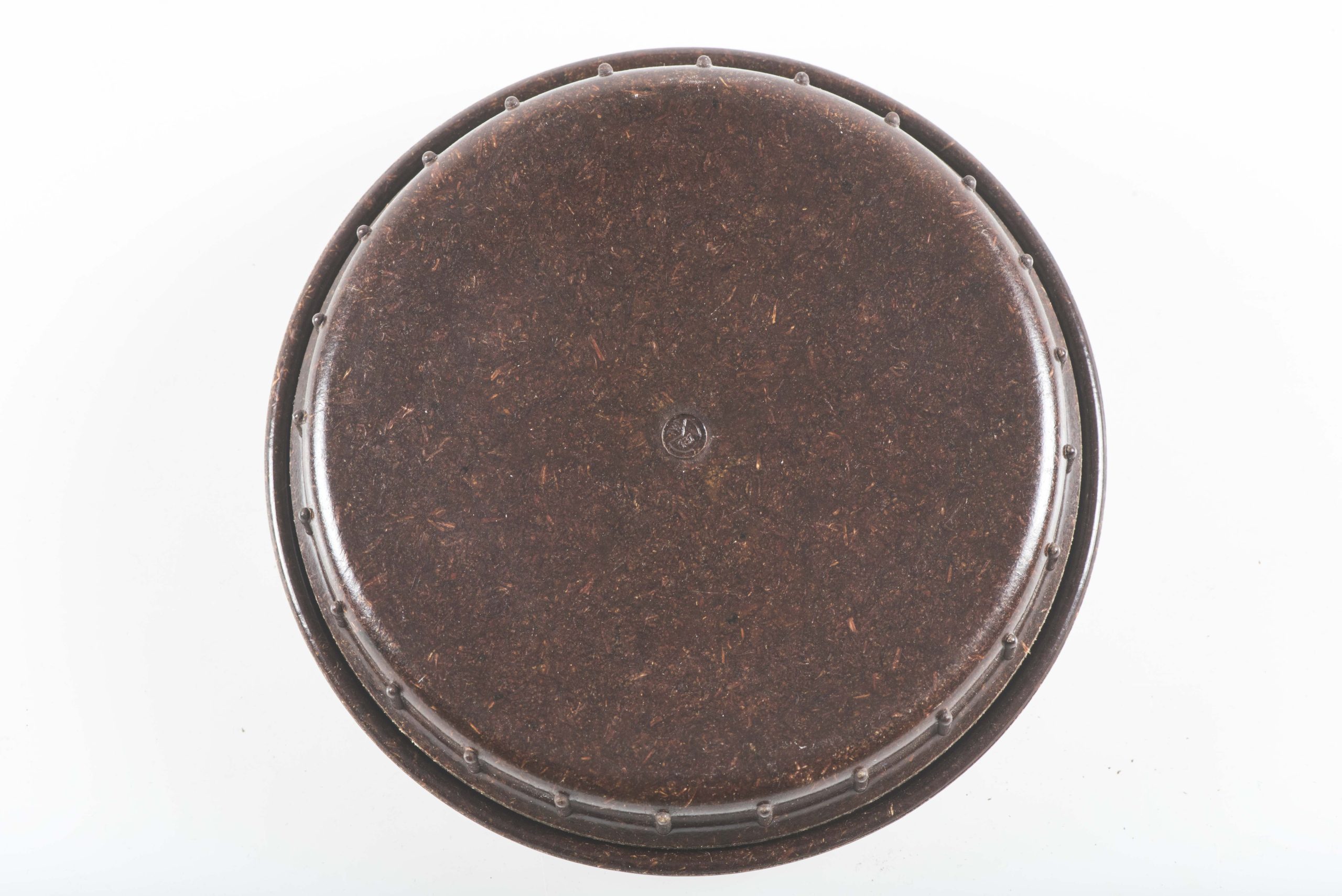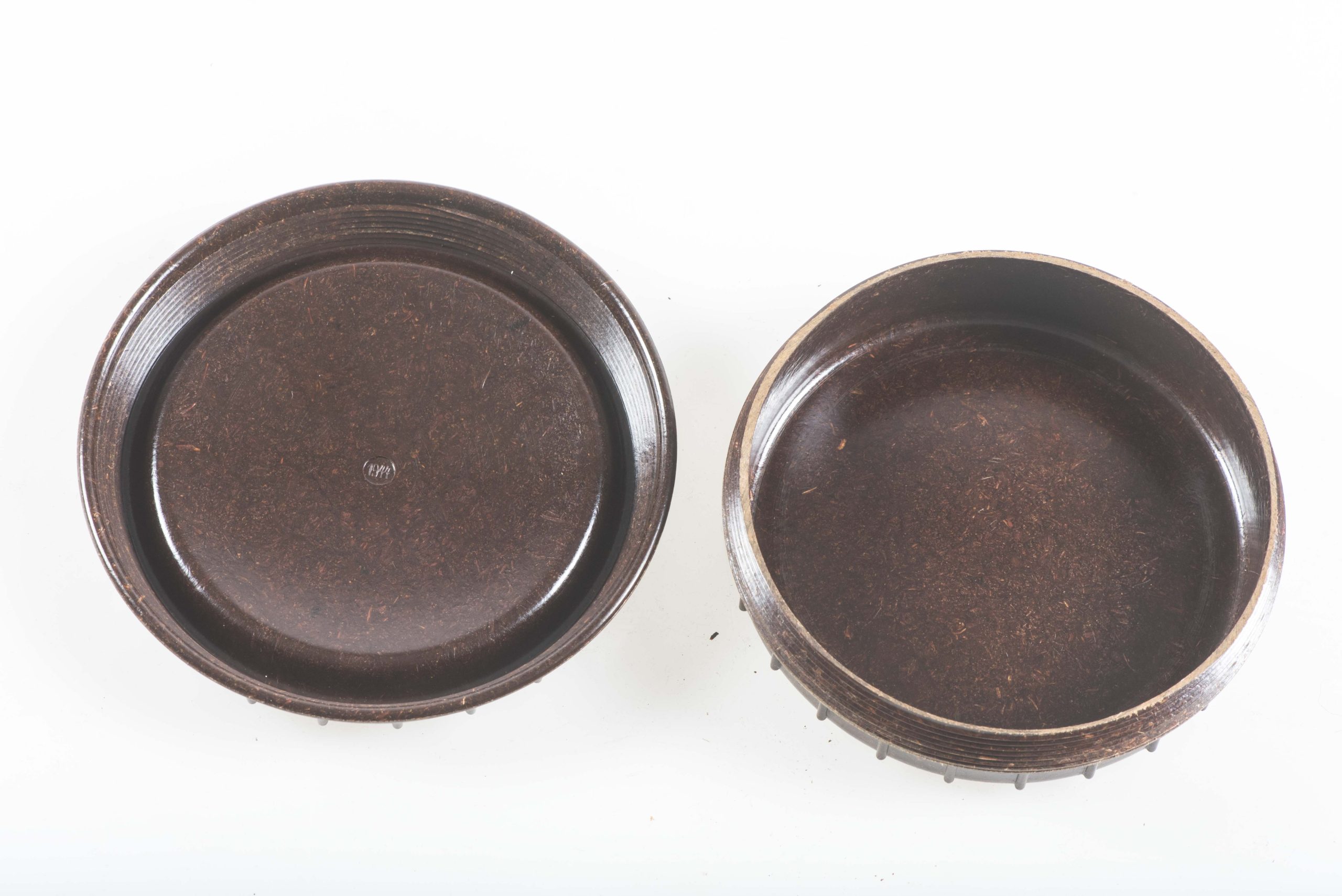 Second pattern brown bakelite butterdish marked 1W 131 indicating production by Julius Posselt, Gablonz. Rare piece!