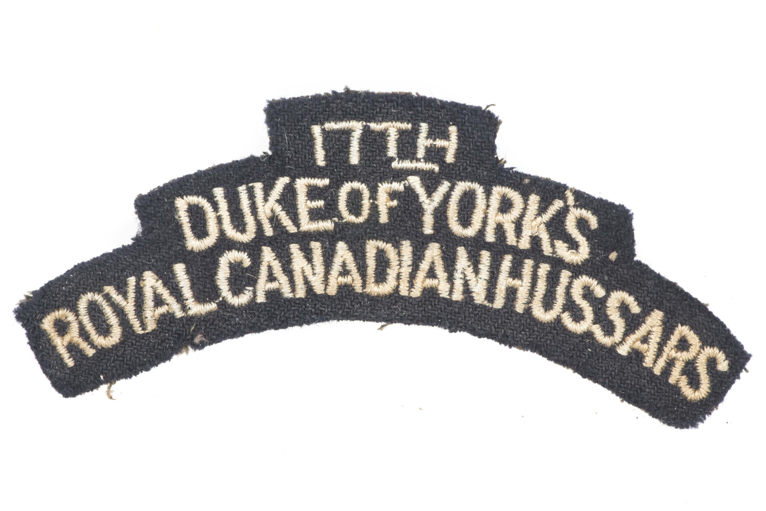 Typical embroidered Canadian shouldertitle 17th Duke of York’s Royal Canadian Hussars regiment in good condition. The rear of the title shows glue remnants.