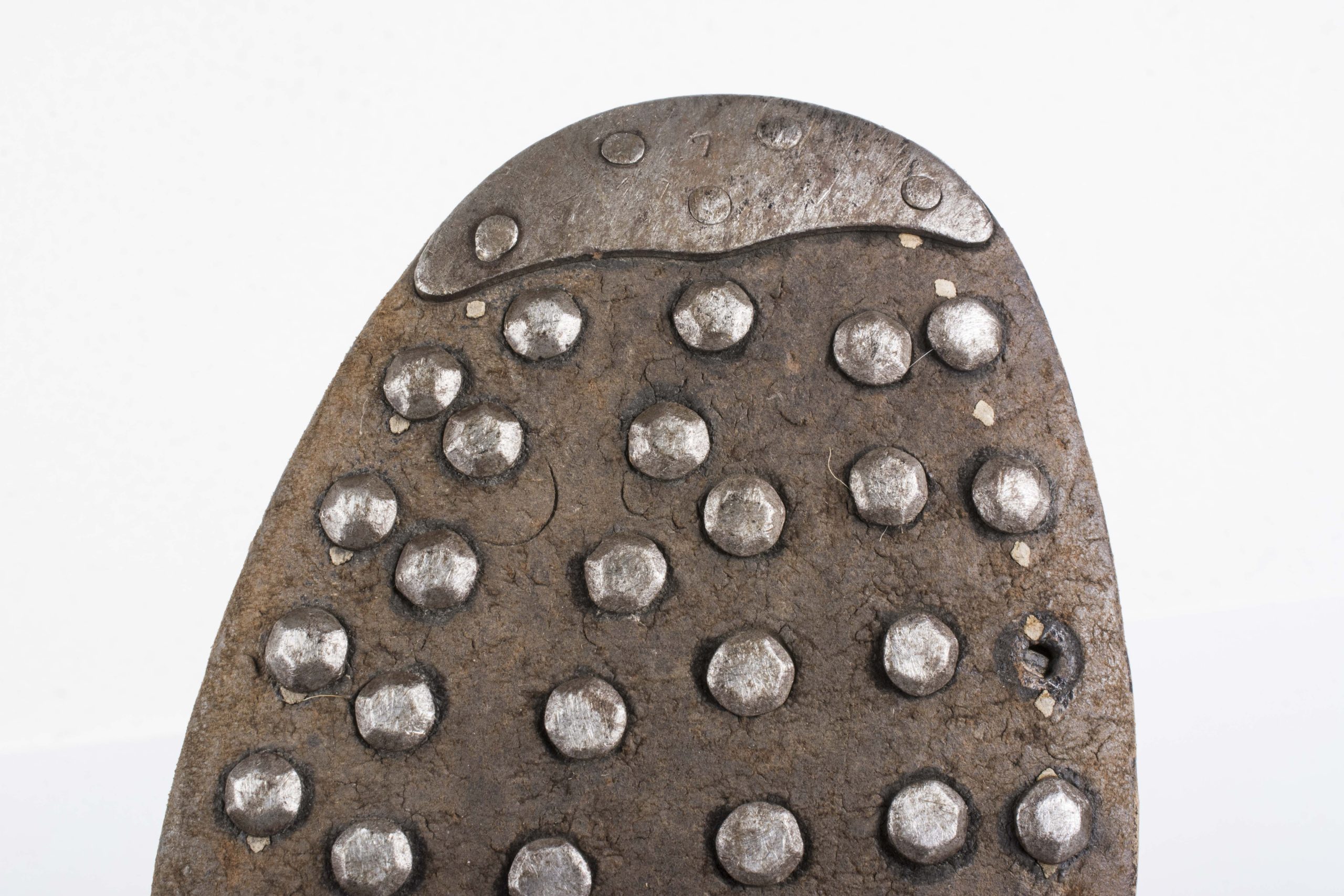 Textbook German army issue riding boots by the brand of Mercedes. The boots are in unworn condition with storage wear only. The boots are a very nice pair that would be hard to upgrade.