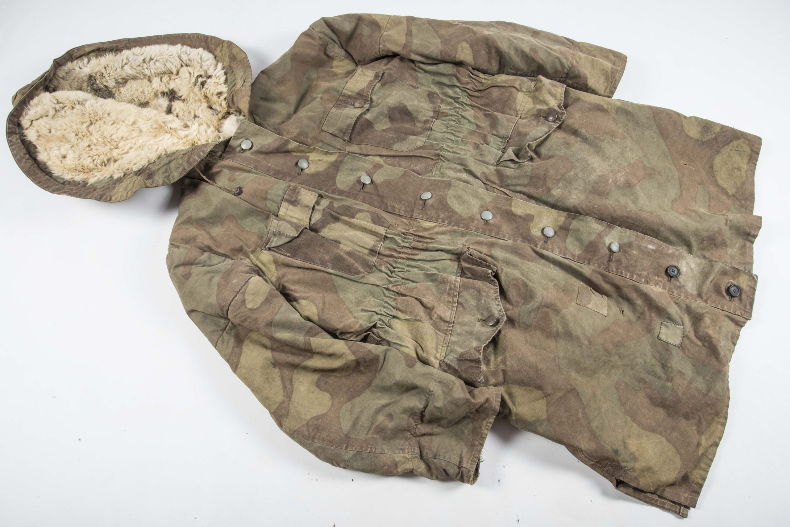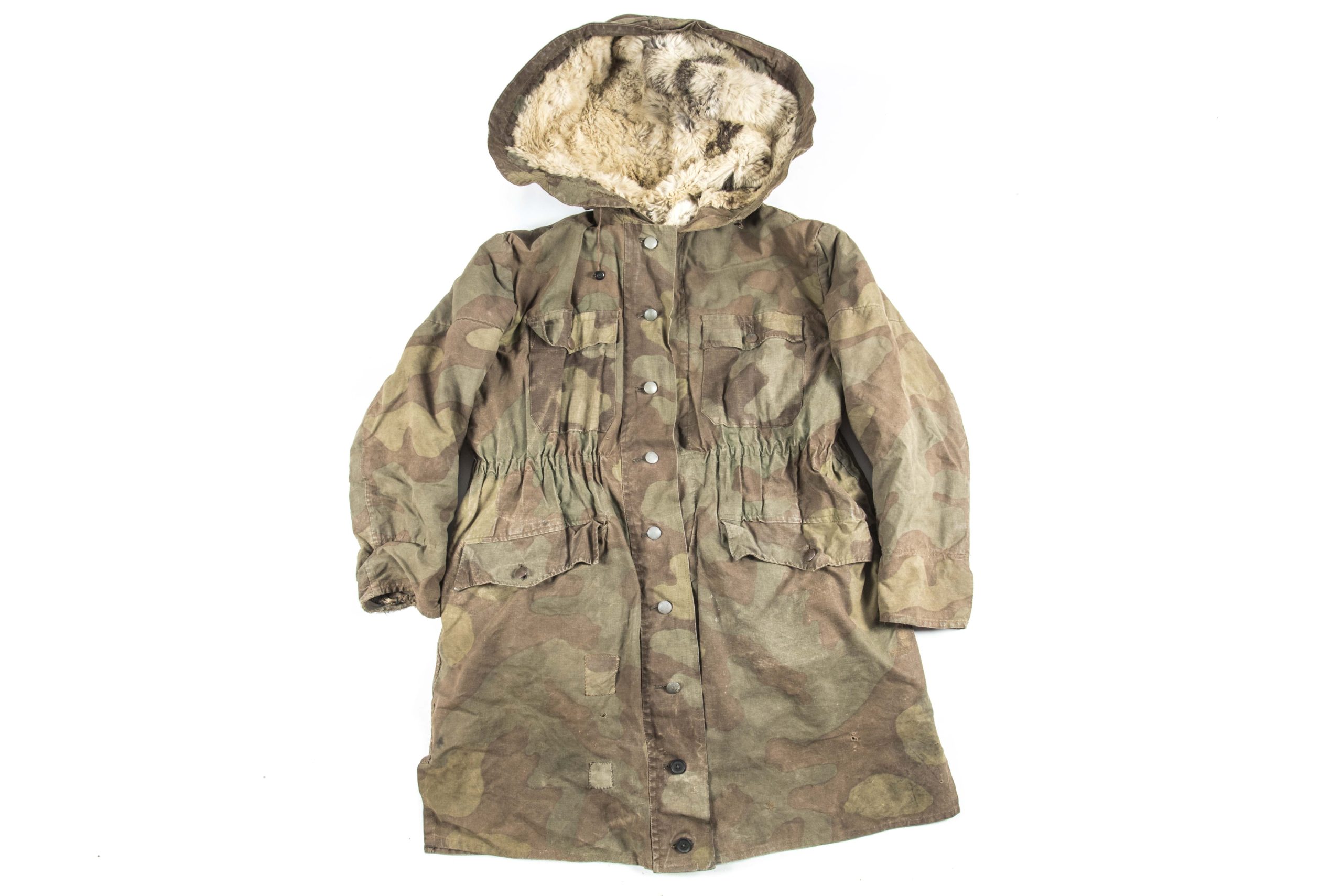 Fourth pattern Charkov parka in Telo Mimetico camouflage. Combat used example which has some period repairs and damages and a lot of character! Nice combat piece!
