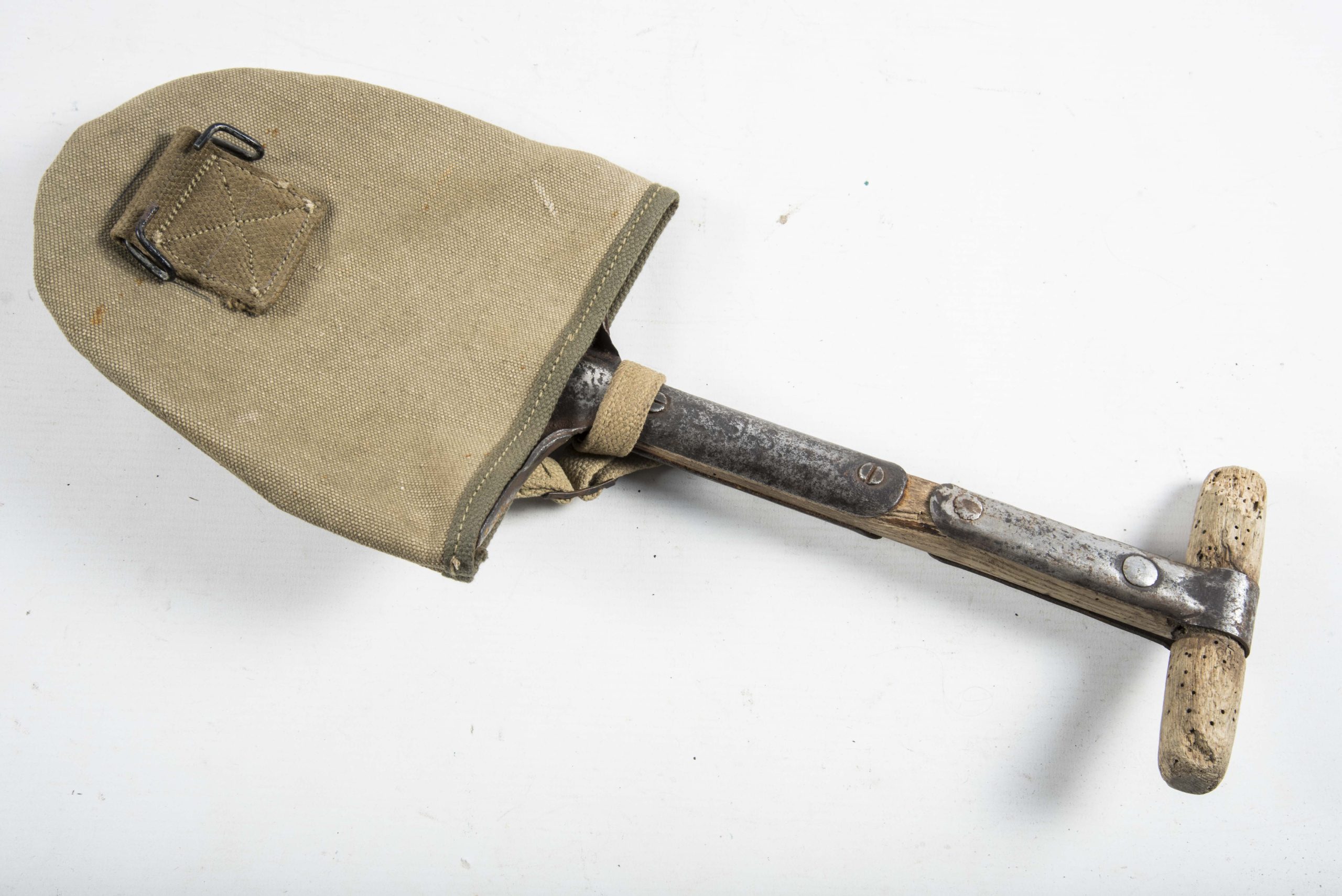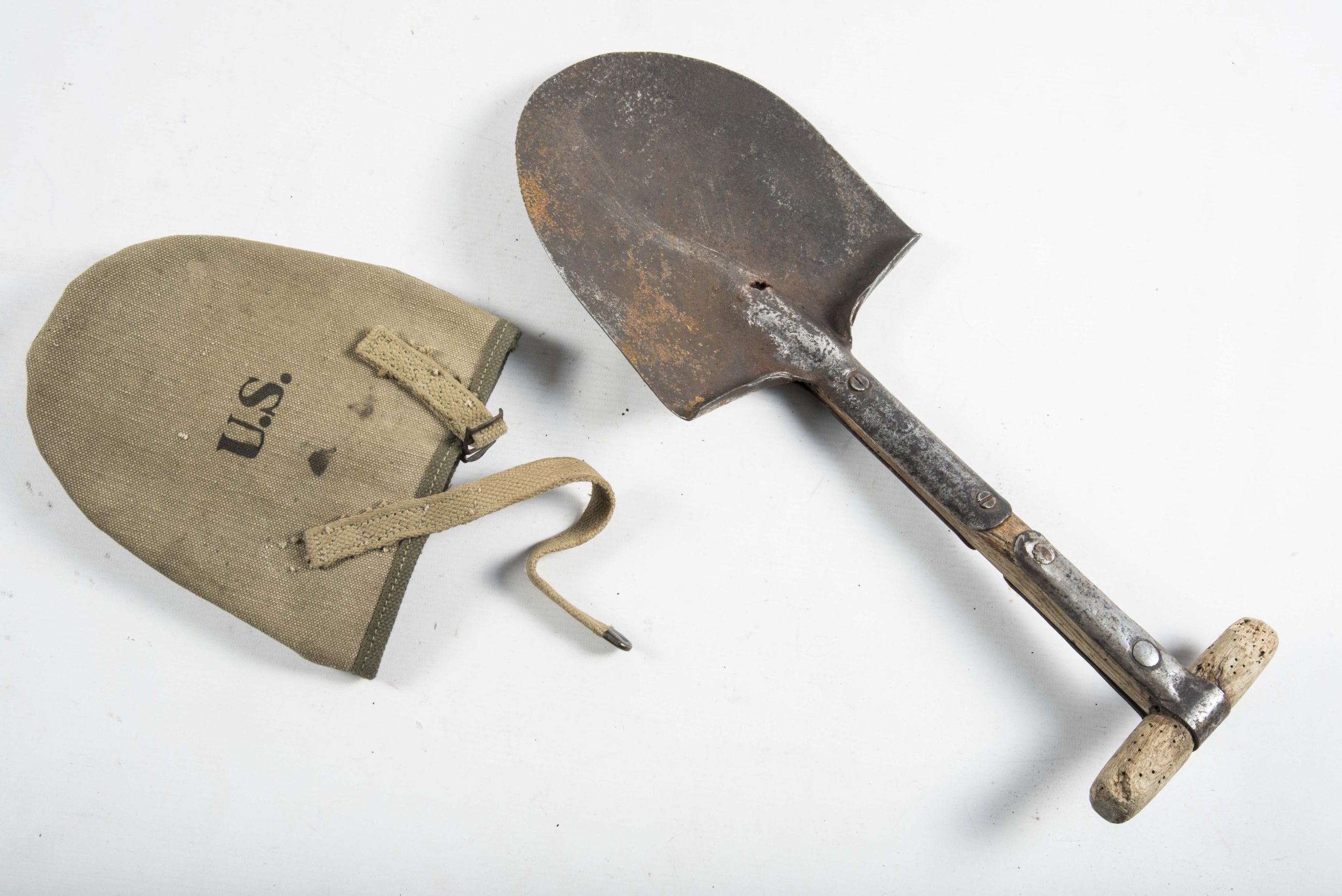 Rare period shortened US T-Handle shovel in good used condition. These T-handles where sometimes cut down and this is a typical ‘Airborne’ modification. Rare piece!