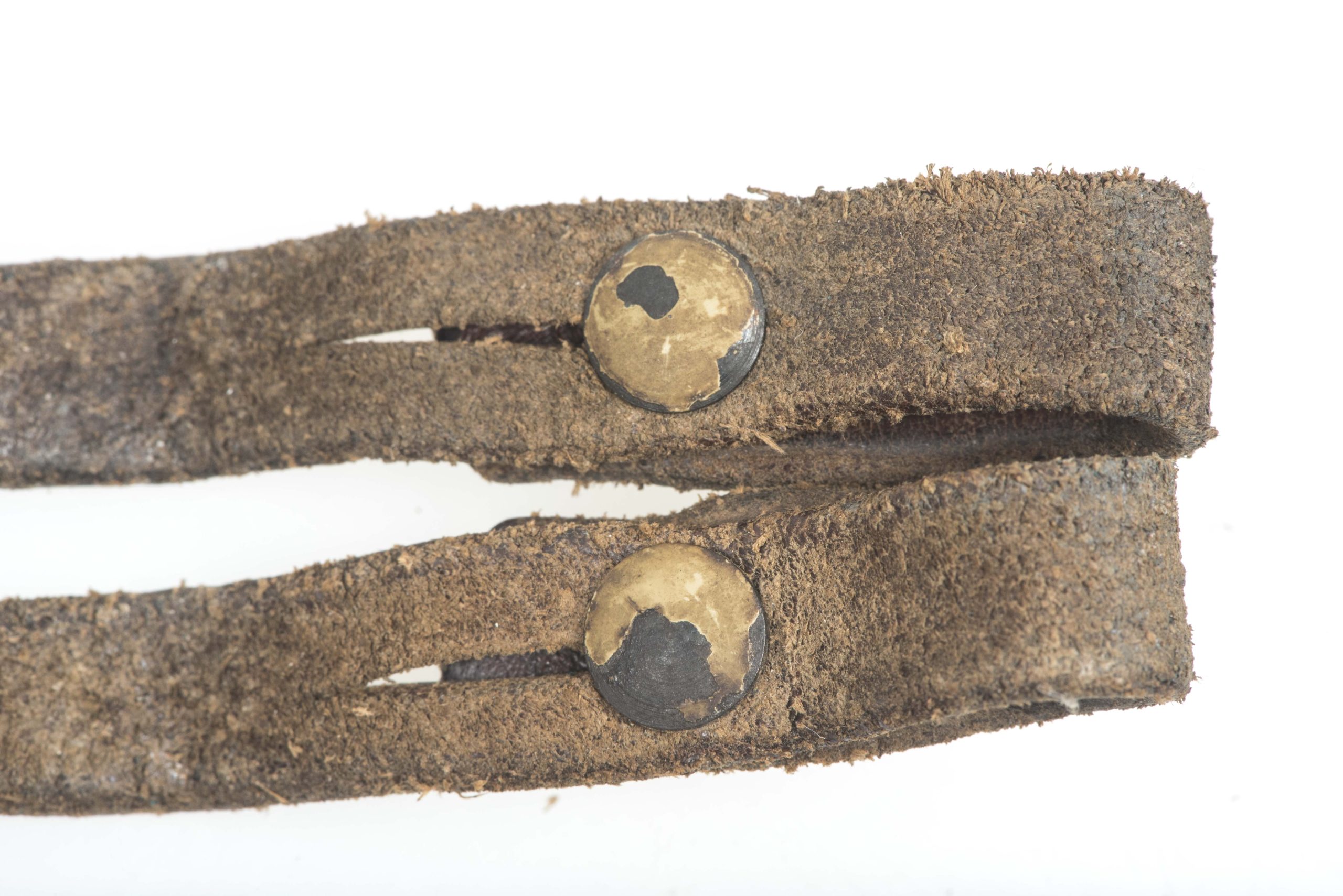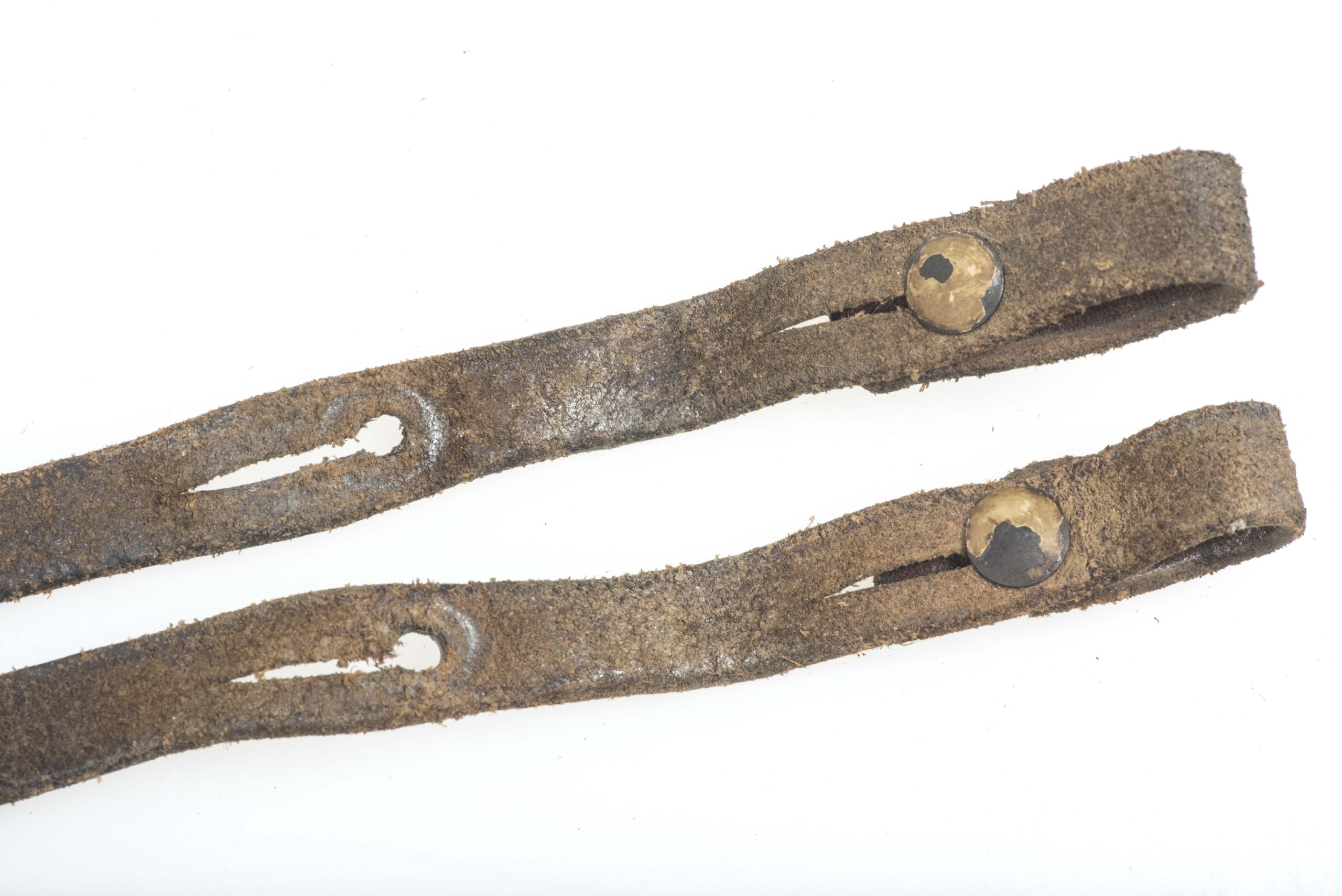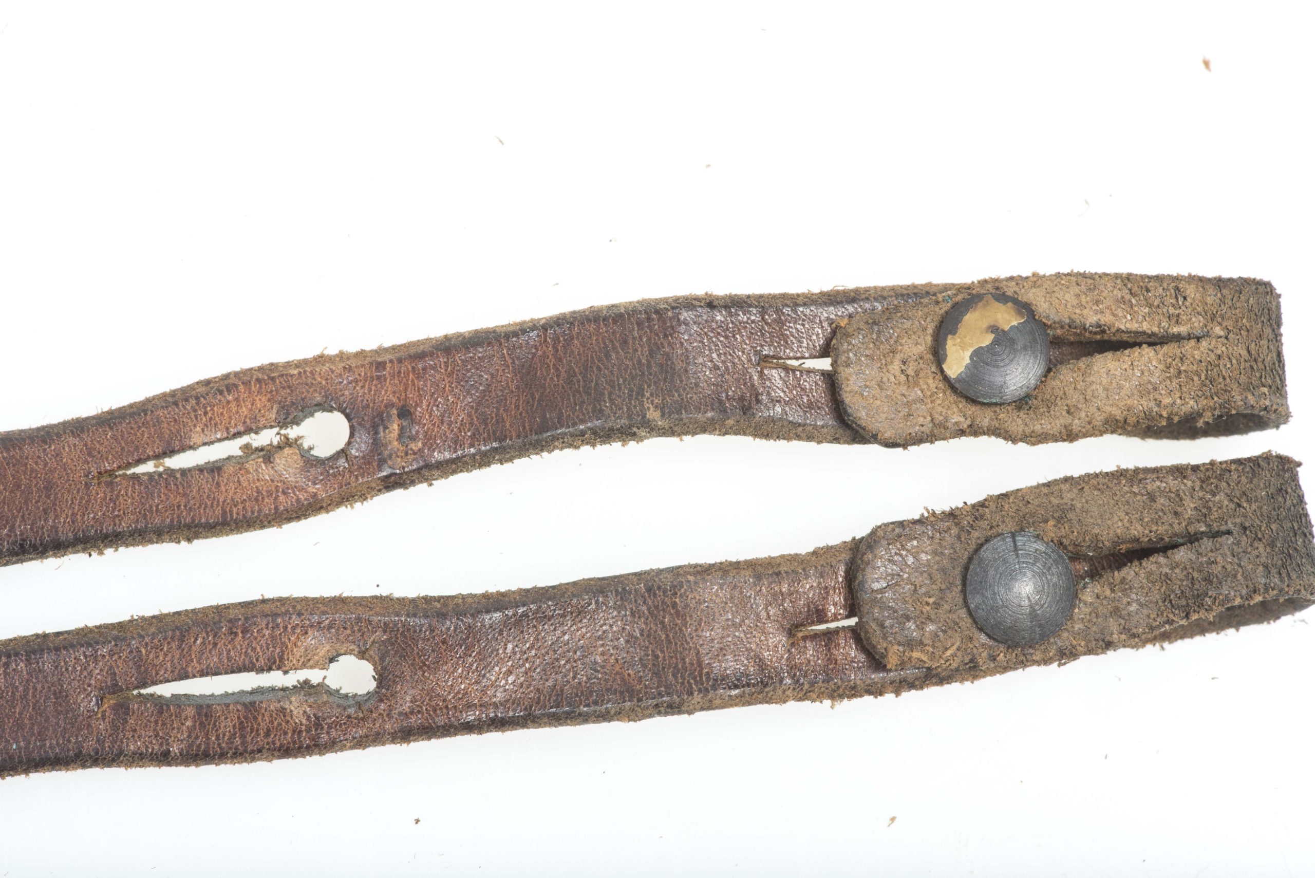 Textbook binocular or Dienstglas strap in very good condition. This is the specific example as issued with the bakelite binoculars made by cxn (Emil Busch, Rathenow), easily recognizable by the two extra holes!