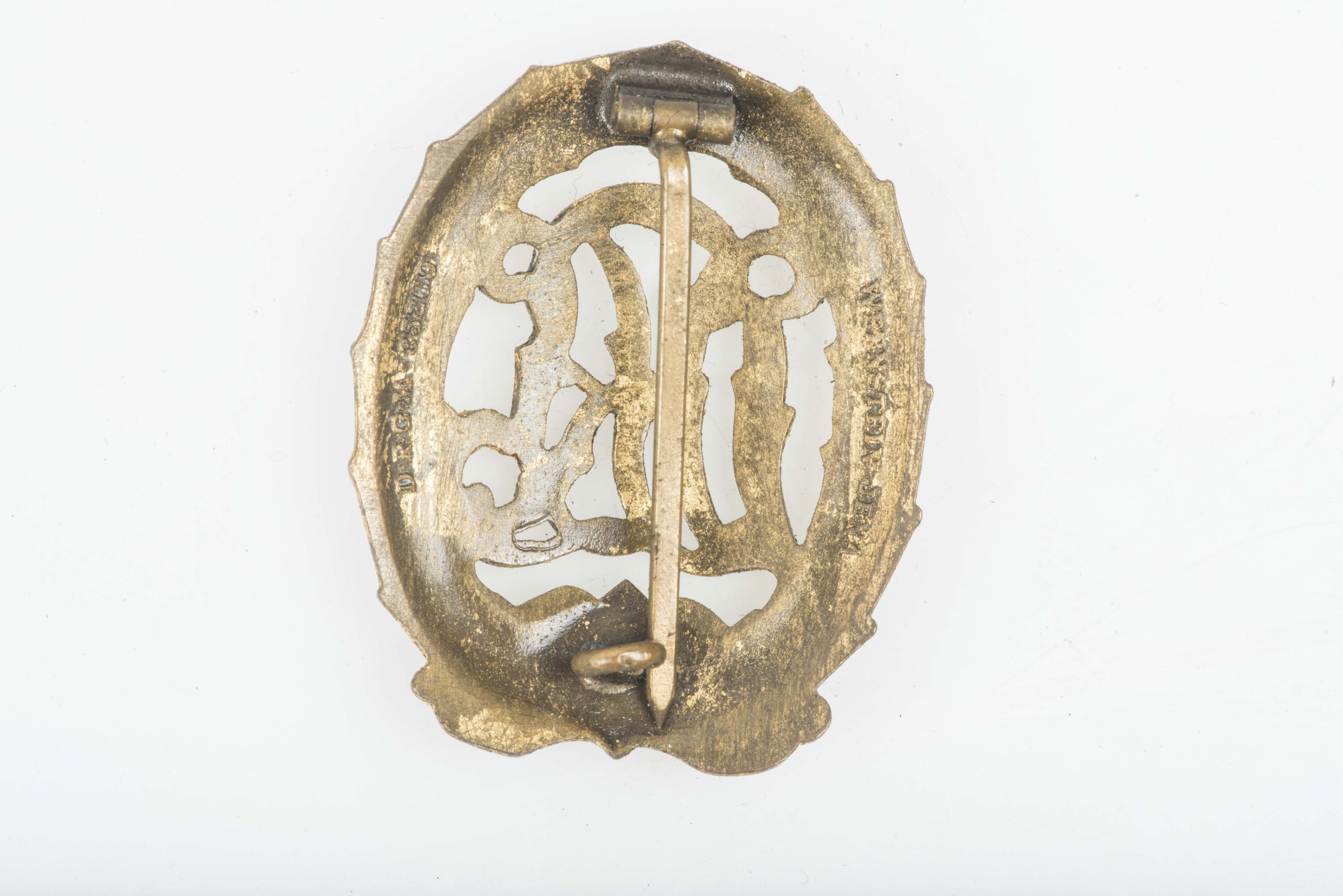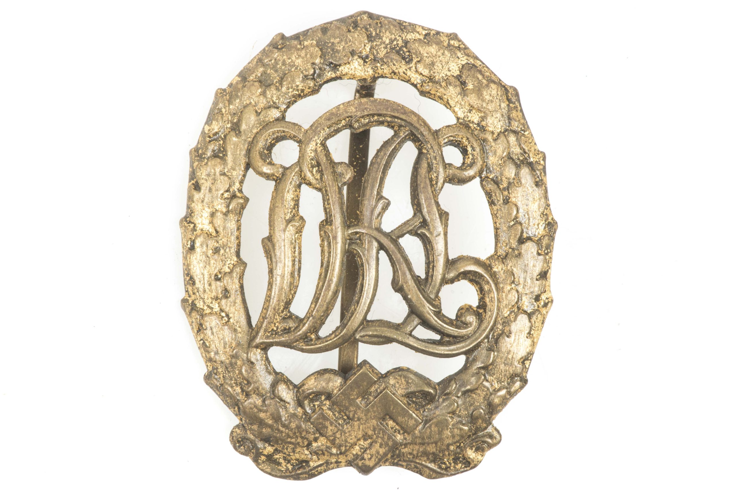DRL sport badge in gold marked Wernstein, Jena in excellent condition. This is not to be confused with a bronze variant but with a clear gold coloured finish. Hard to find!