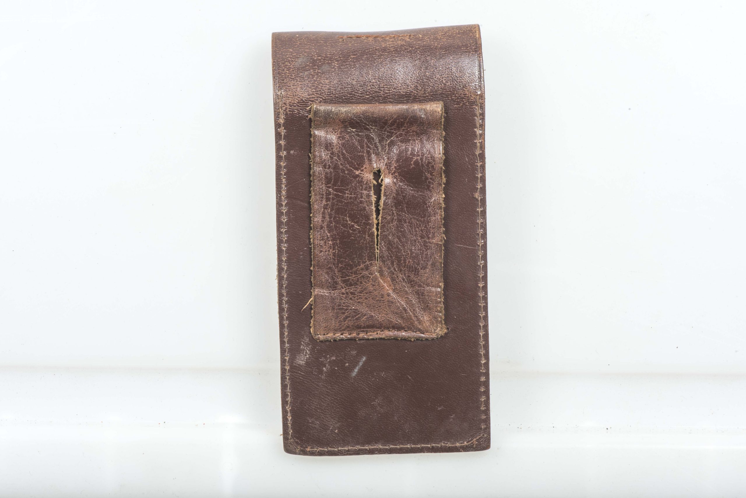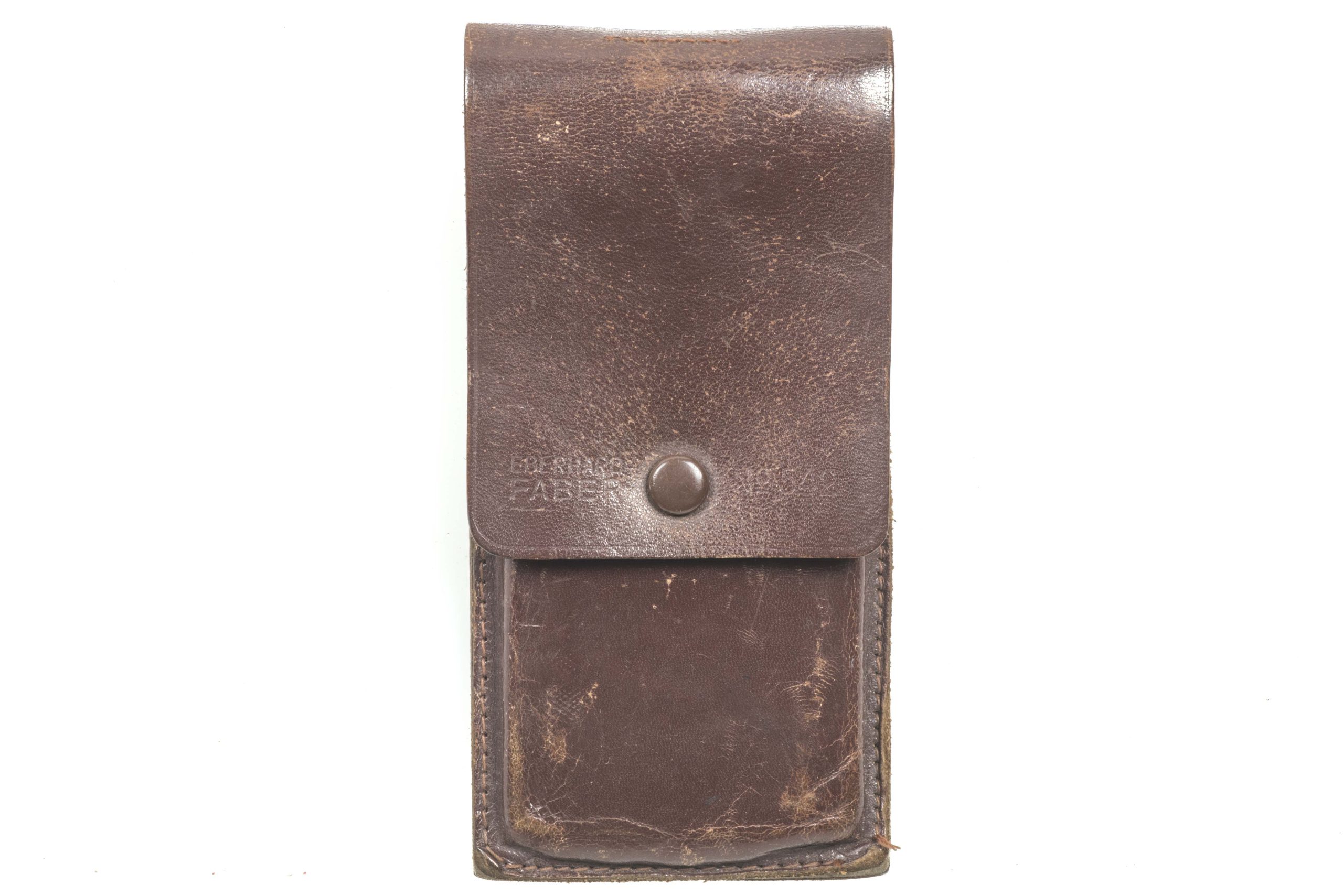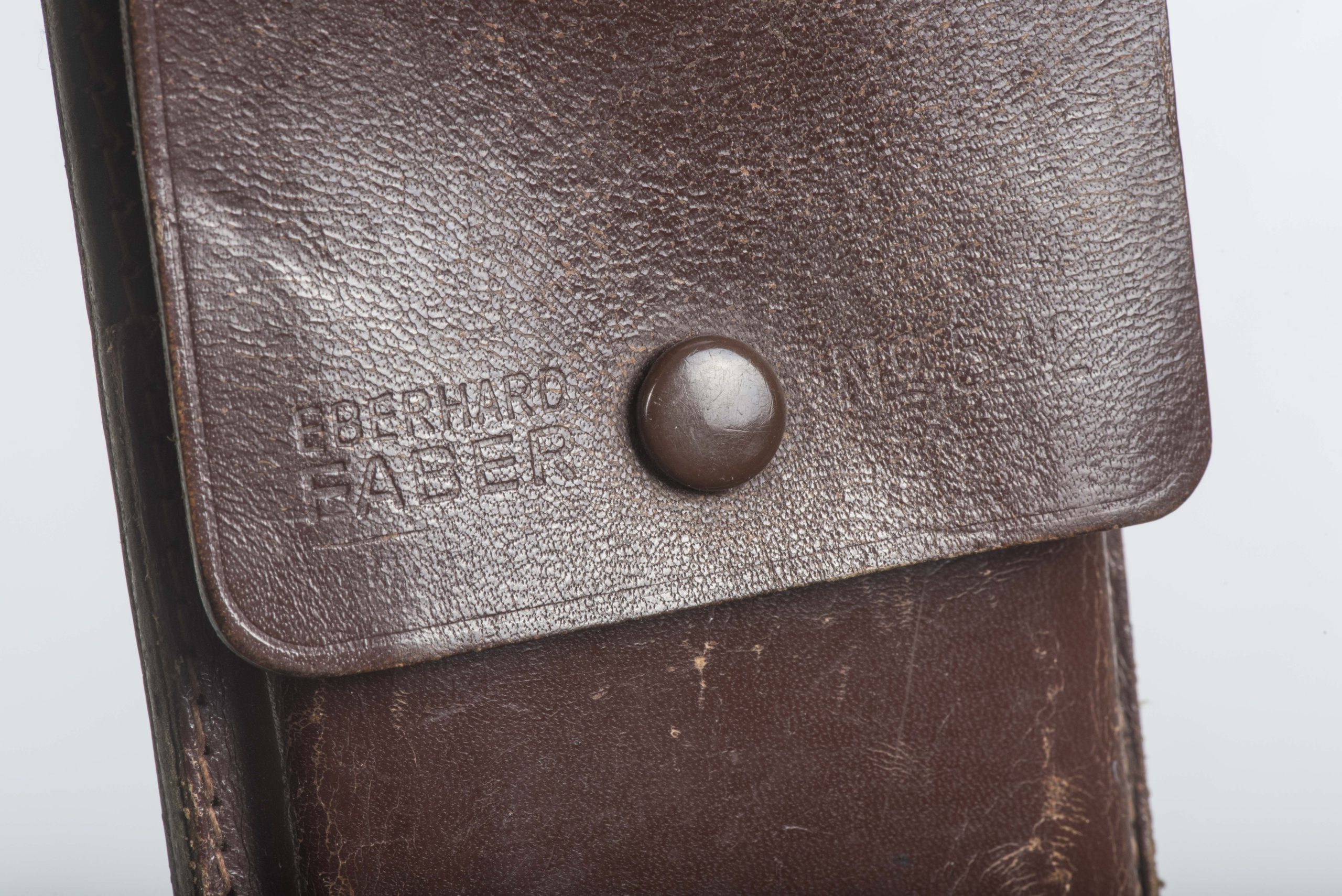 Very rare and extremely scarce Eberhard Faber Taktik-Etui Nr. 542 in very good, worn(!) condition. The pouch is empty but still features all of its internal dividers which are sadly deformed. The pouch is in overall great condition and the belt loop shows wear which would suggest that this is a worn example, which is rarer to encounter than a mint example!