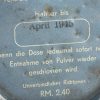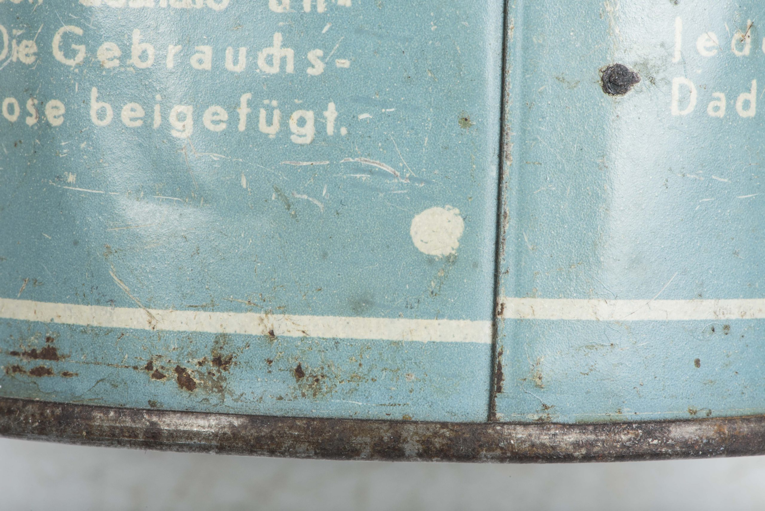 This canister is a period example produced prior to 1945. It is important for me to explain that these in no way have anything to do with the elsewhere offered ‘Edelweiss’ toilet paper rolls which are in fact modern fantasy items. Every 6 of these canisters are slightly different in height, colour and print. This is a great indication of the authenticity because a modern copy would be fully identical in all forms. You will get the pictured example which was produced in 1943 or 1944, which in this case, still retains its original contents as far as I can judge. I have found 6 of these canisters in good condition and I think I will not find more. Hard to find original ration item with a great and iconic image!