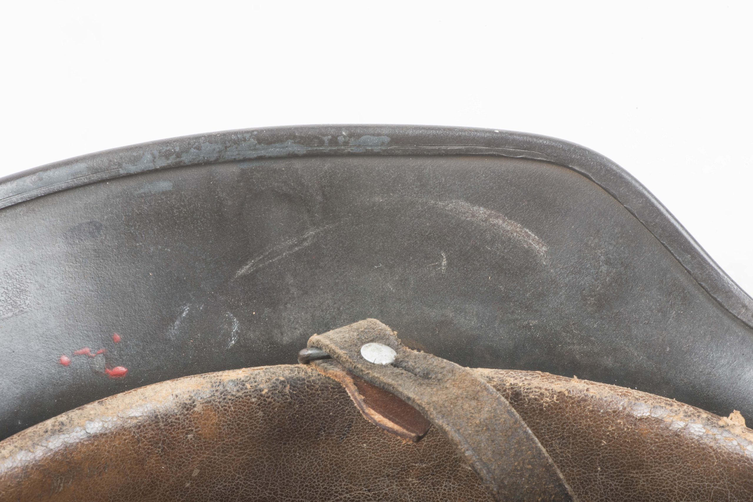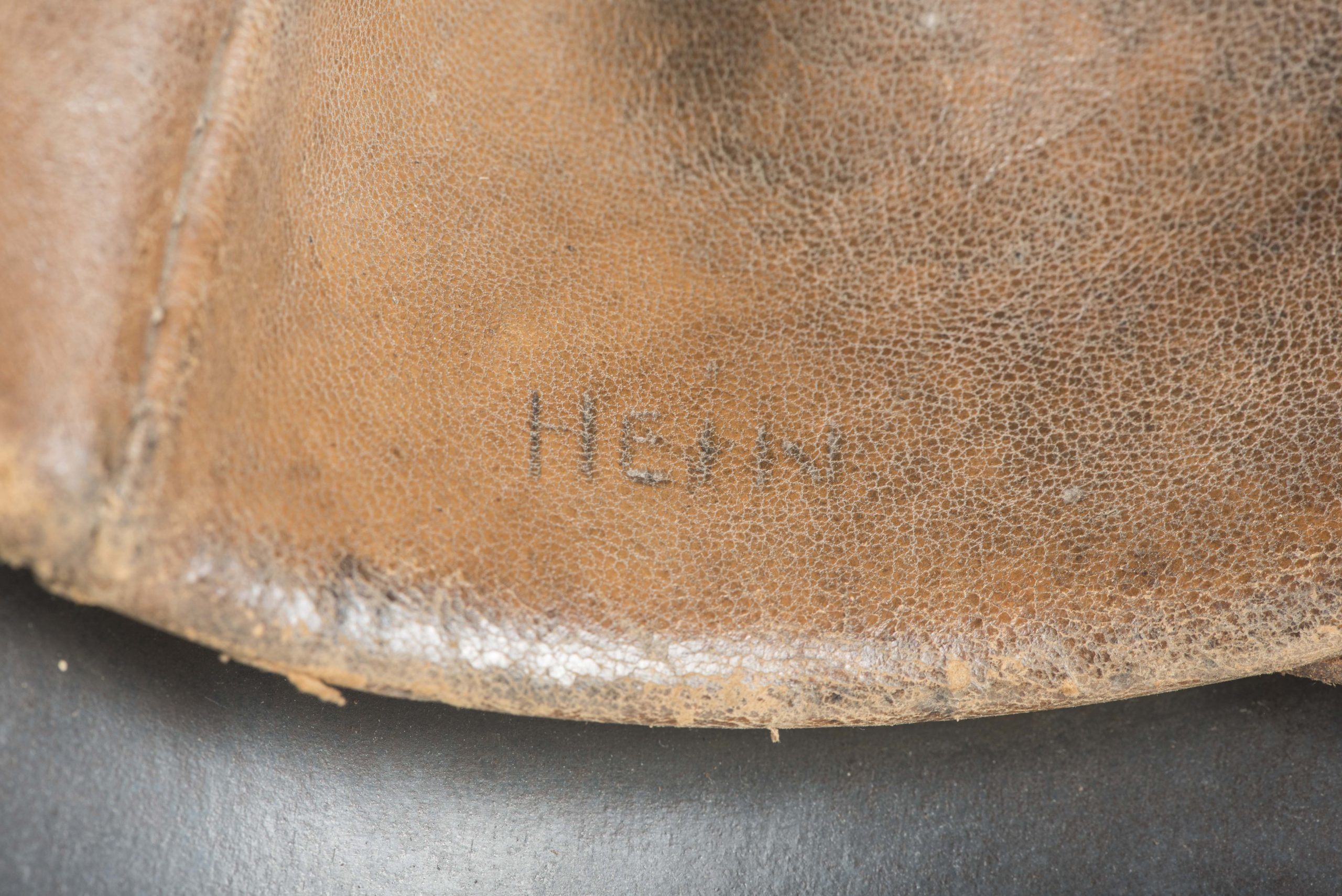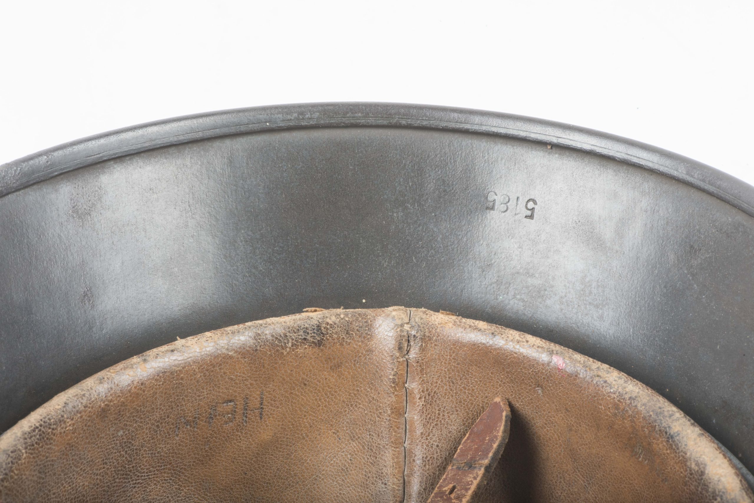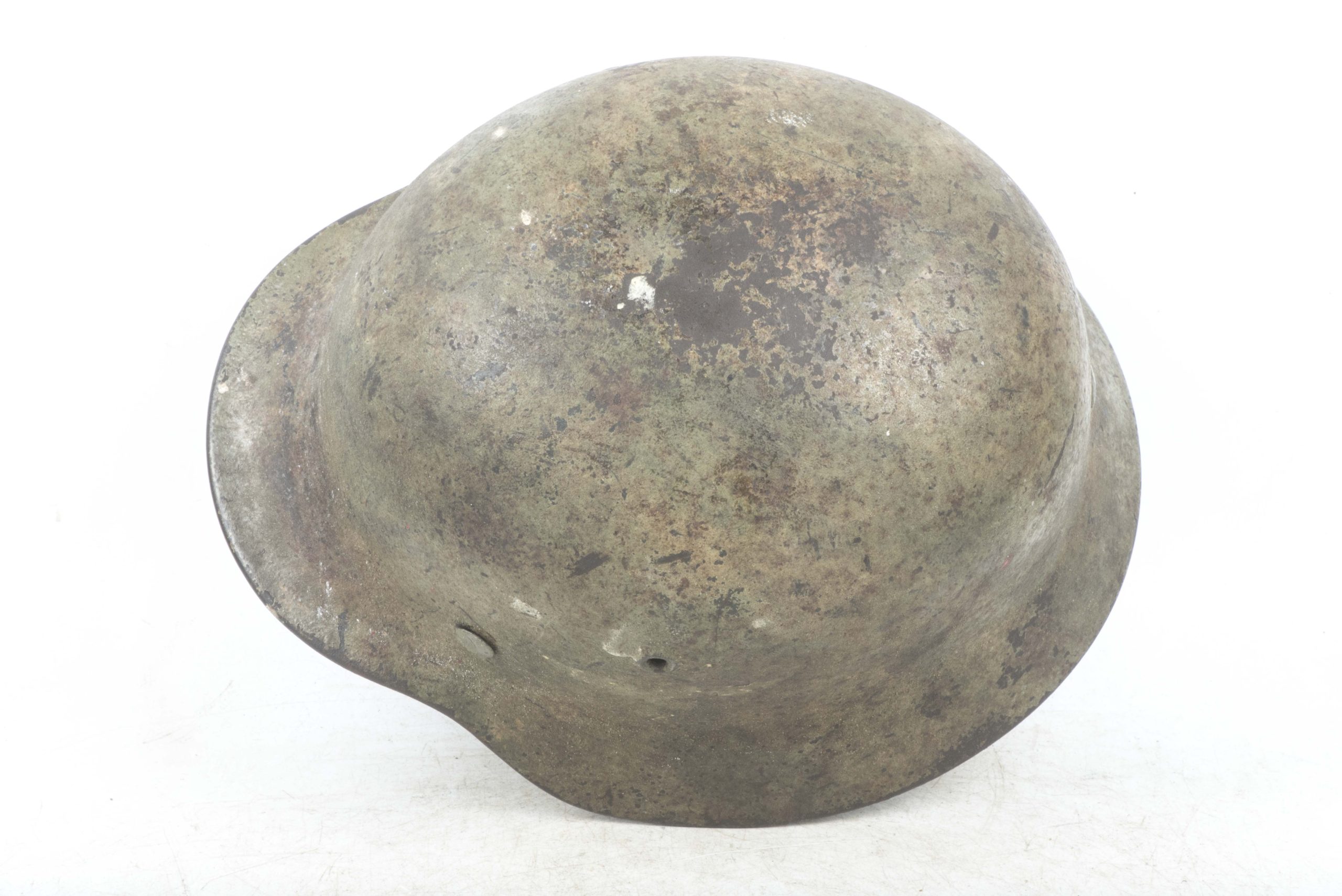 ET64 M40 Luftwaffe helmet in textured and spray painted two tone camouflage. The helmet is marked ET64 indicating production by Eisenhuttenwerke Thale. The helmet is in excellent condition retaining its factory installed liner named Hein. Further there is a painted name inside the dome of the helmet. The helmet retains up to 95% of its period applied camouflage paint finish. The Luftwaffe decal is clearly visible trough the camouflage paint, still in its original position without post war alteration. The helmet is a beautiful and textbook example in a typical camouflage paint pattern that would be very hard to upgrade!