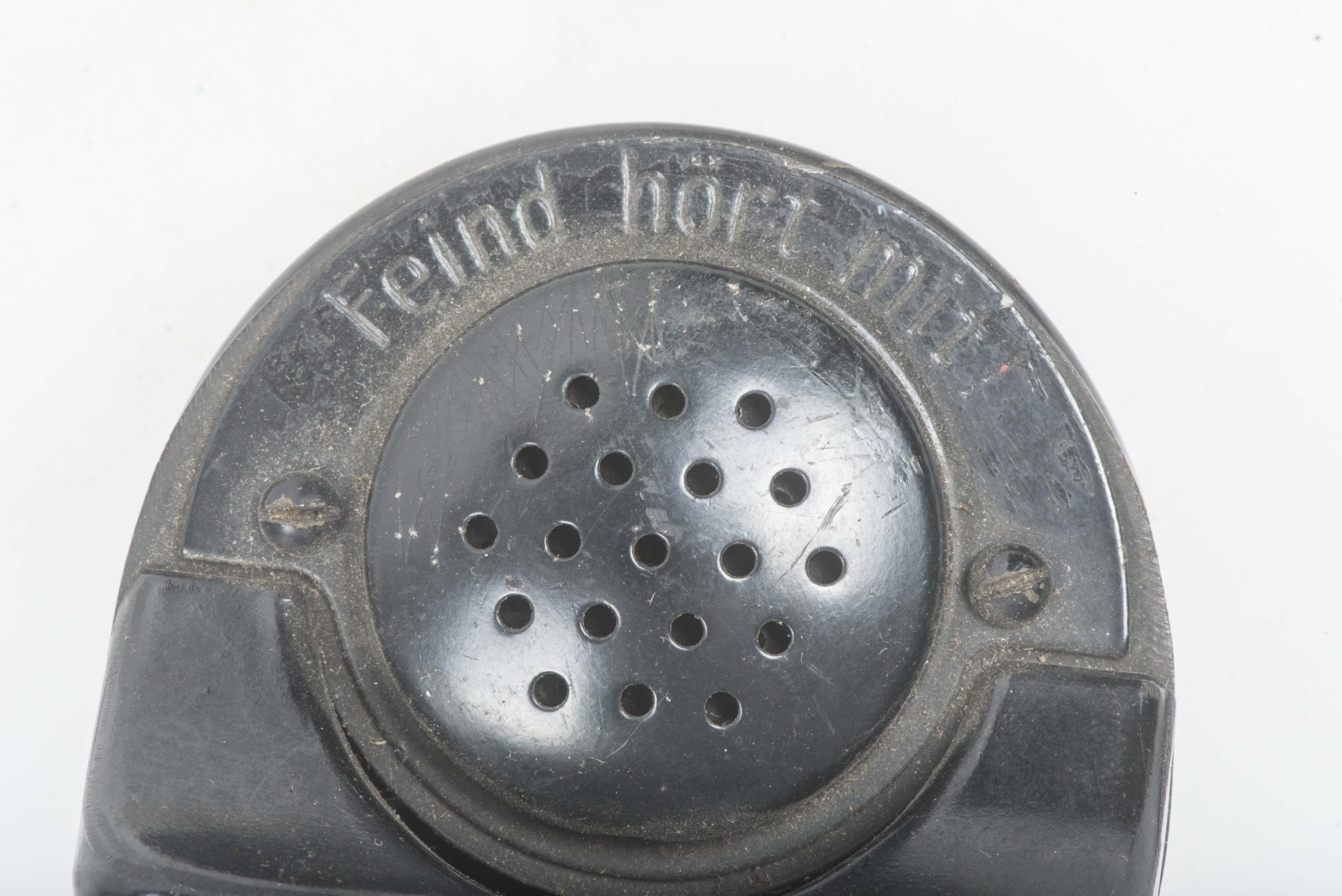 Hand held microphone Feind Hört Mit in good condition. The microphone retains its original cable, two pronged plug and functional button. Nice example!