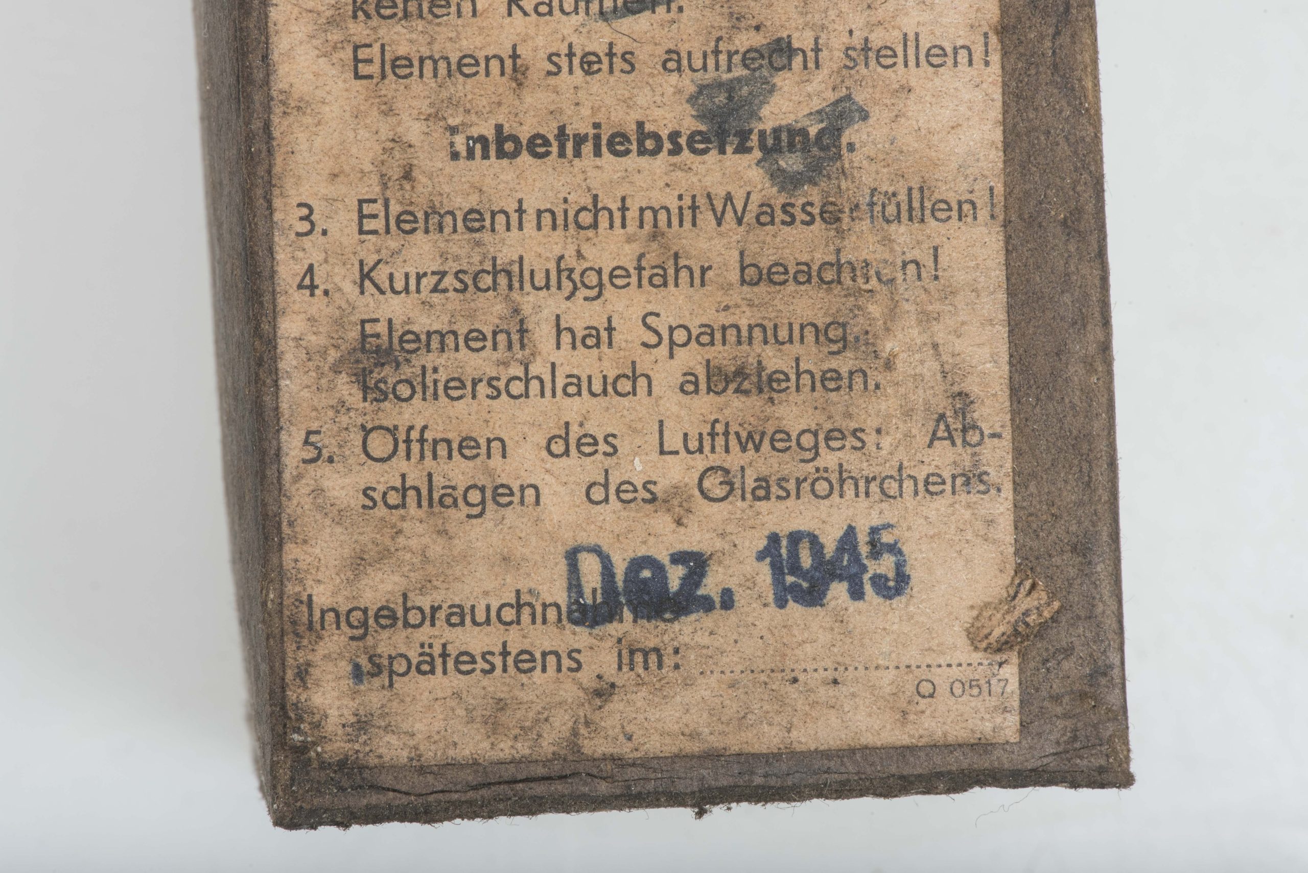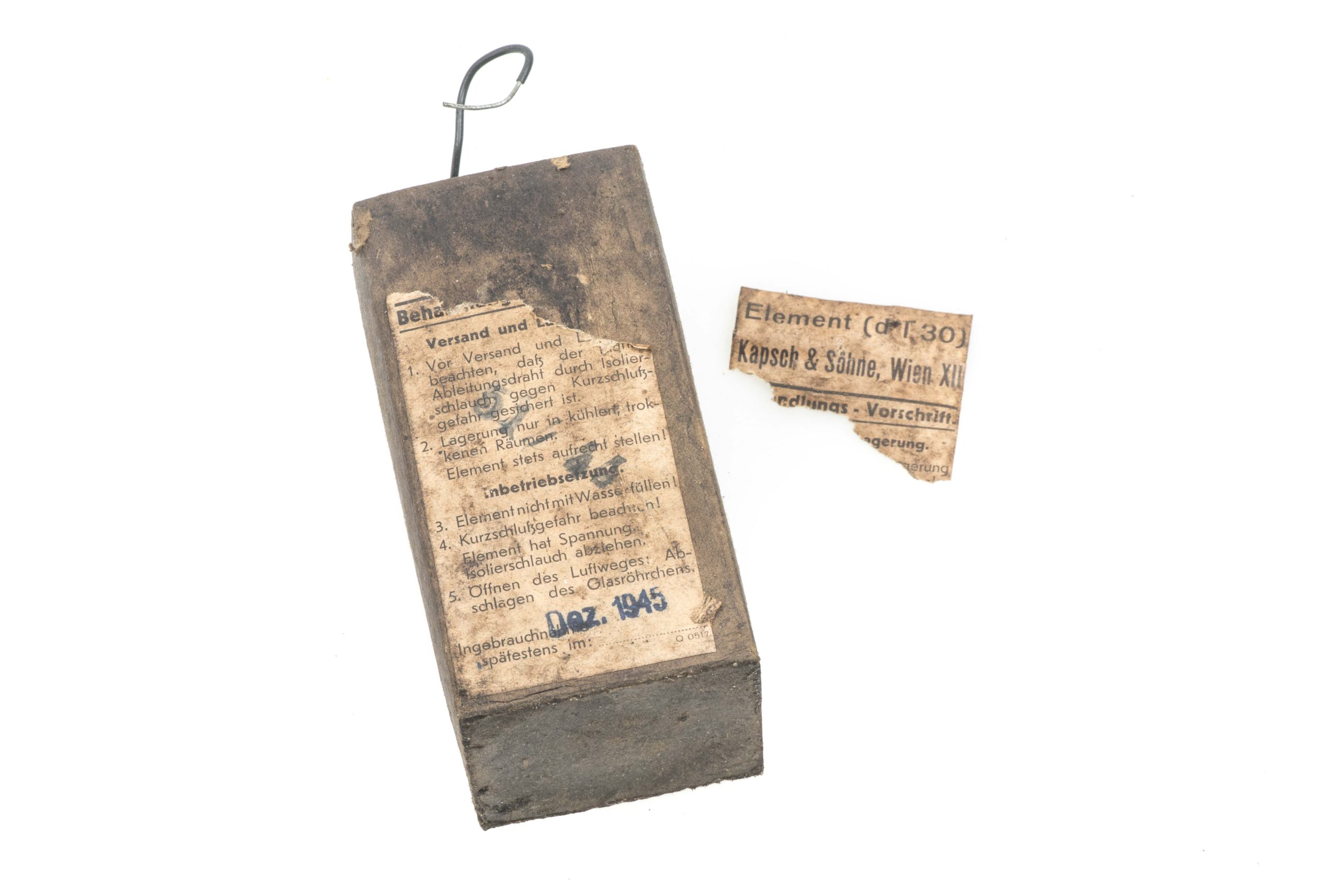 Textbook battery Element D T30 made by Kapsch & Söhne Wien intended for the FF33 field telephone. The battery is in good used condition and is the rarest accessory of the Wehrmacht field phones.