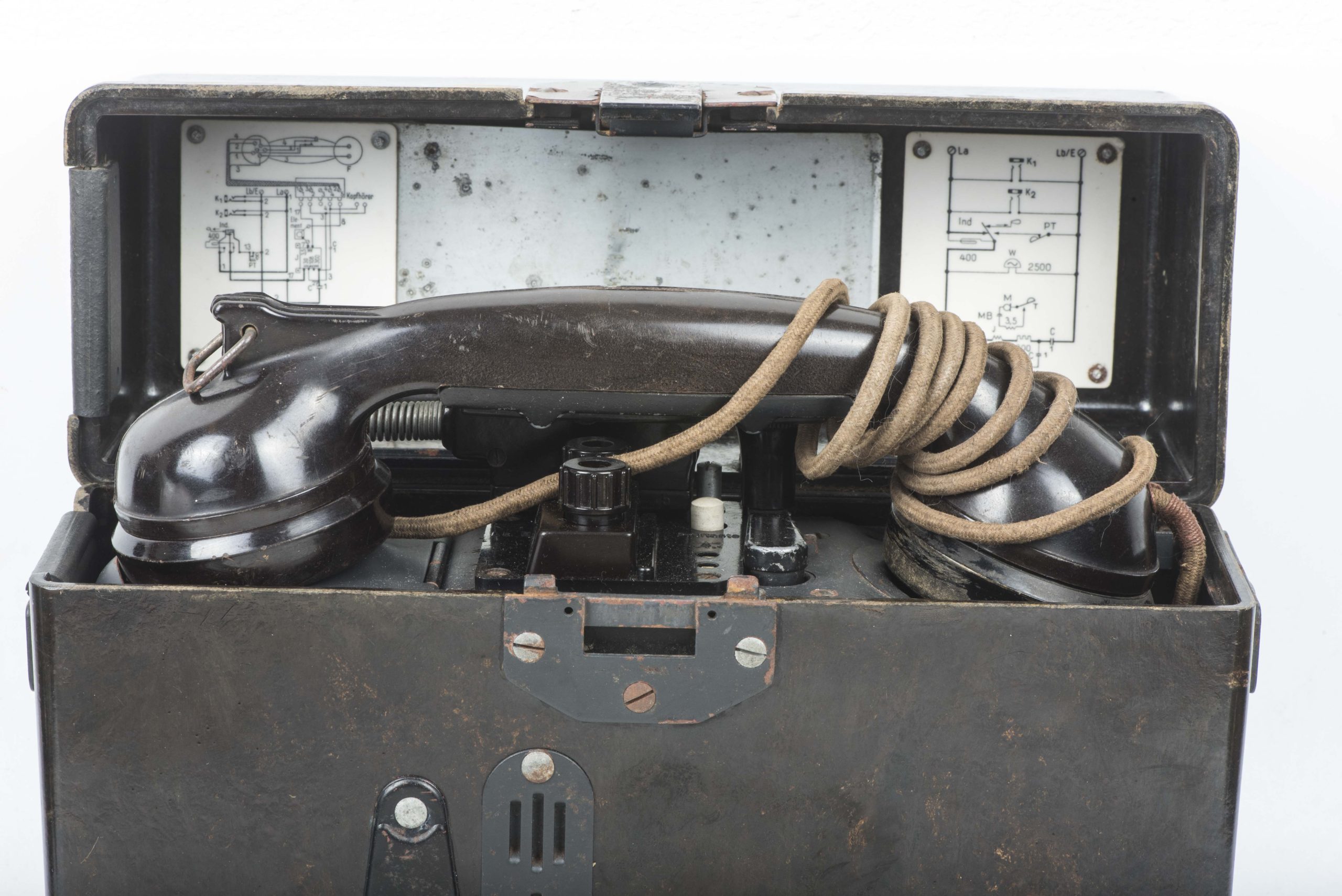 FF33 field phone with blue hardware dated 1943 in good used condition. Nice late war variant with blue details!