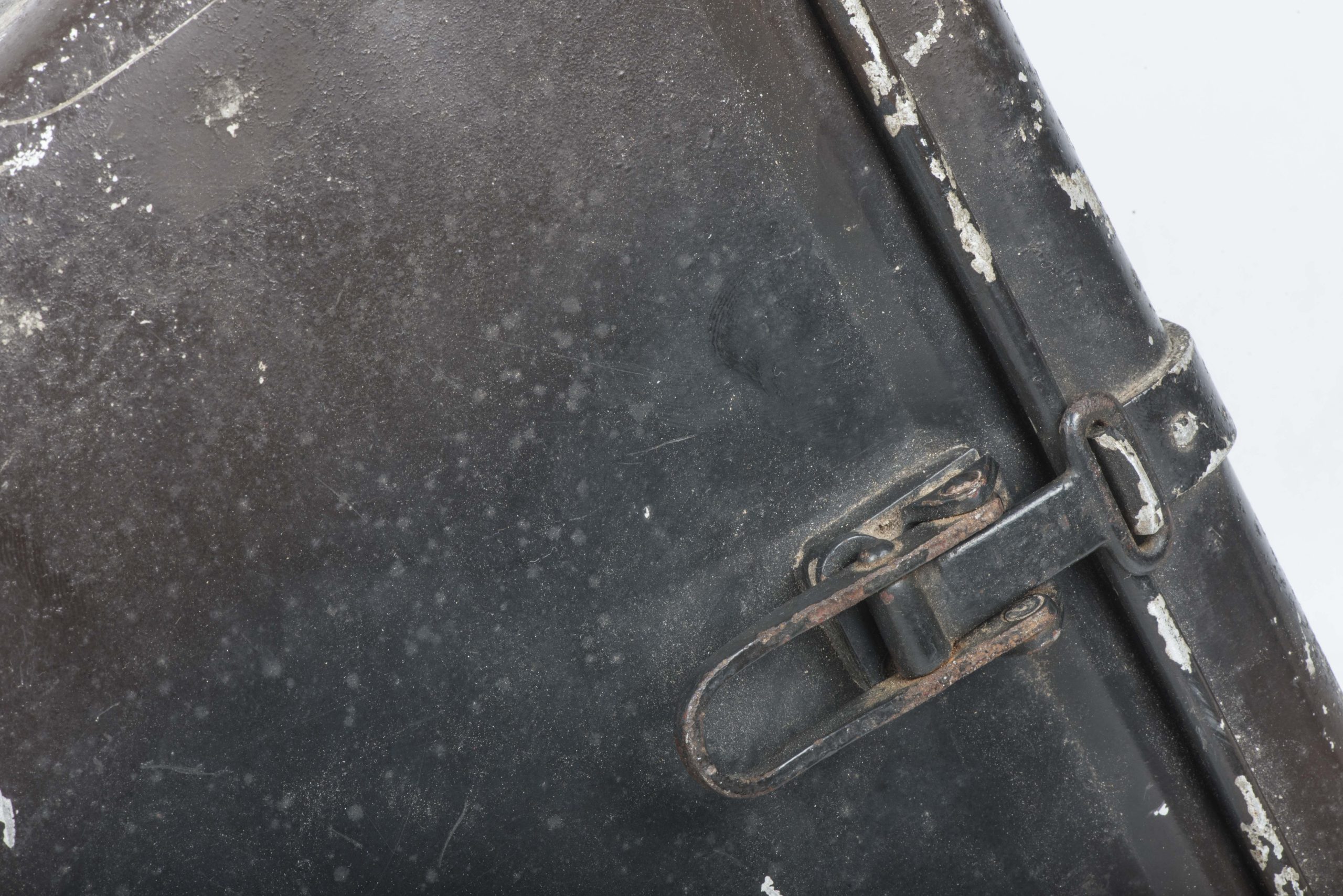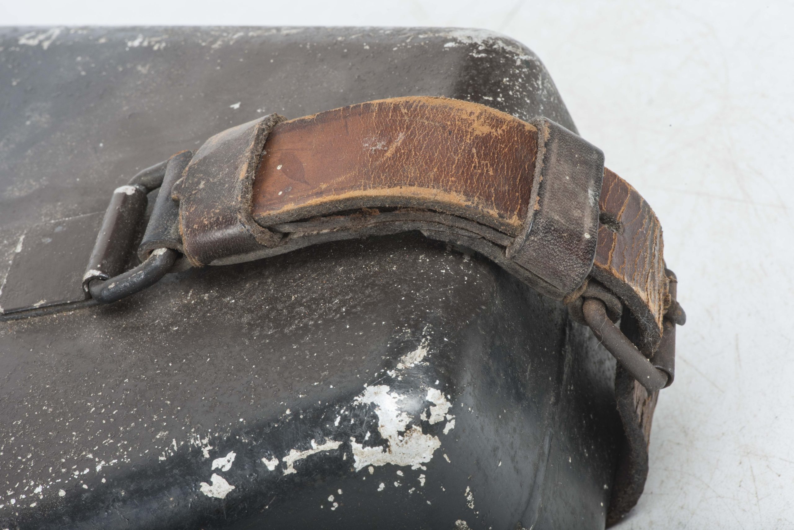 Rare original storage box for the shoulder supports for the rangefinder EM36 as used by Flak troops in very good condition. The storage box features original factory applied two tone camouflage. This example is nicely marked with a late war 3 letter code fwq which is a still unidentified manufacturer. Very nice factory two tone camouflaged example!