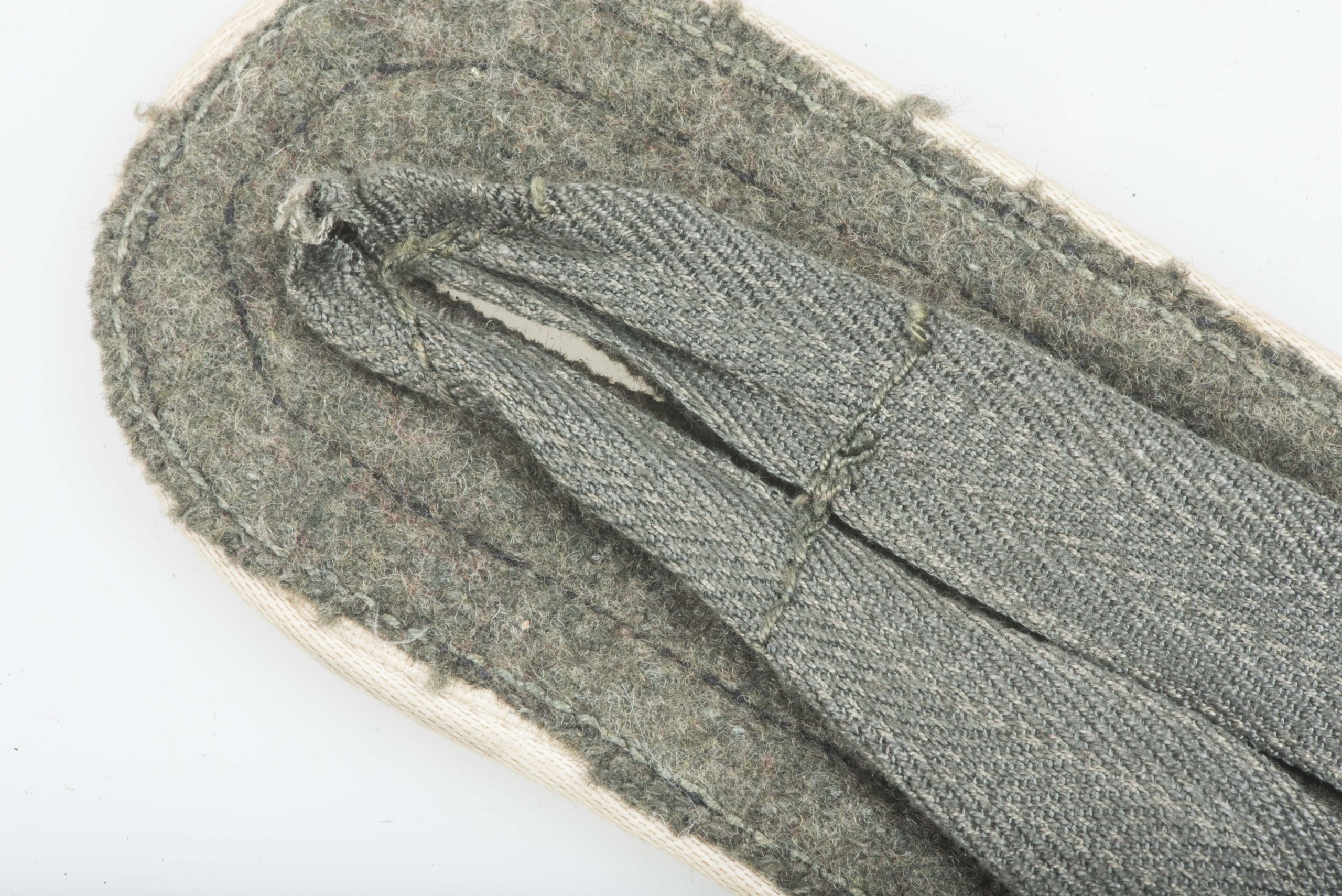 Matching late war Heer shoulderstraps for a Unteroffizier in Panzerdivision Grossdeutschland. This is the last pattern of straps with simplified tongues. The straps are in excellent condition with the typical GD embroidery. The Unteroffizierstresse used was traditionally used by the Luftwaffe but can be seen used with Heer and Waffen-SS units later in the war. This is a beautiful and textbook late war set that would be very hard to upgrade!