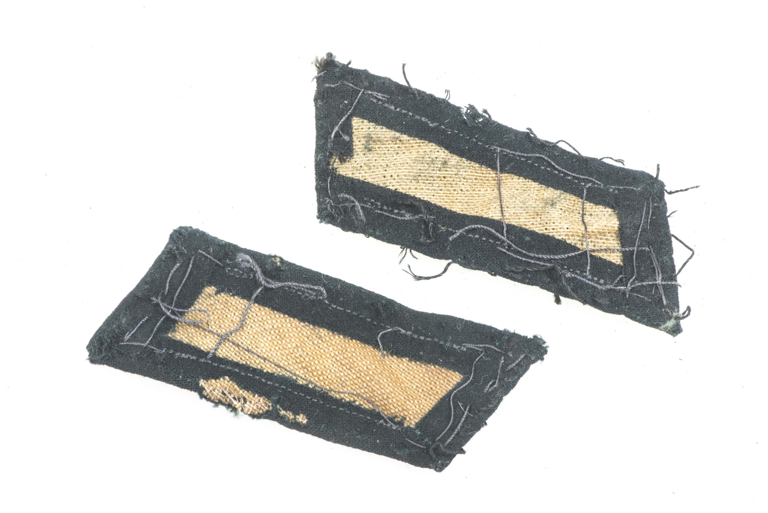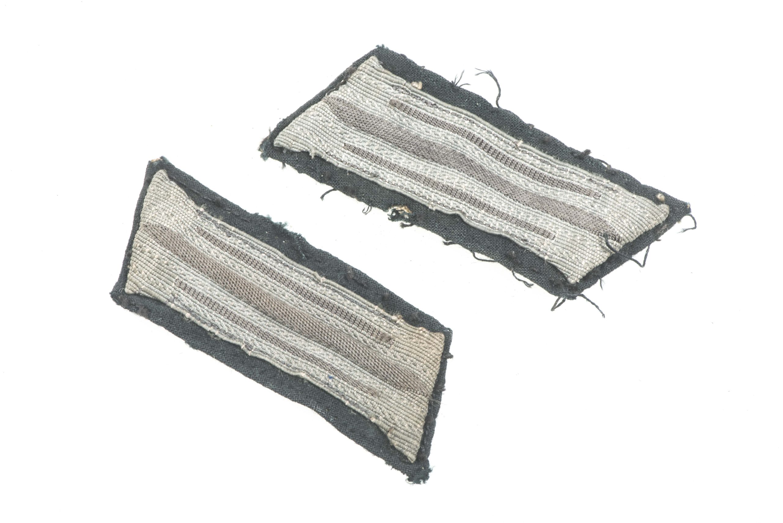 A nice and matching pair of Heer EM/NCO collar tabs or Einheitslitzen in uniform removed condition. These were typical examples sewn onto the collar by tailors and or soldiers who wanted a smarter appearance of their field blouse or by those that did not have the needed talent to sew these on correctly. A nice pair in good condition that would easily restore to a M40 and later field blouses.
