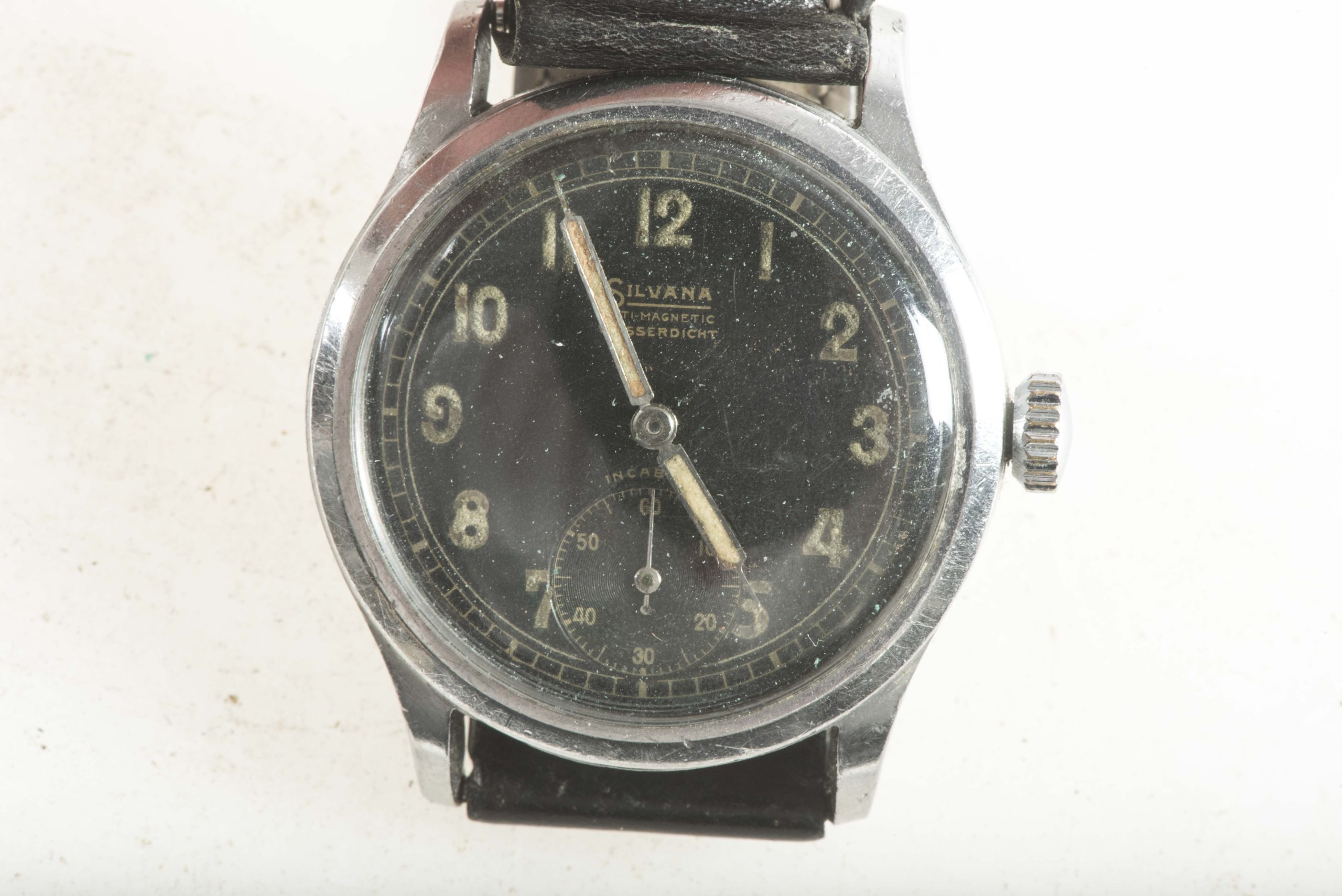 Heer issue Dienstuhr by Silvana #312395 13201 in used condition. It spools and runs the time but I have not exactly checked how accurately. The strap is new but a typical example as was issued on these watches!