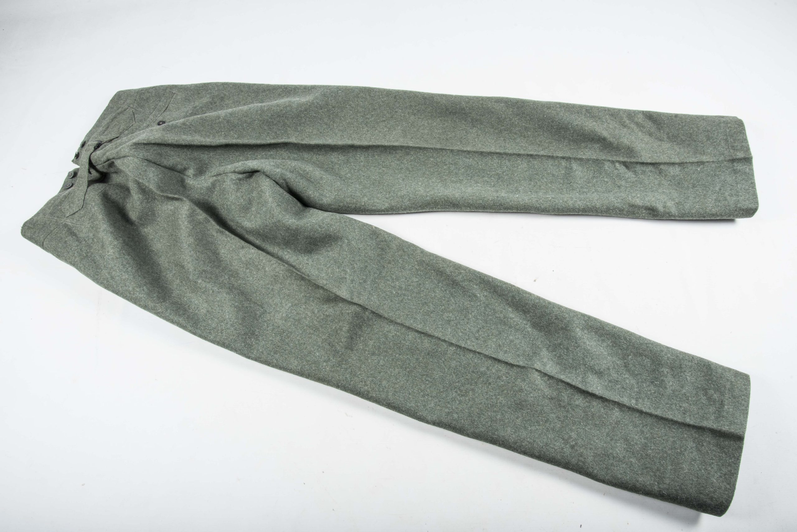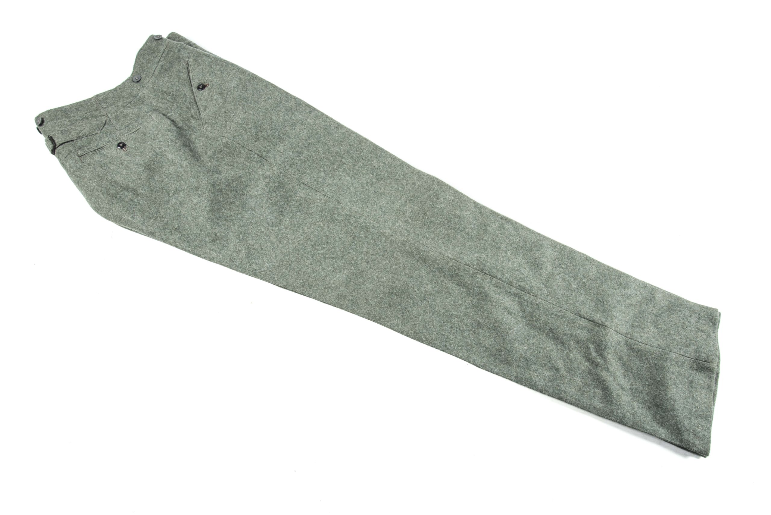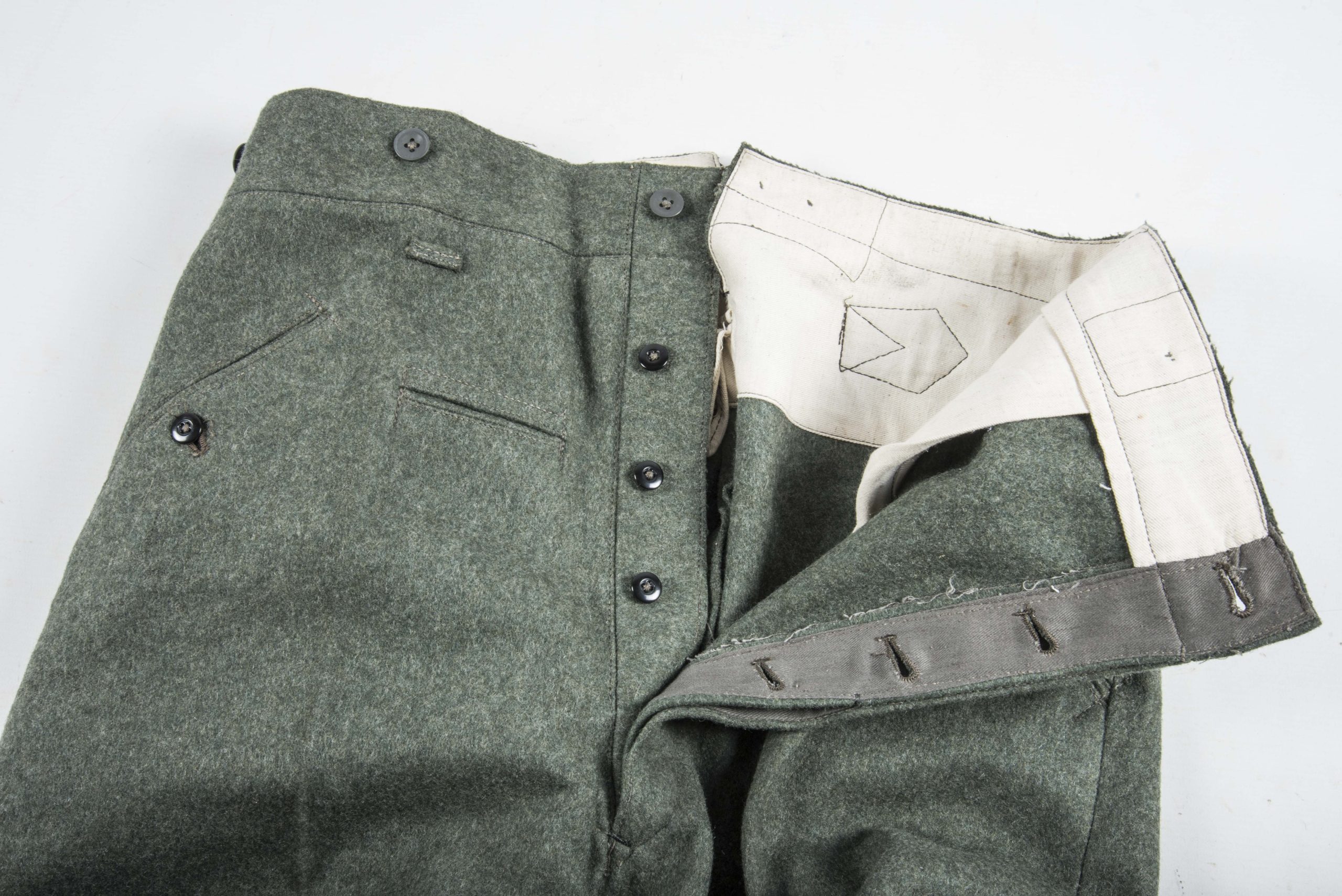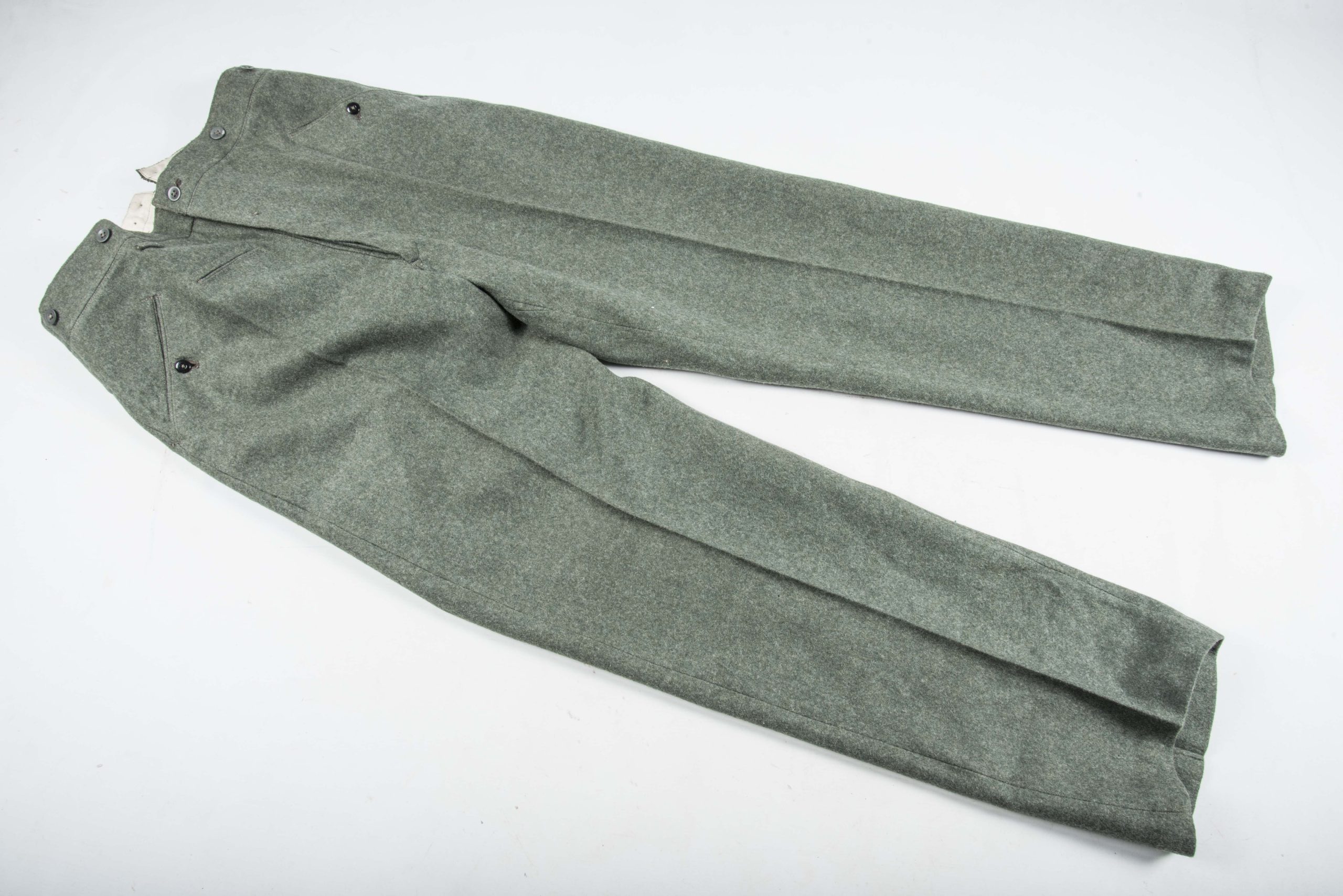 Heer M40 field trousers marked Max Müller Nürnberg F41 in unissued condition. The trousers are a nice large size fitting most modern mannequins. The wool retains virtually all of the nap and I can not find any issues that would bother me. Simply a perfect example!