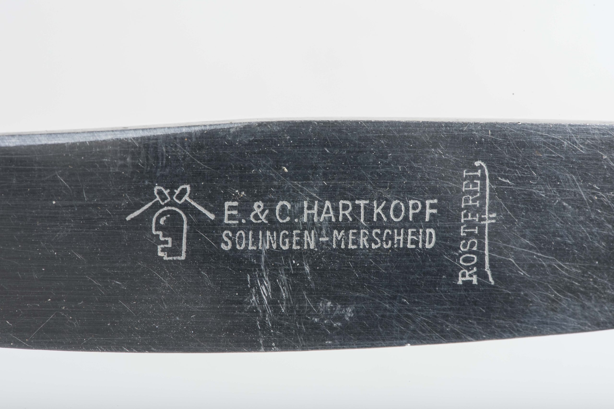 Heer table knife marked Offz.-Heim I.R. 105 in good condition. The knife is maker marked E&C Hartkopf Solingen-Merkscheid. The unit Infanterie Regiment 105 was a part of the 72- and 170 Infanteriedivision . Nice example in good condition!