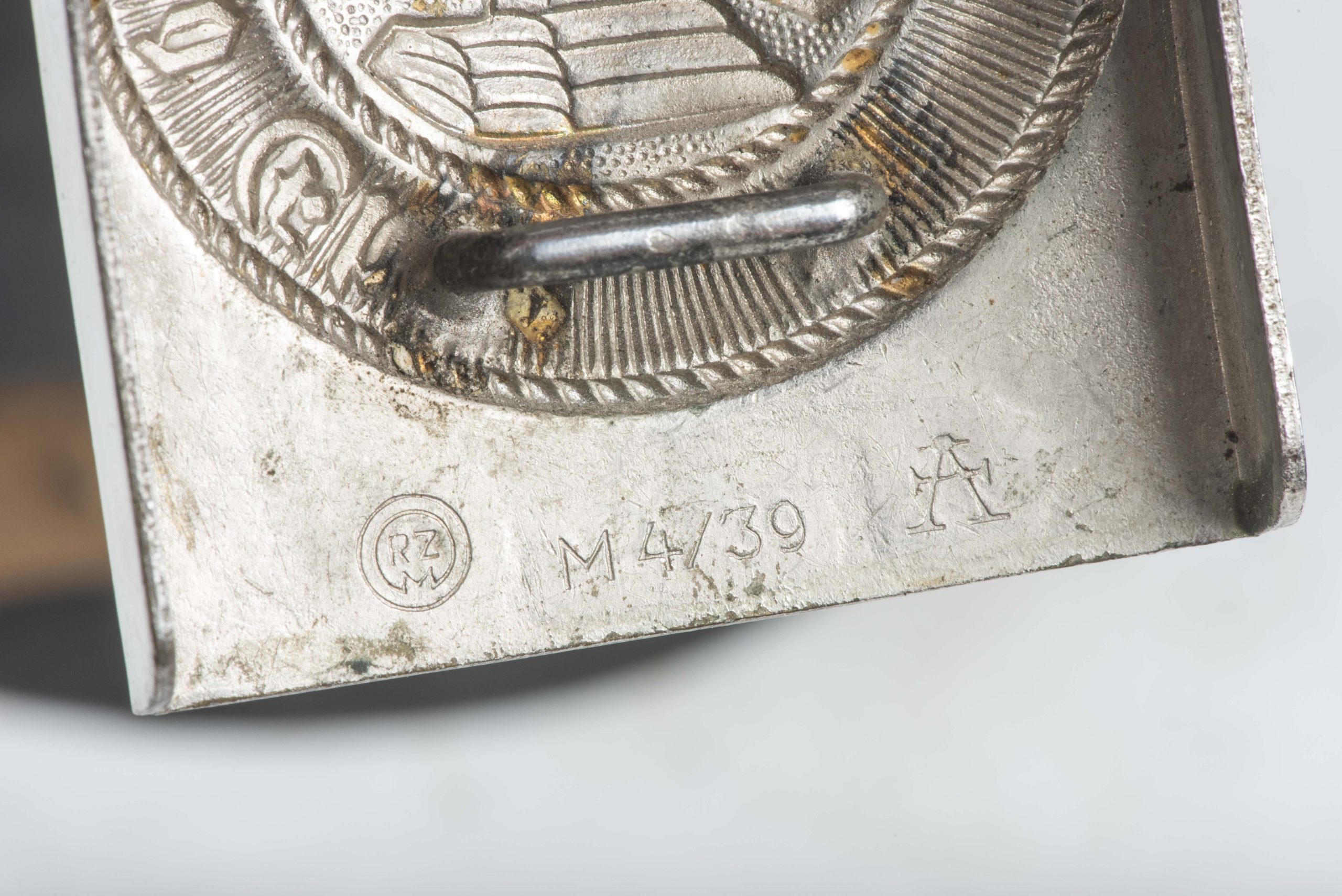 Excellent Hitlerjugend belt buckle marked M4/39 indicating production by Assmann & Sohne, it also features the typical Assman logo. The belt buckle is complete with its original leather belt. Nice and hard to find set in excellent, hard to upgrade condition!