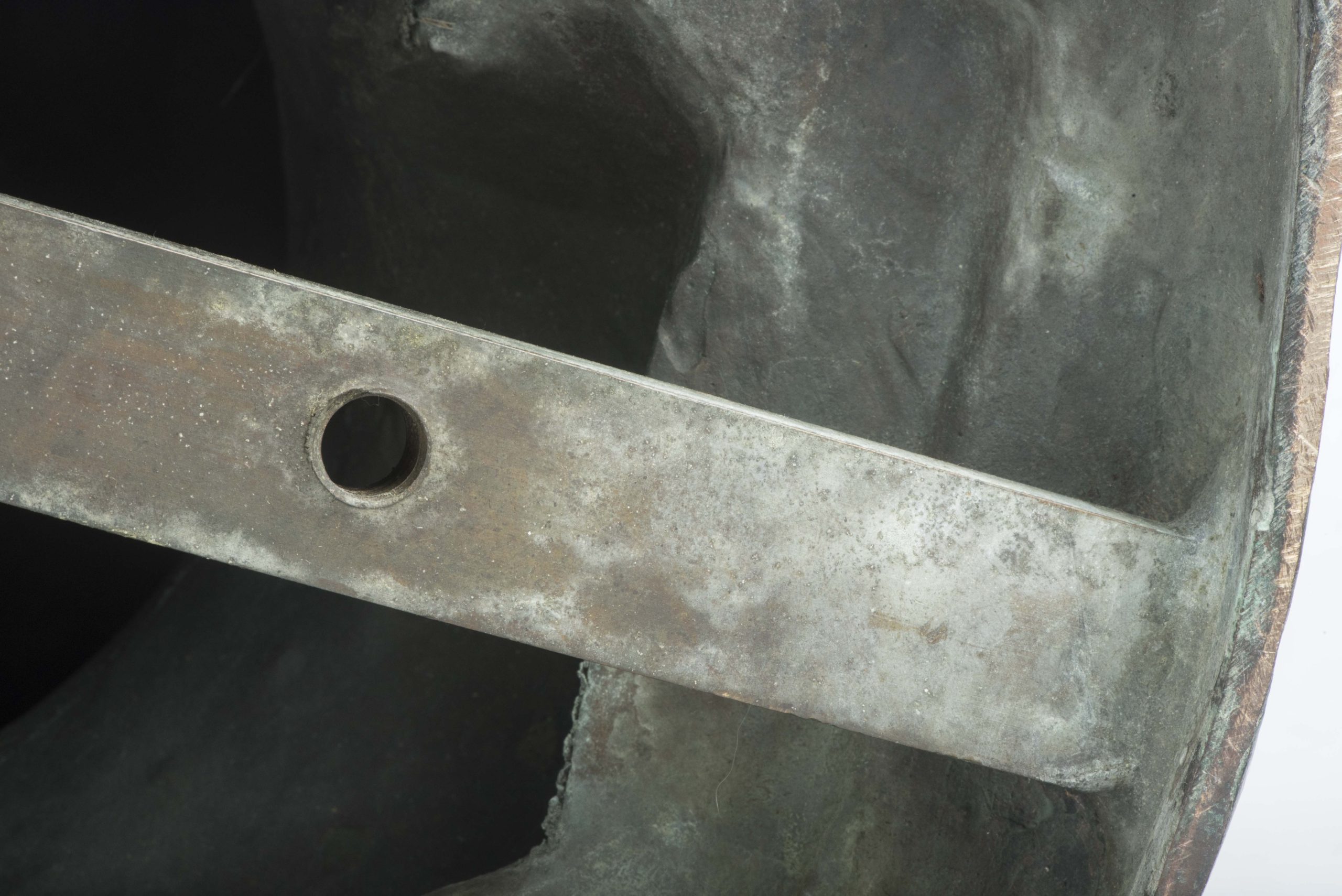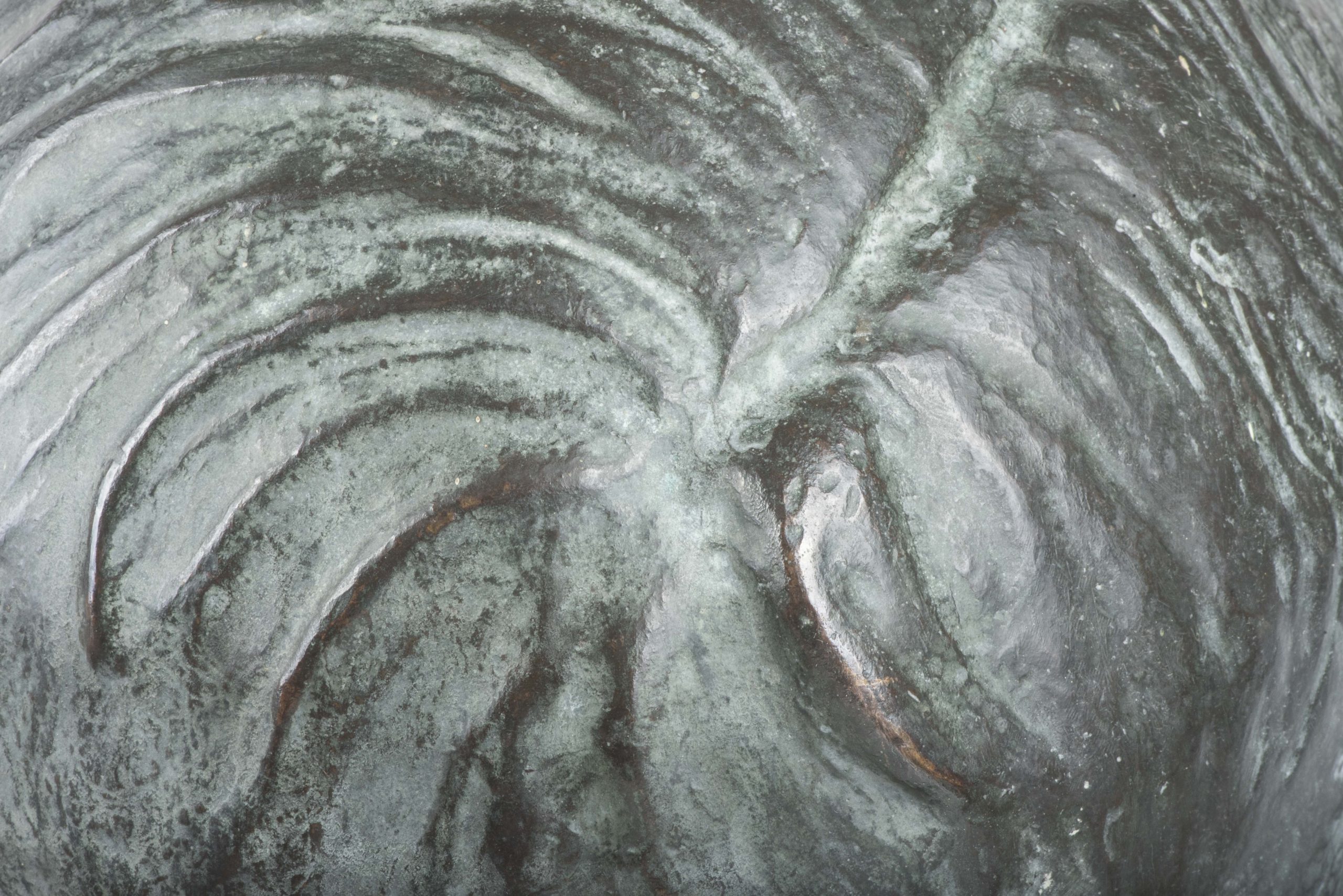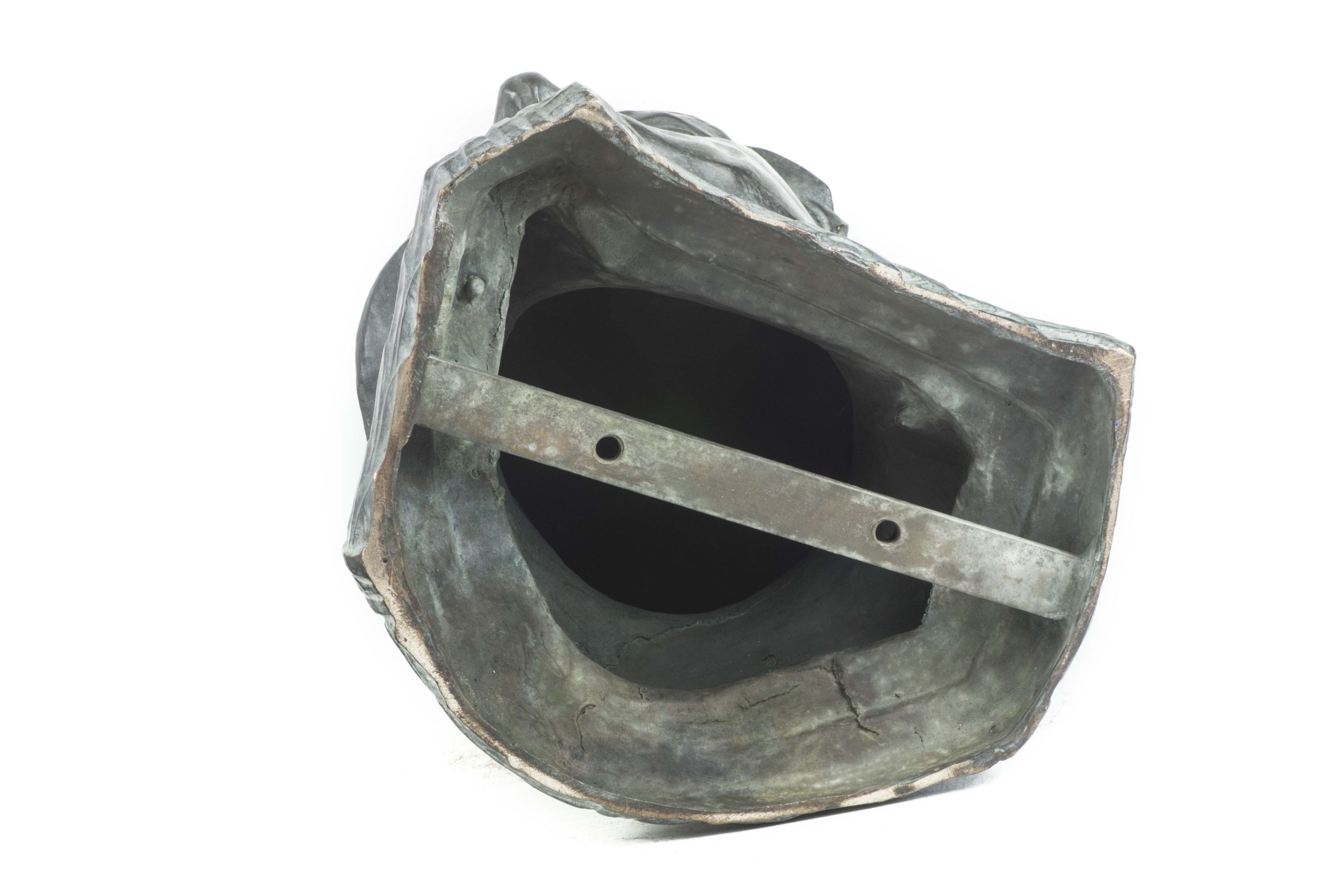 Impressive bronze cast of Adolf Hitler. The large bust is photographed next to a Infantry Assault badge to show the immense size of approximately twice life size at 45cm in height and 95cm in circumerence. The bust is in good, uncleaned condition. The bust has no marble base, but this could easily be added if desired. Unlike many busts this one features the full neck and shoulder portion and is positioned in a slight angle. The base is nicely adorned with leaf motifs. The bust was signed with FL which could possibly indicate the sculptor Ferdinand Liebermann but this is nót the usual manner of signing for this artist. The bust is a typical hollow cast example by WMF or Württembergische Metallwaren Fabrik in Geislingen The bust is a extra rare, large example that is very hard to obtain!