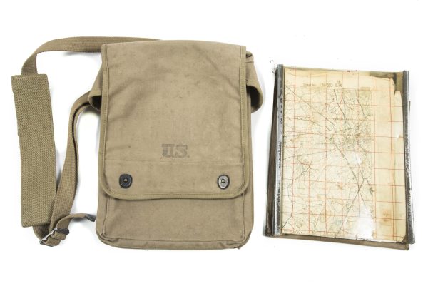 ID’ed US M1938 mapcase with board and Valognes/St. Pierre-Eglise