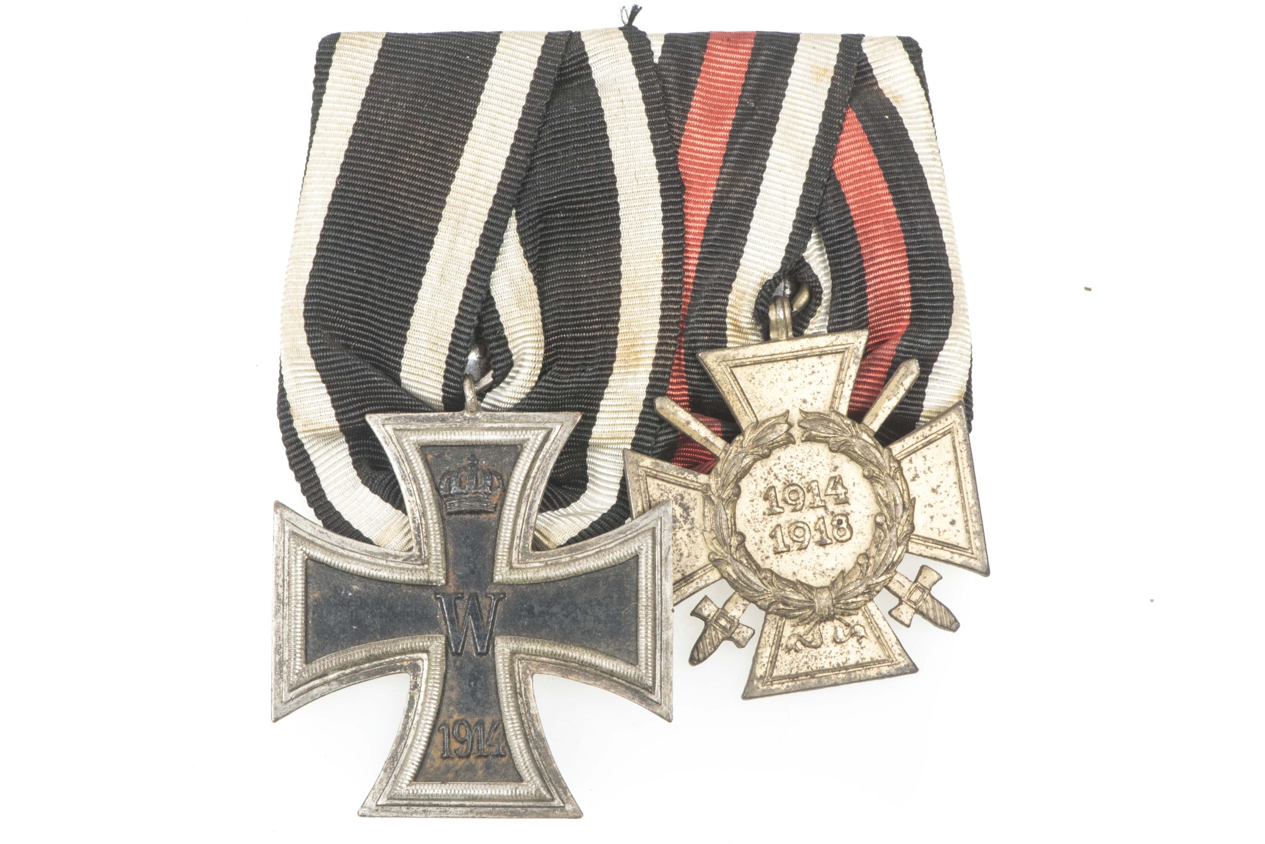 Imperial medal bar with Eisernes Kreuz II klasse and Frontkämpfer Kreuz in good used condition.