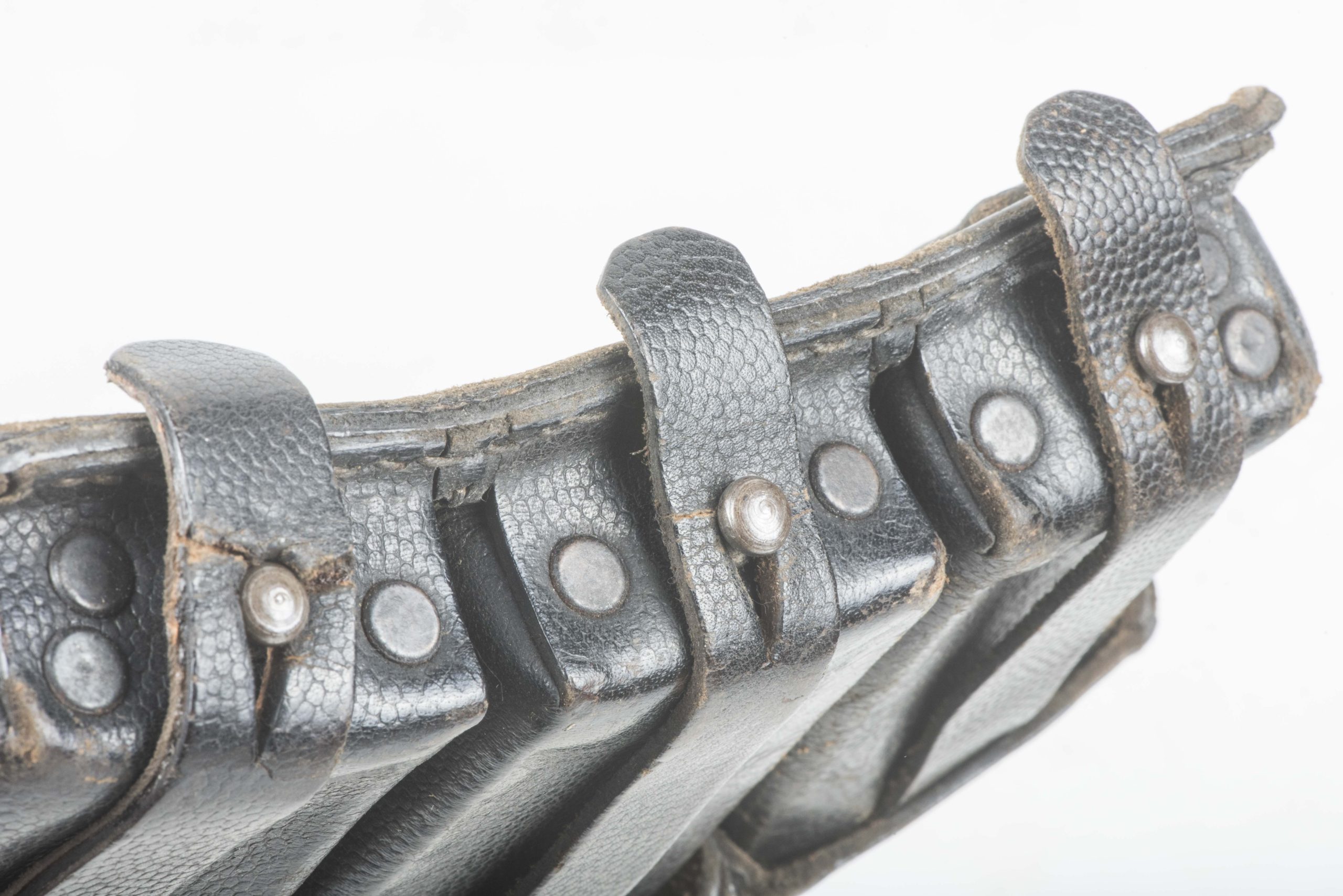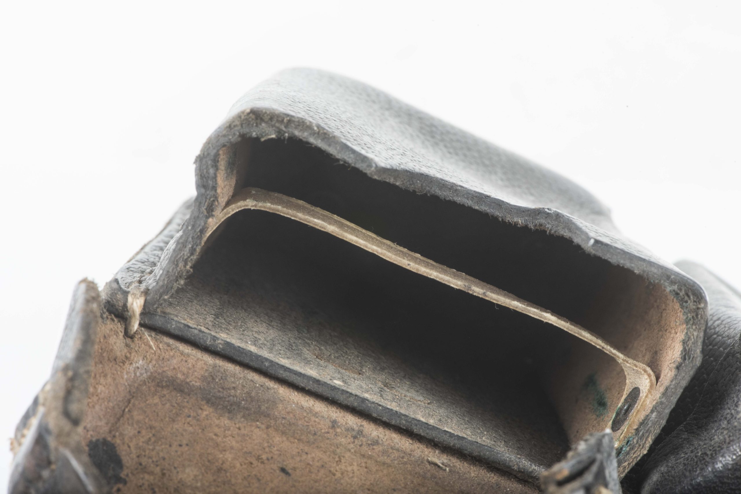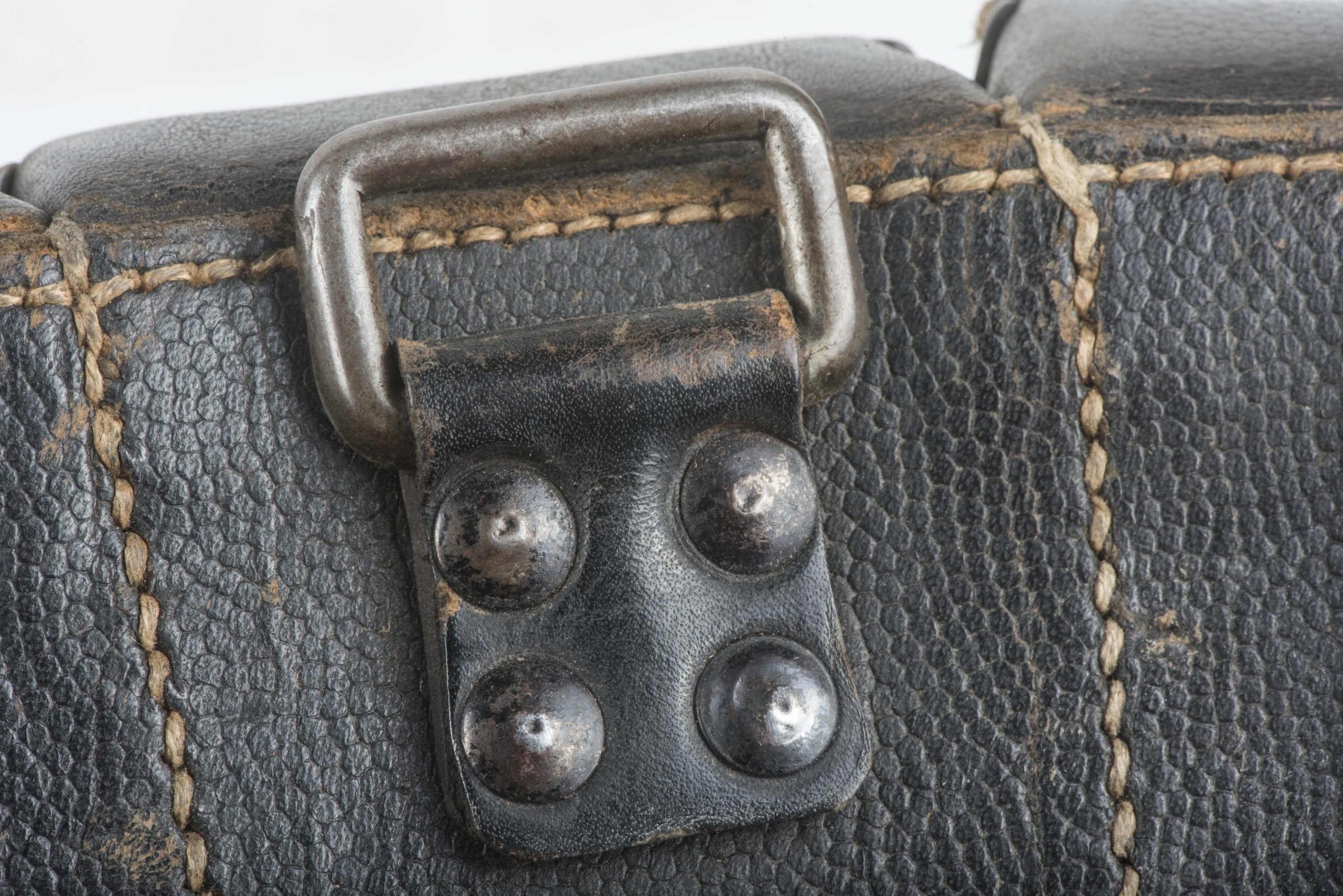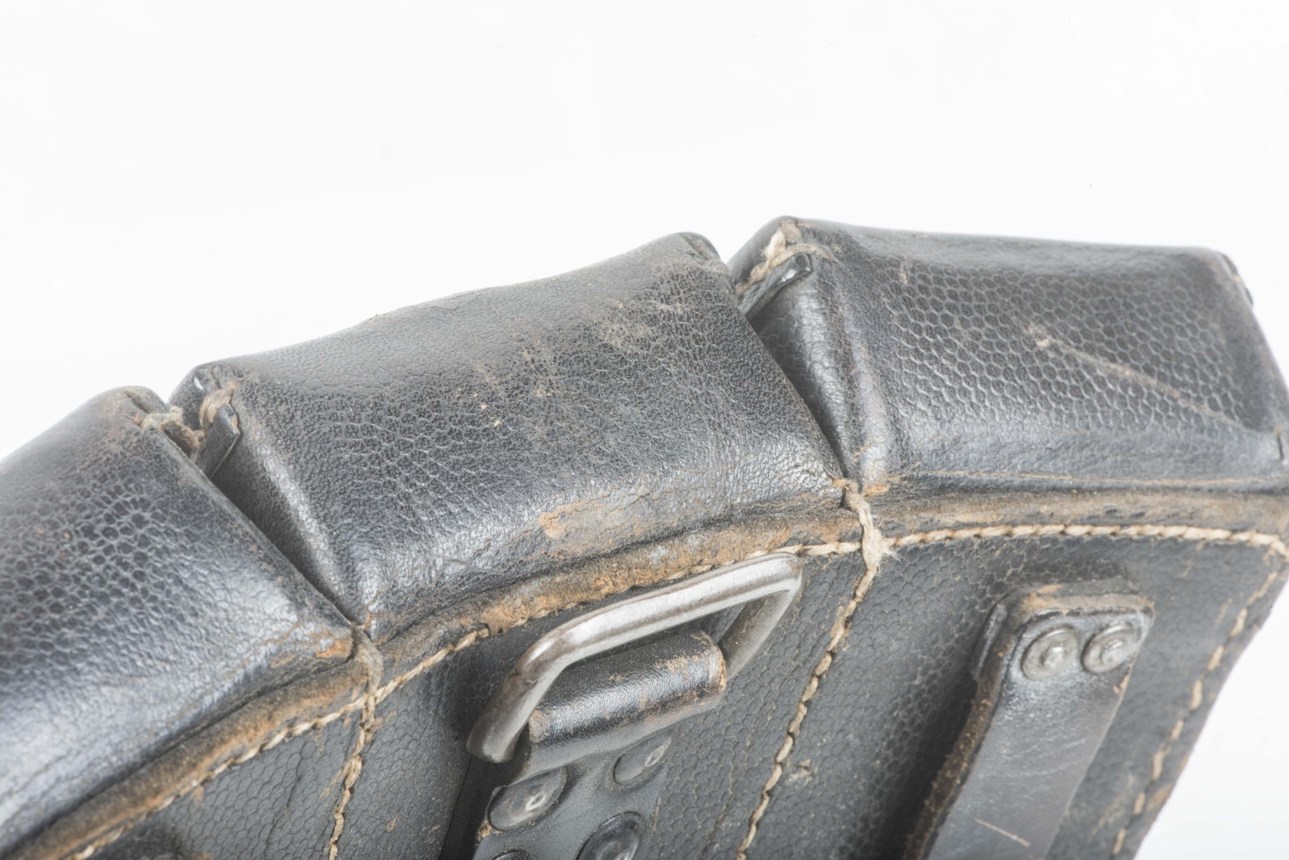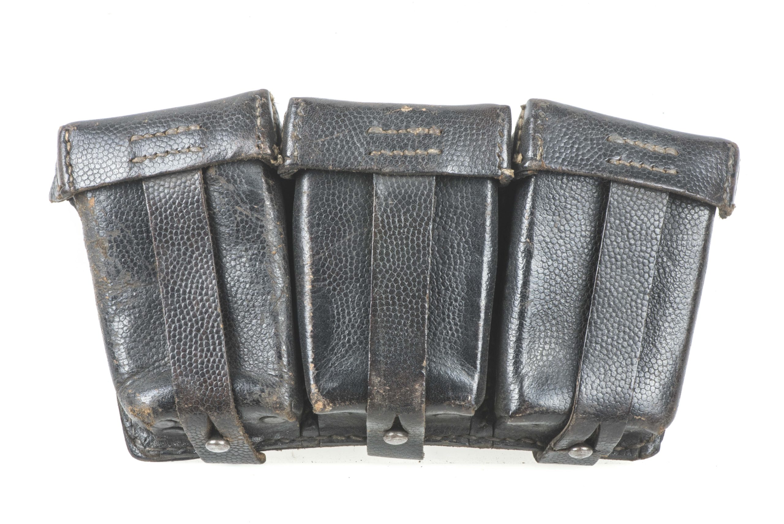 Textbook K98 ammunition pouch in good condition. The pouch is nicely marked 0/1032/0001. One of the closing straps has a glued repair. Nice example!