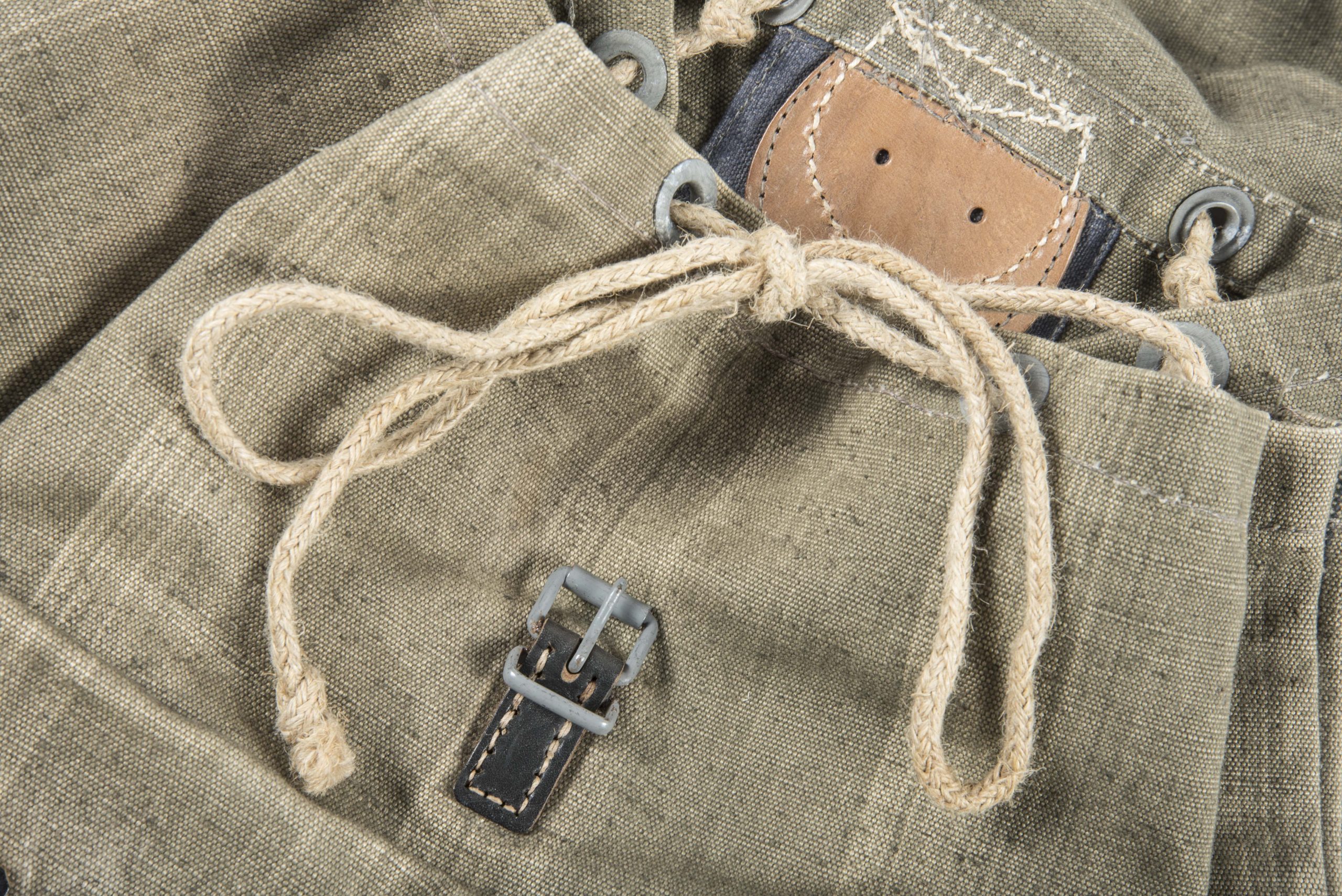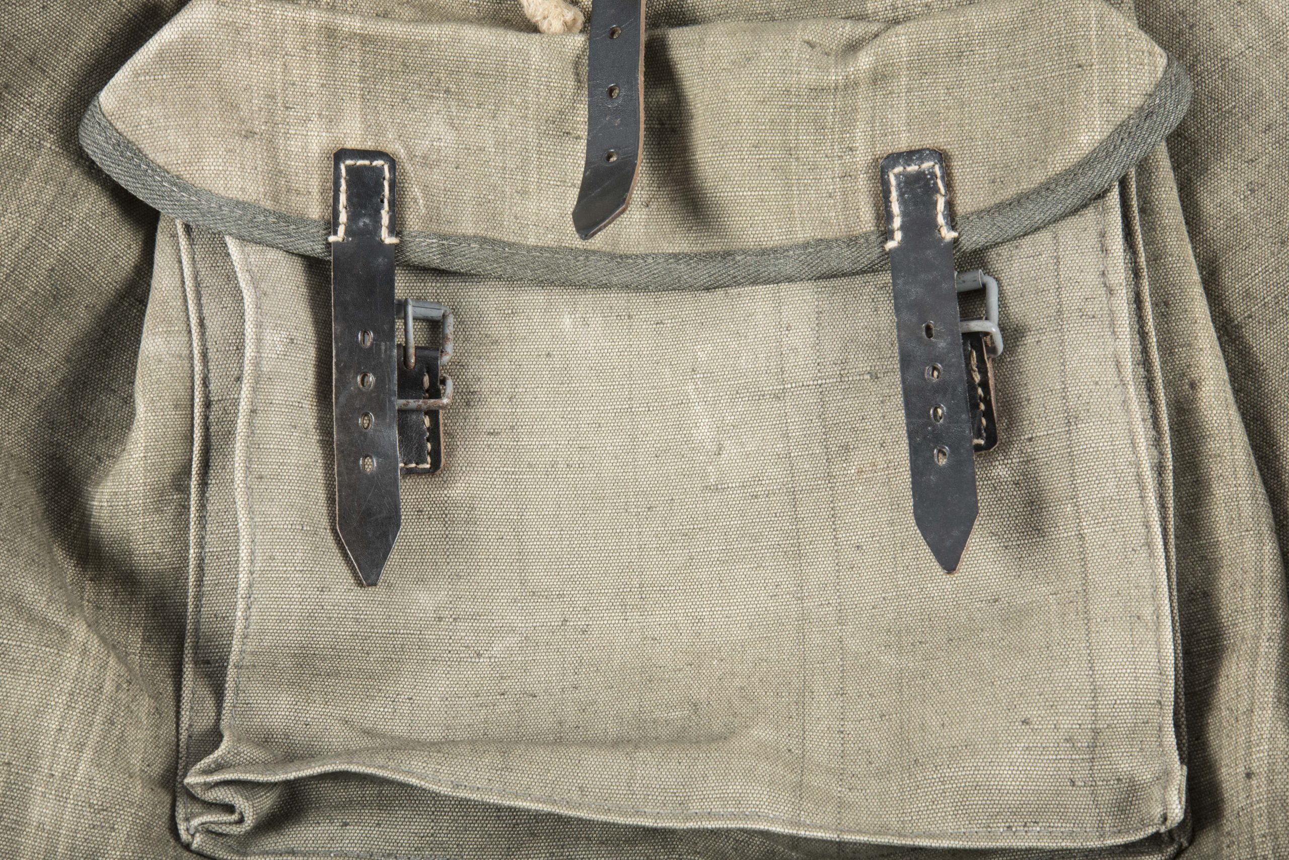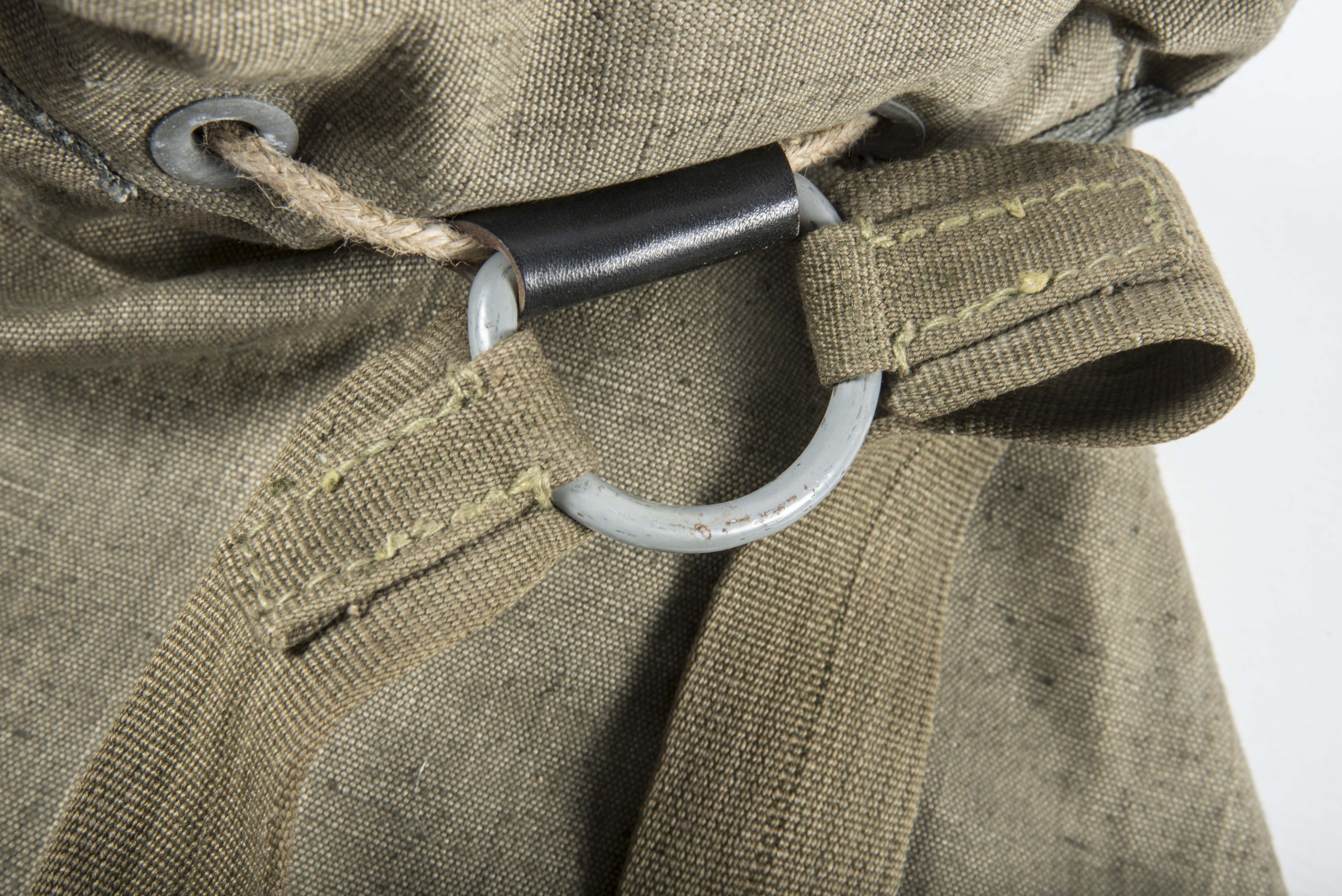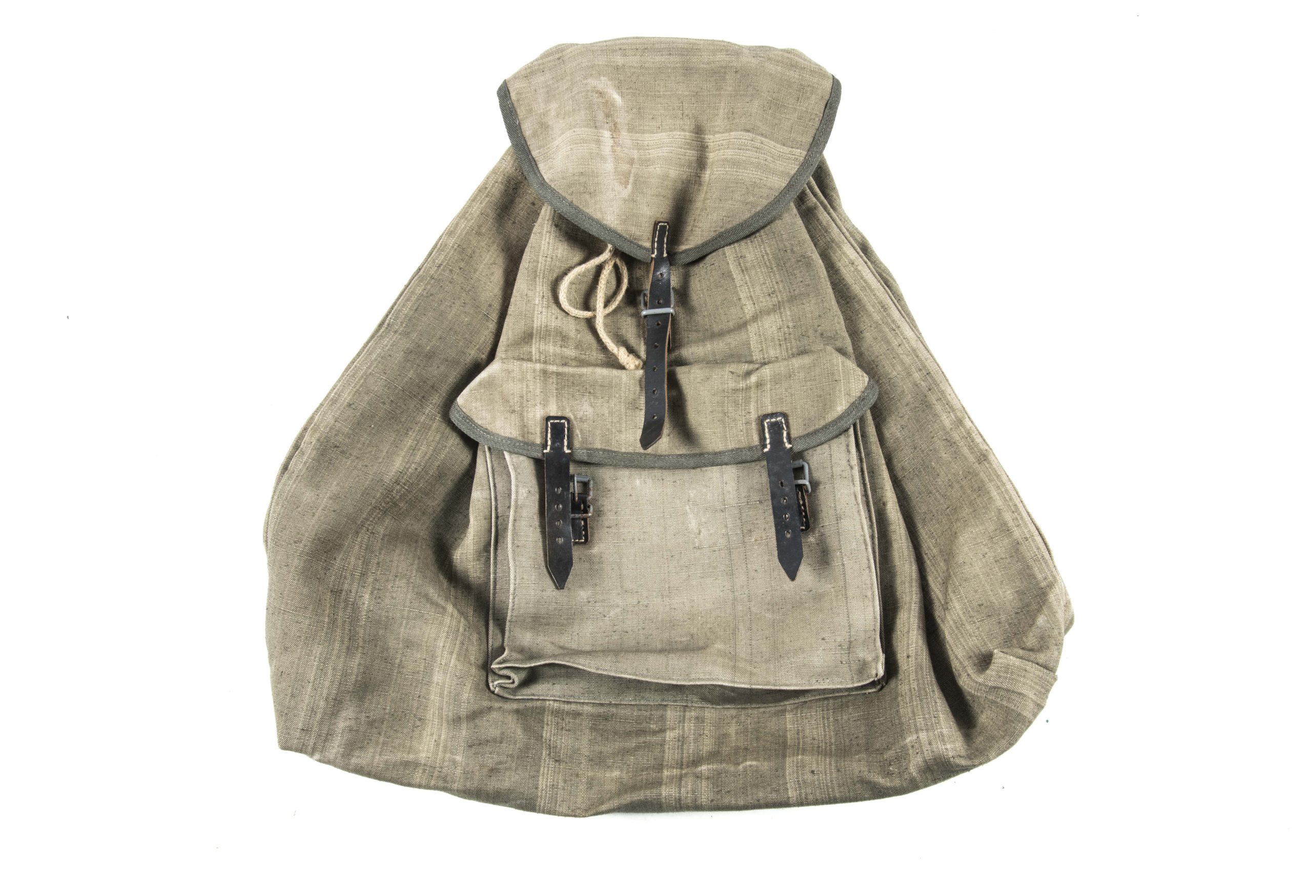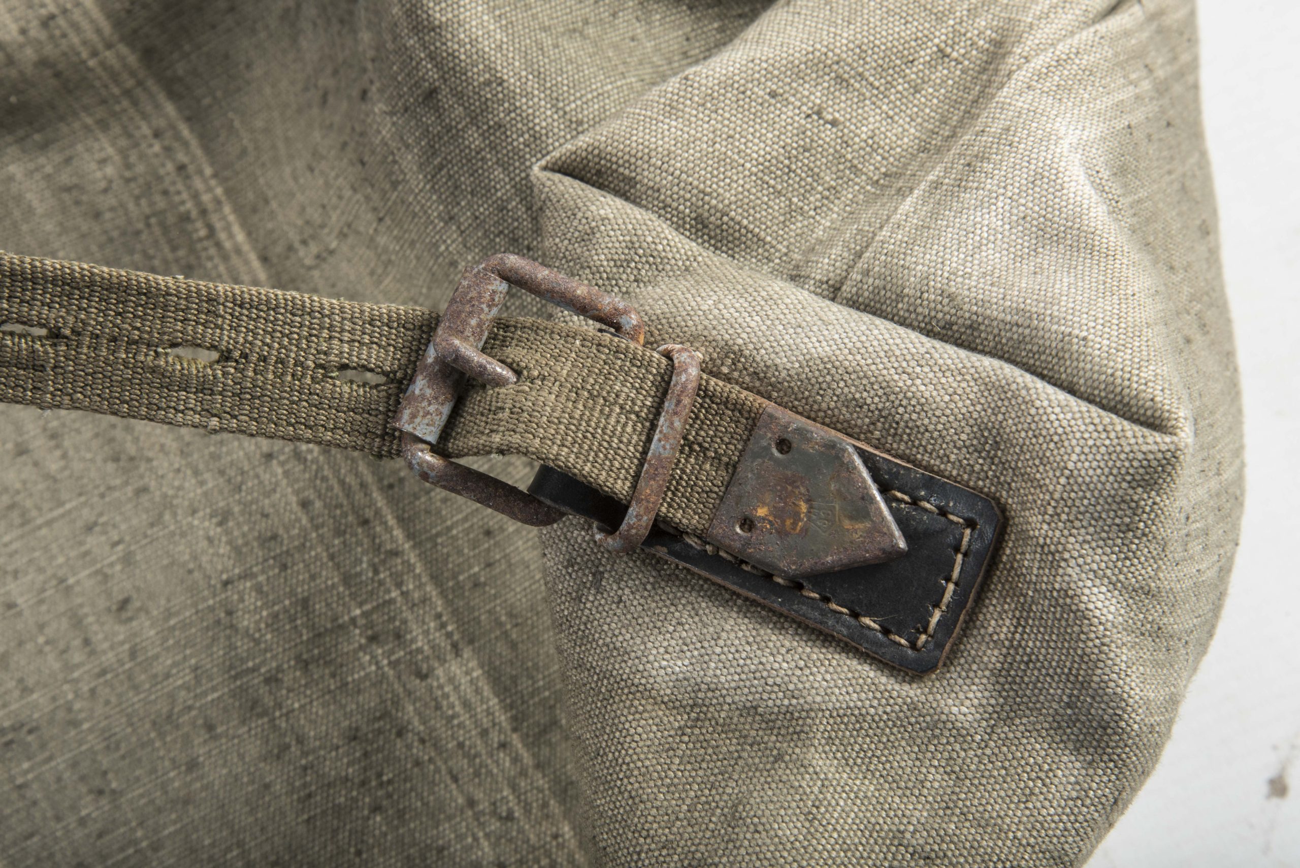 Late war rucksack marked 0/0836/0029. Nice variant late war rucksack made from screen printed canvas. Mint piece.