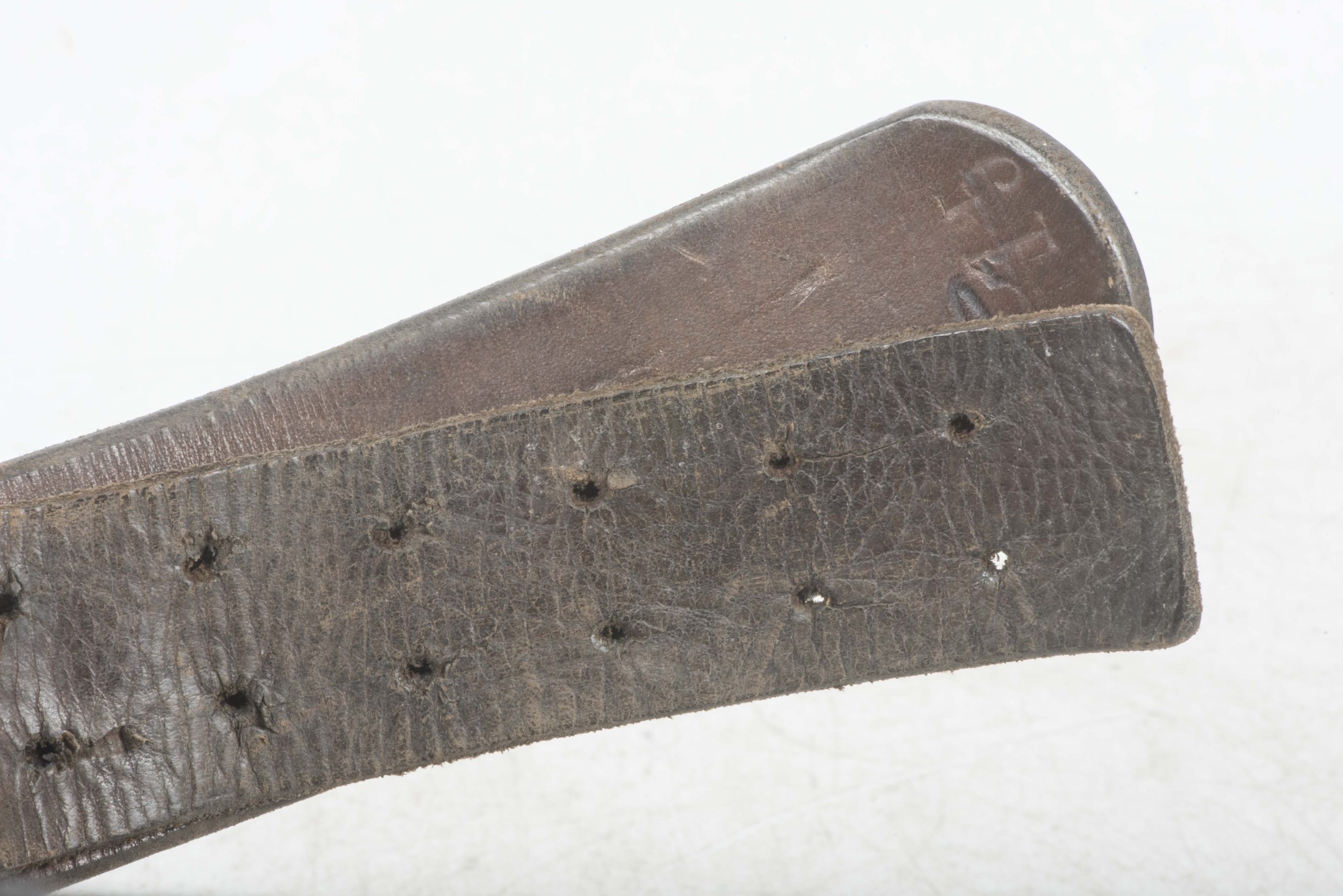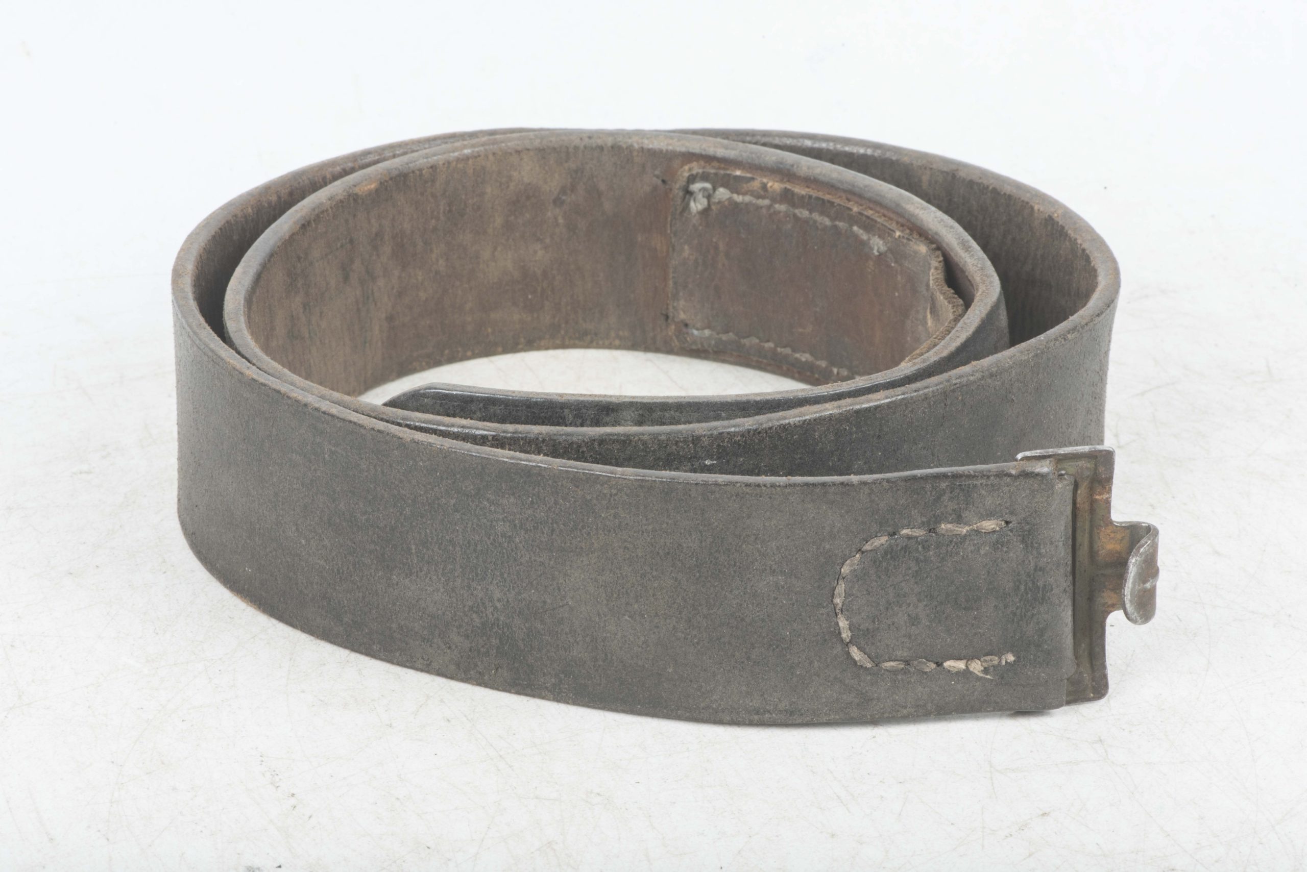 Leather equipment belt in good used condition. Period shortened to approximately 90-95 cm.