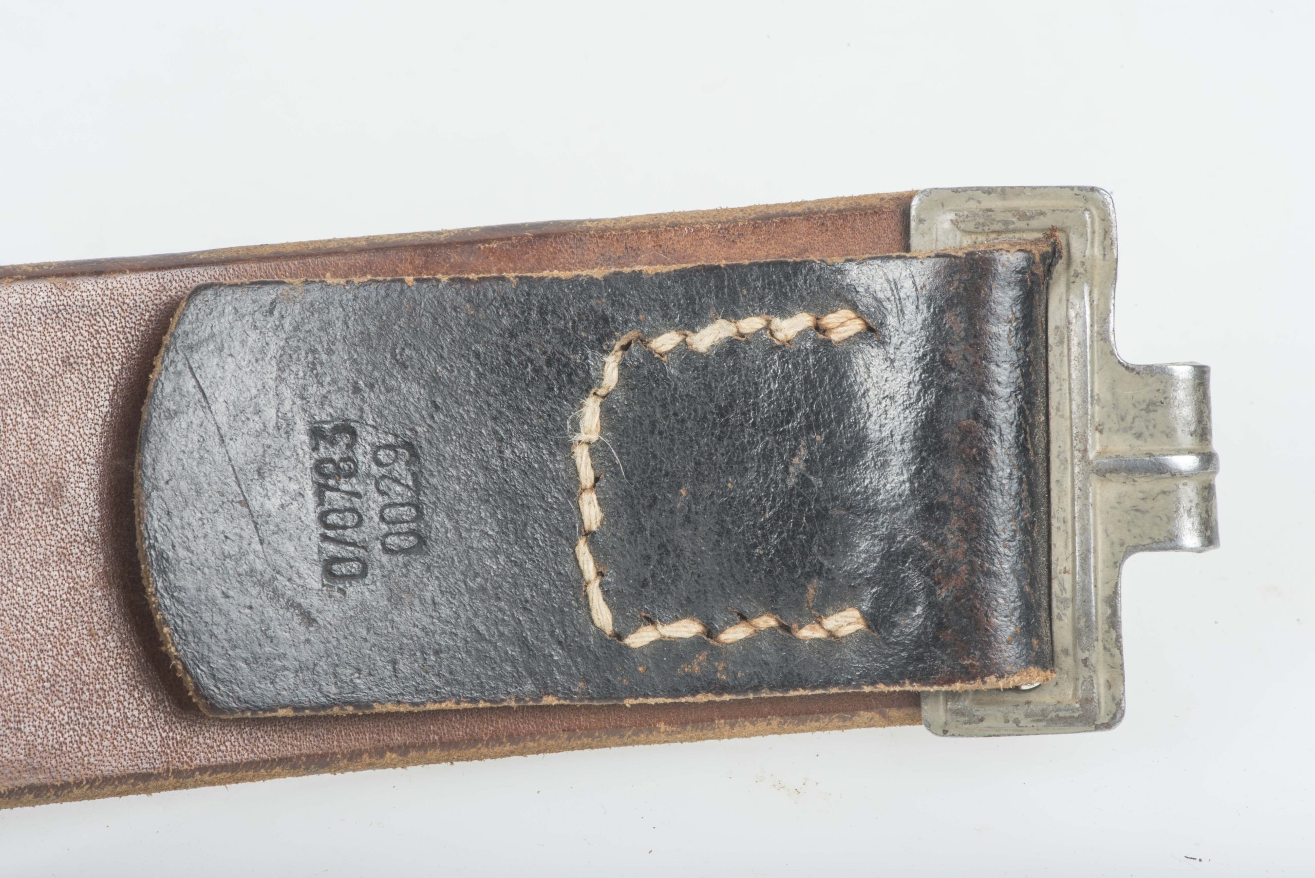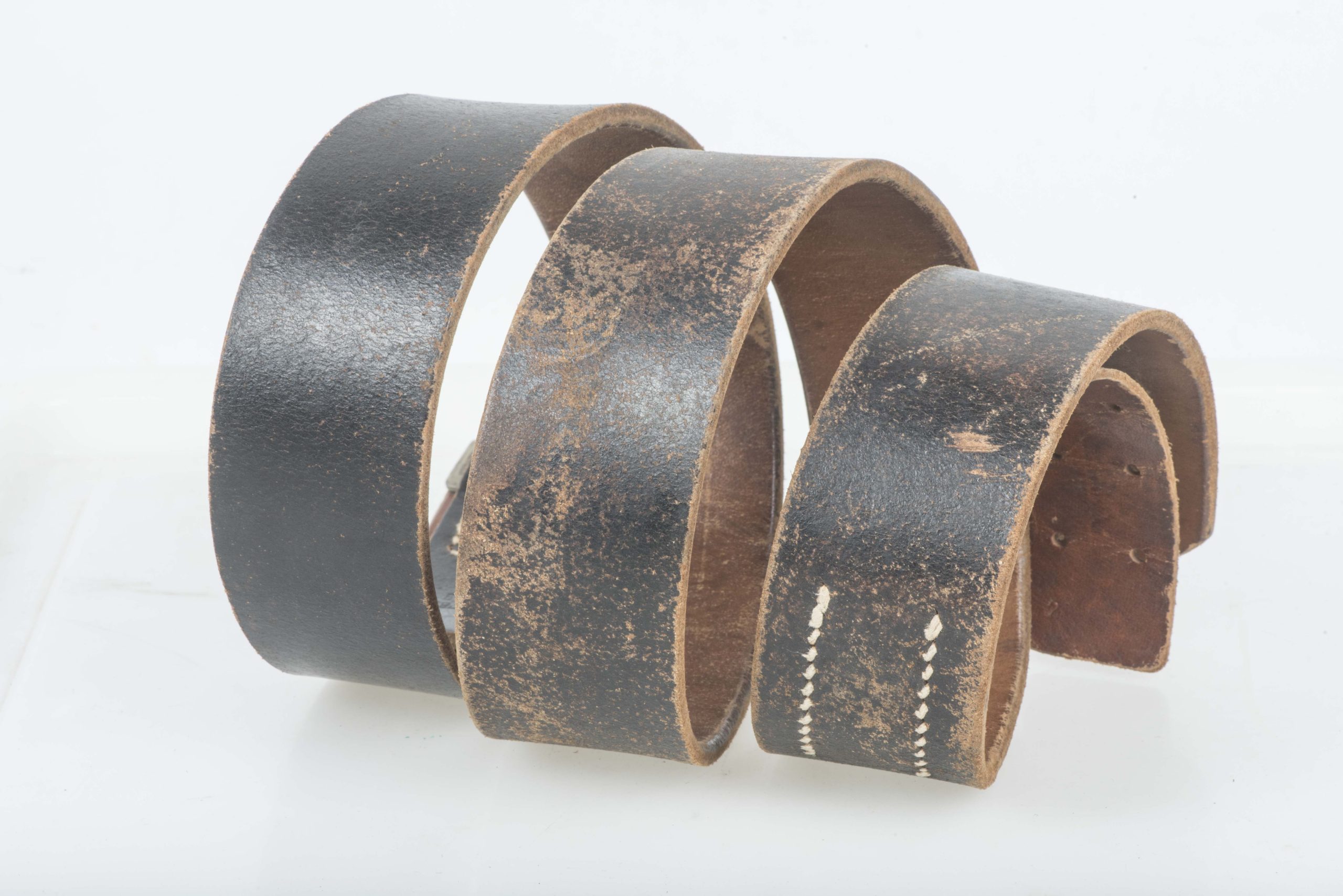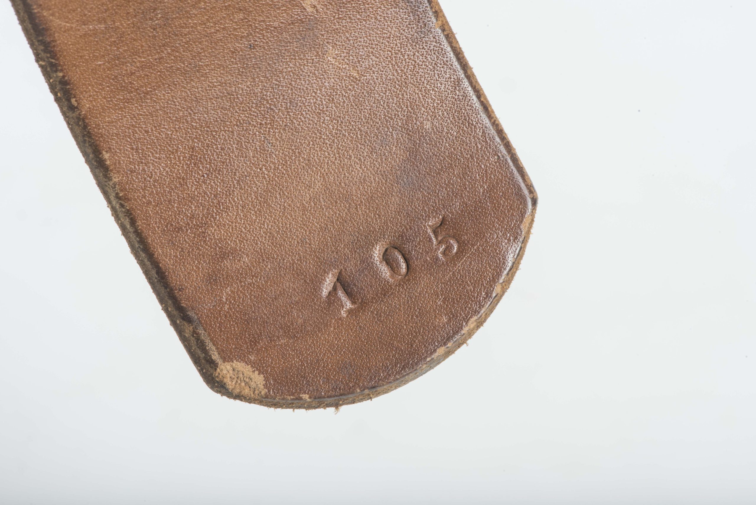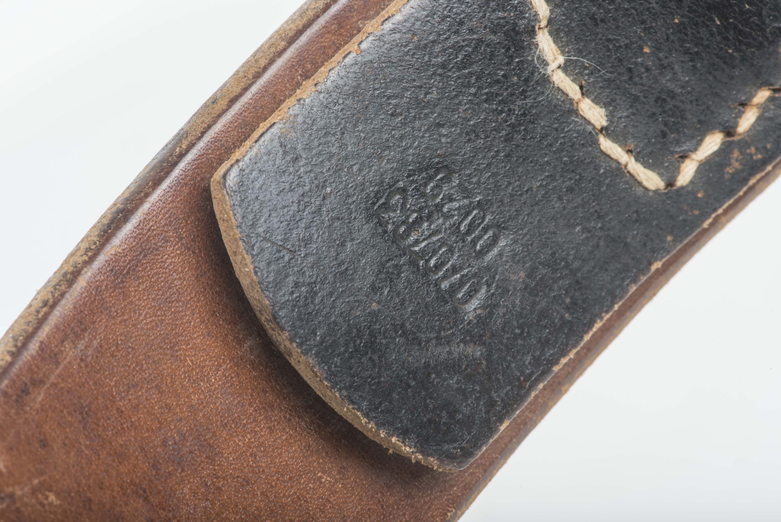 Leather equipment belt marked 0/0783/0029 size 105 in good condition. There are a few additional adjustment holes.