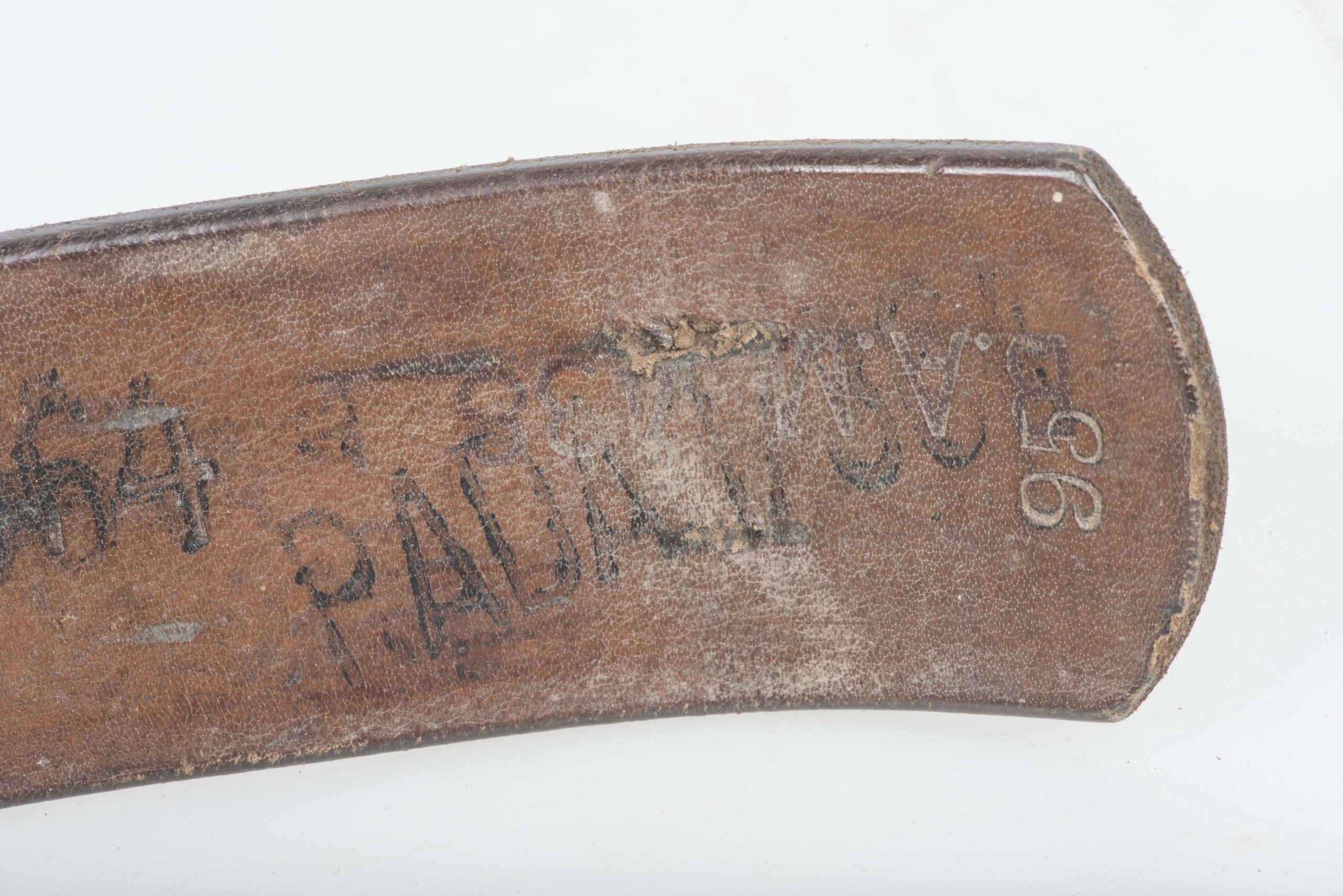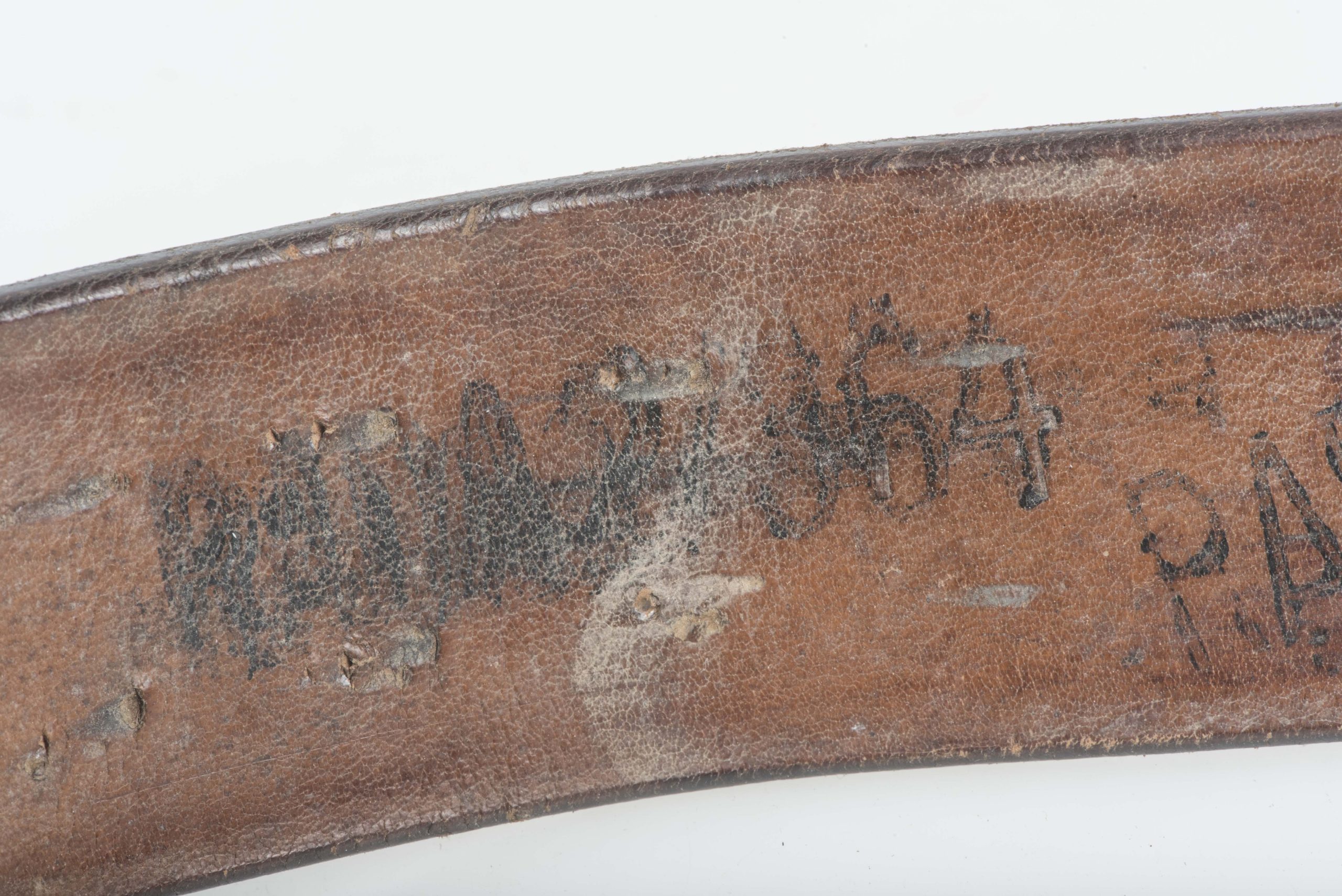 Leather equipment belt marked Karl Hepting & Co. Stgt. Feuerbach 3 38 size 95 in excellent condition. Hard to find pre war example!